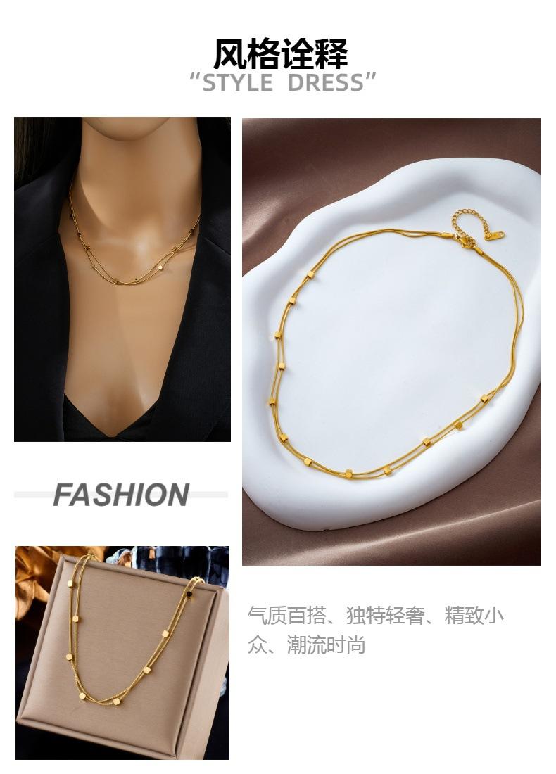 Moda Transfronteriza Simple Retro Acero Inoxidable Chapado en Oro Doble Capa Apilada Cuadrada Cadena Accesorio Joyería Collar