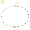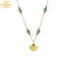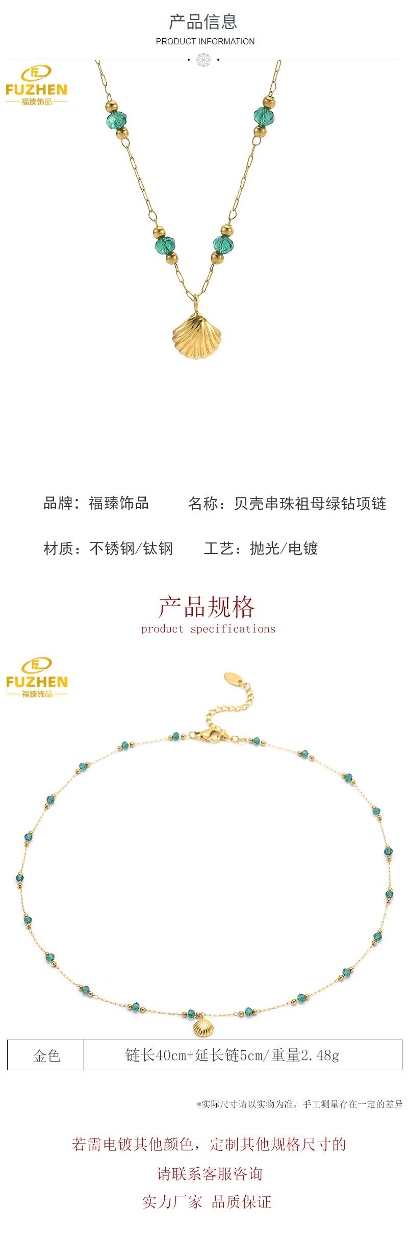 Collar de cuentas de concha con diamantes y esmeralda, cadena de clavícula de concha chapada en oro y acero de titanio, resistente al color, estilo fresco Mori para mujer