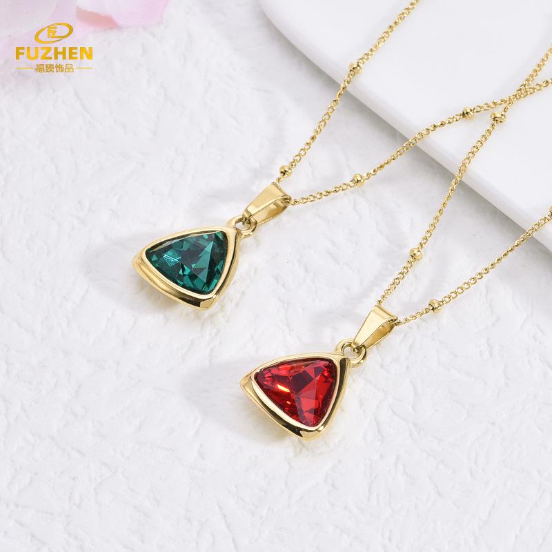 Versión coreana de nicho con colgante triangular de piedra de cristal, lámpara de lujo de moda con cadena de clavícula de circonita verde esmeralda, collar de acero de titanio¥13.8Compre ya