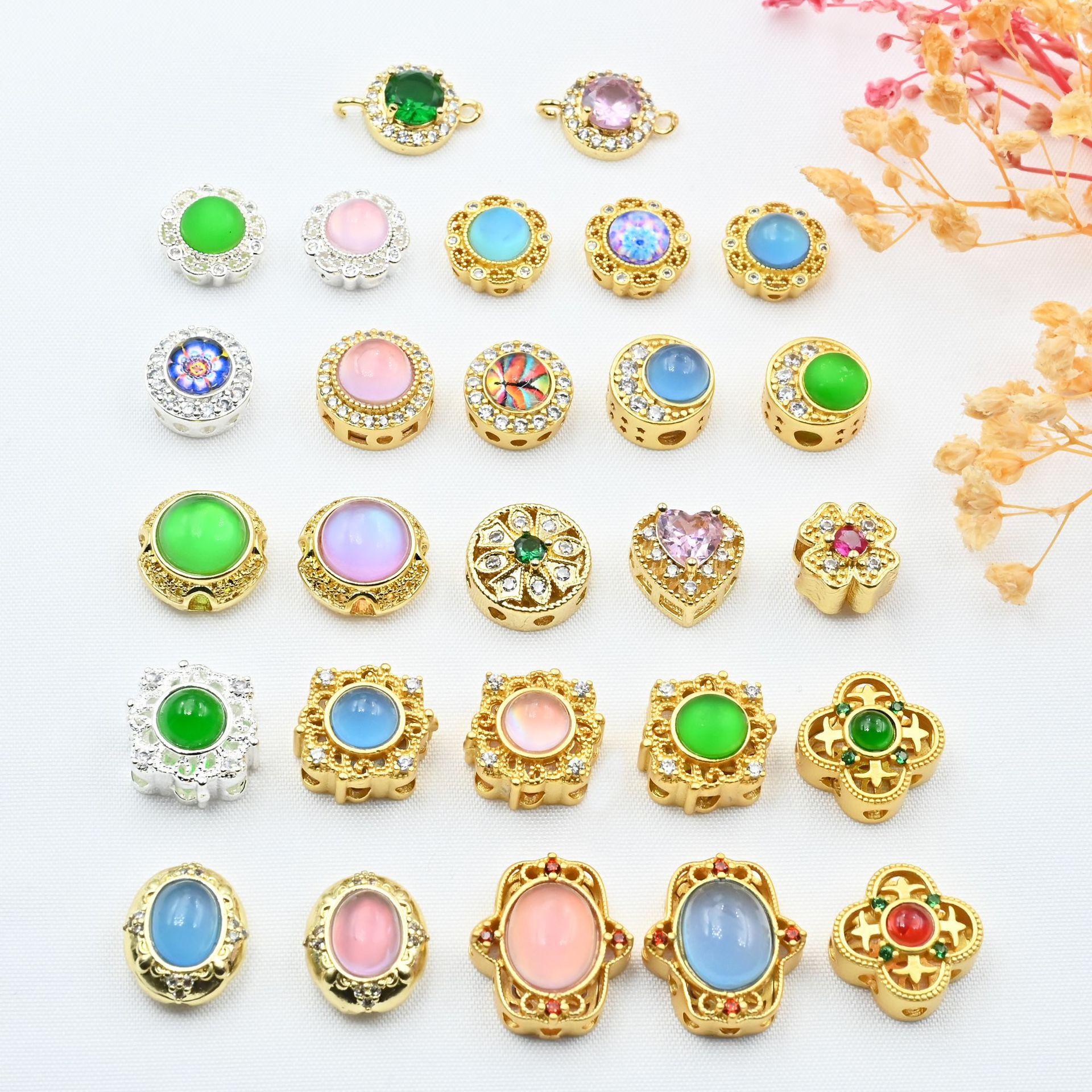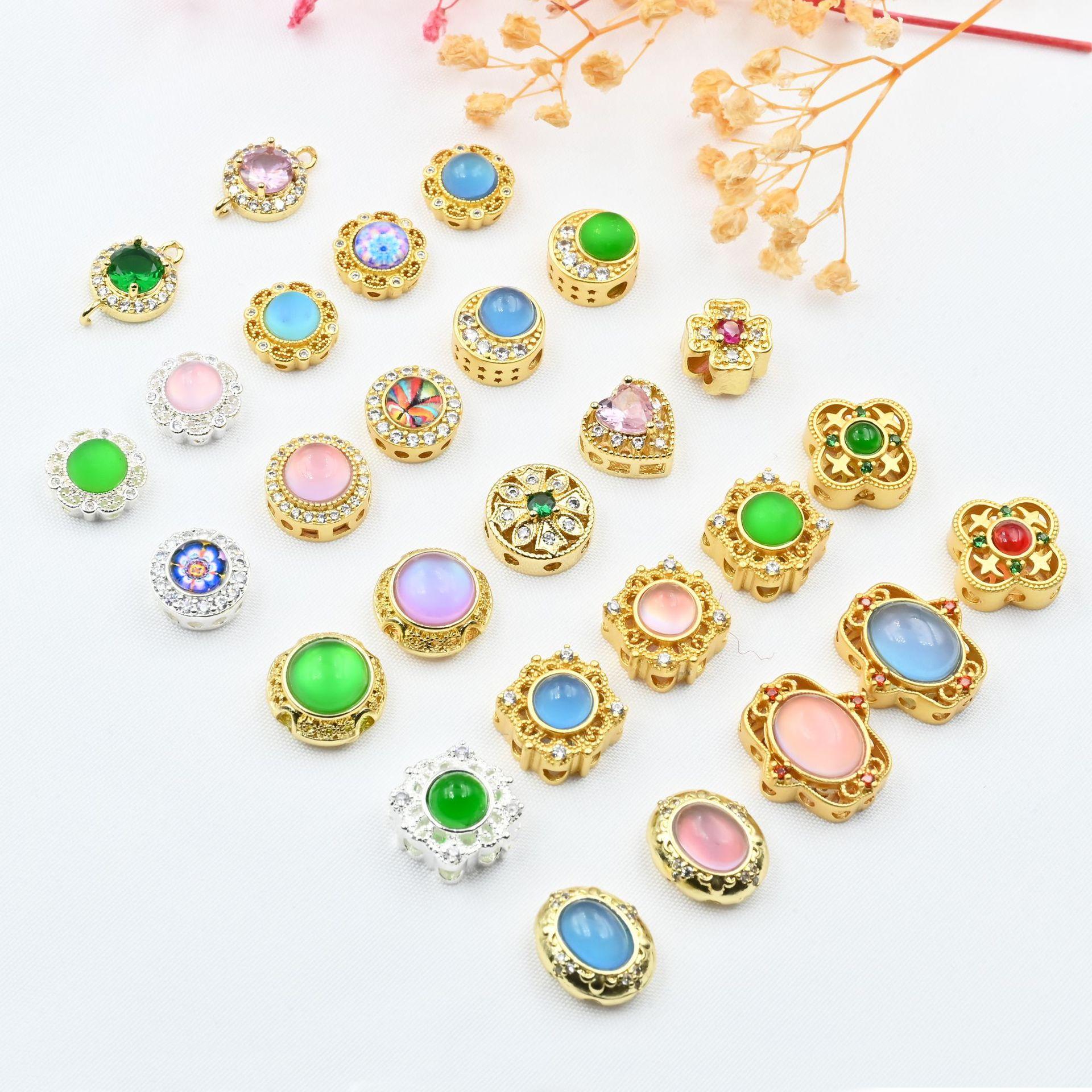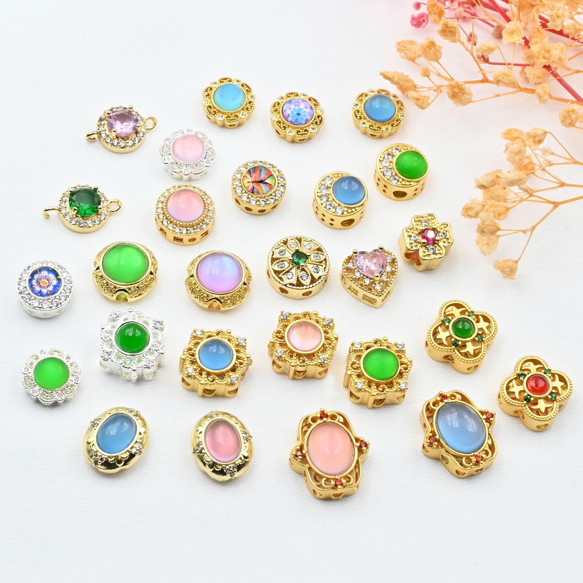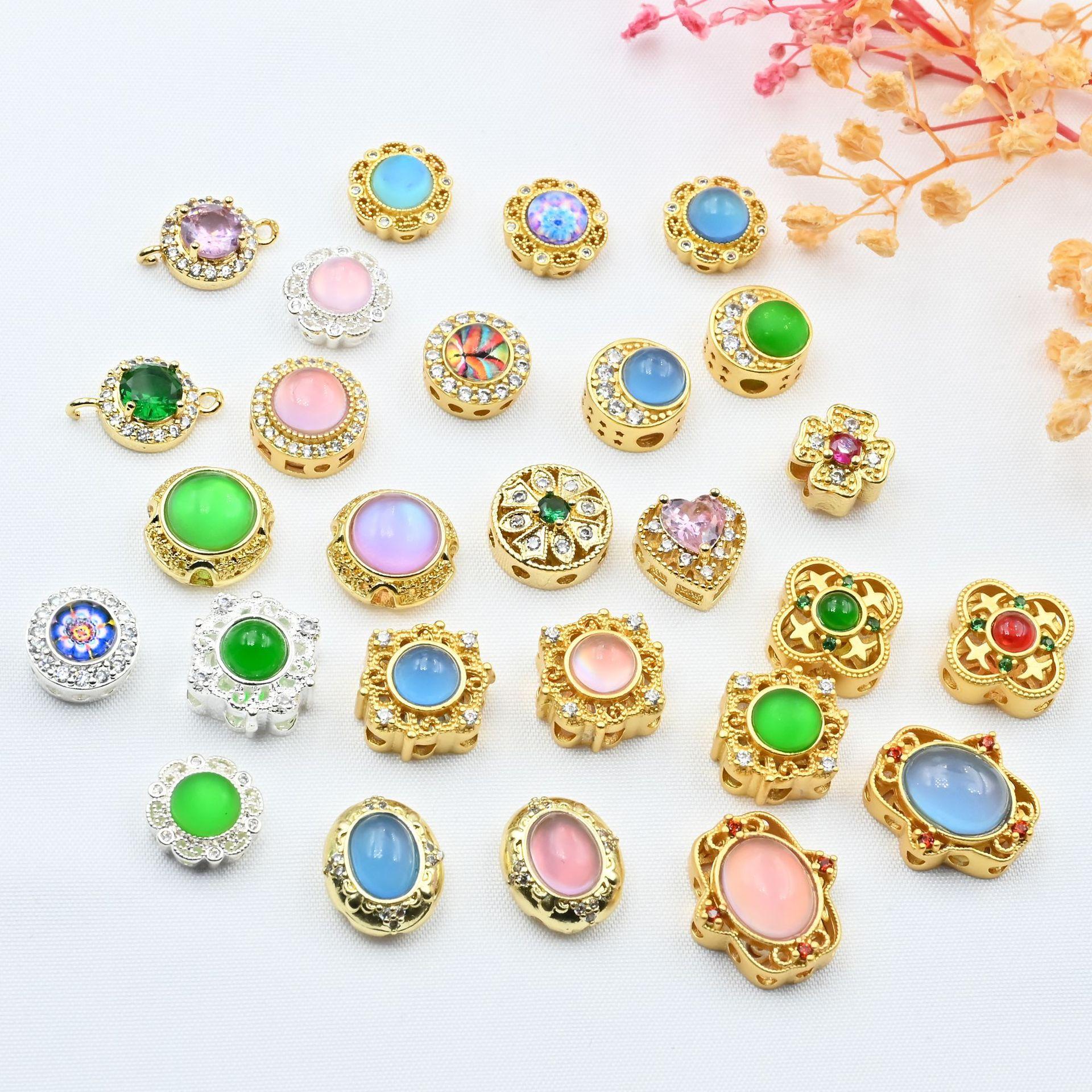 Cuentas de la suerte de circonita con incrustaciones de oro de 18 quilates que preservan el color, pulsera, collar, pulsera, joyería, cuentas espaciadoras, material de cuerda trenzada