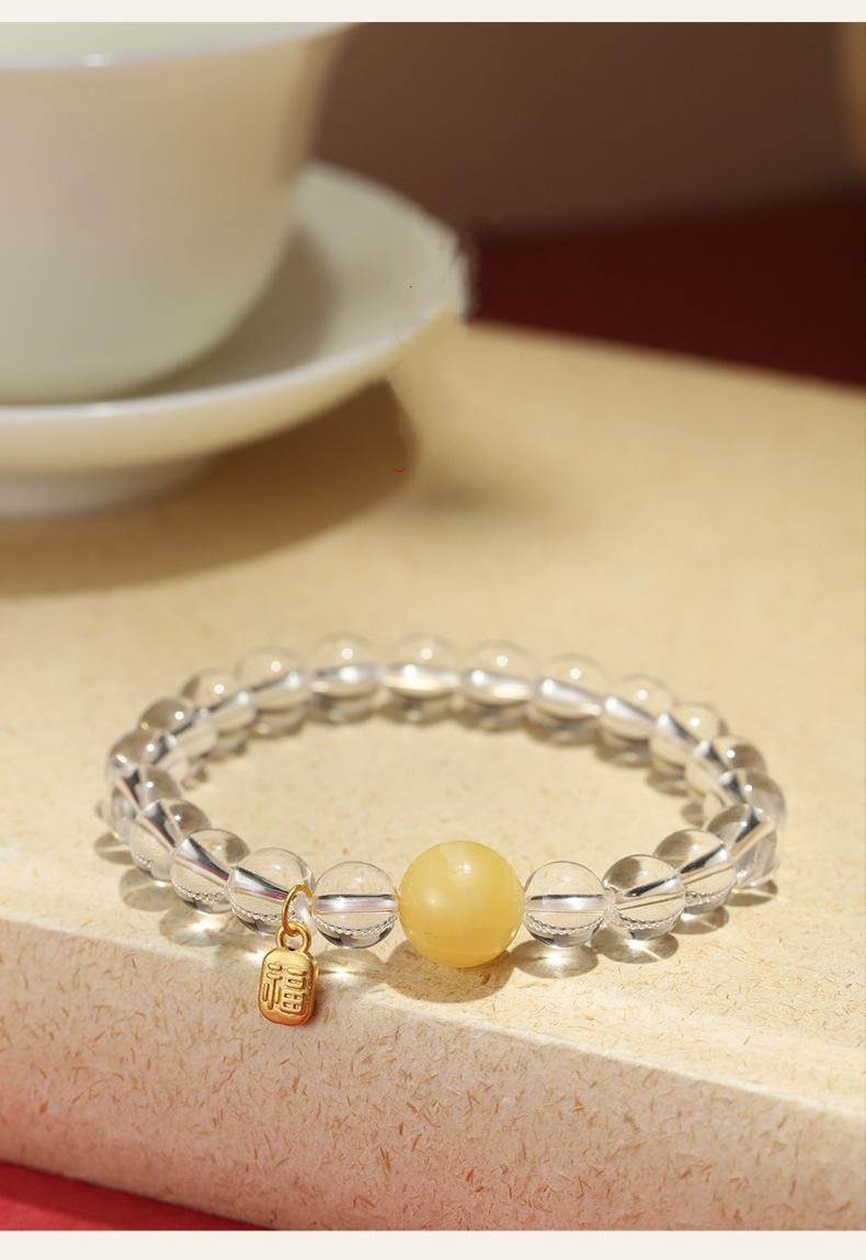 Pulsera de cristal blanco con cuerpo de red natural, pulsera de cera de abejas de la suerte, pulsera de cristal de diosa, venta al por mayor