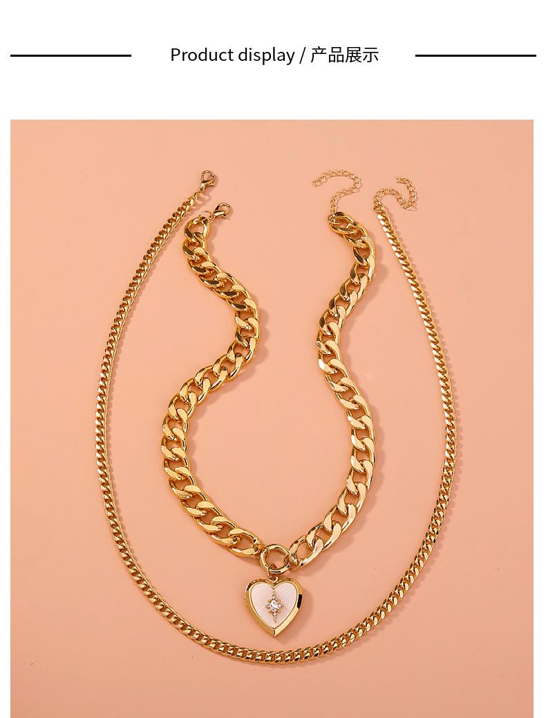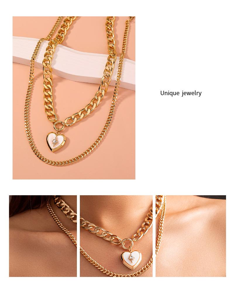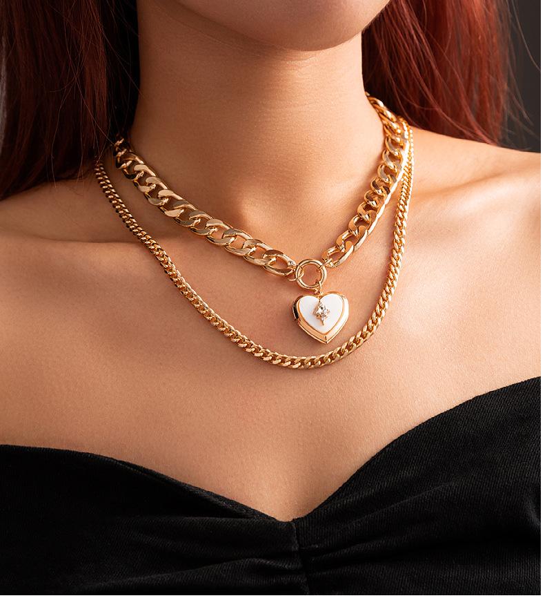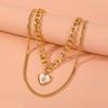 | Nuevos accesorios transfronterizos, joyería de moda exagerada, collar de belleza de corazón con cerradura europea multicapa, tendencia femenina, collar femenino simple |