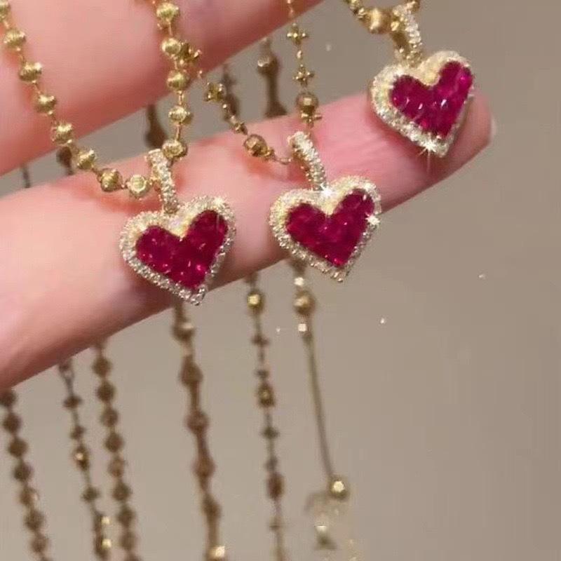 Collar de circonitas rojas retro francesas con forma de nicho, de alta calidad, ligero, de lujo, de moda, de temperamento simple, combina con todo, cadena de clavícula.