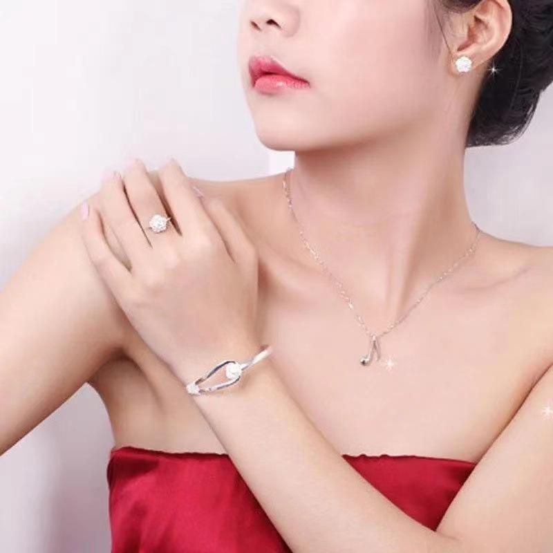 | Temperamento de mujer con incrustaciones de diamantes completos, collar de pendientes de trébol de cuatro hojas hueco versátil de celebridad de Internet, conjunto de pendientes y collares de moda y lujosos |