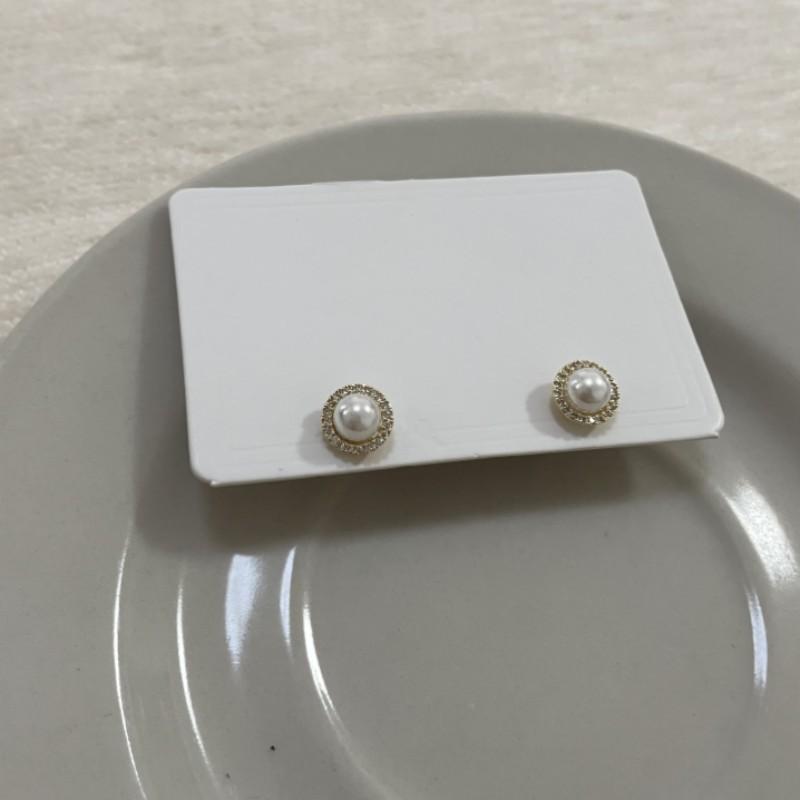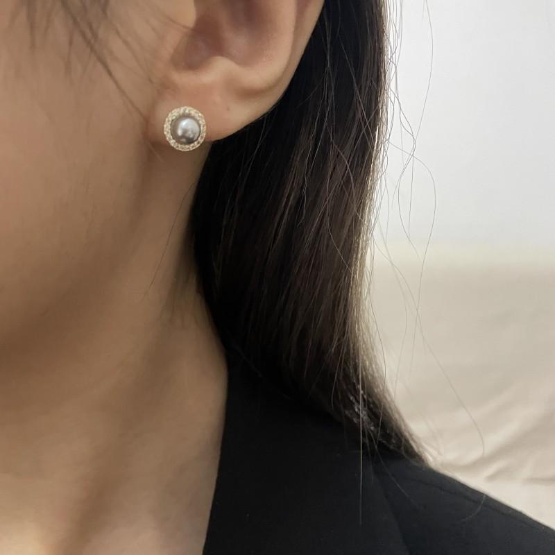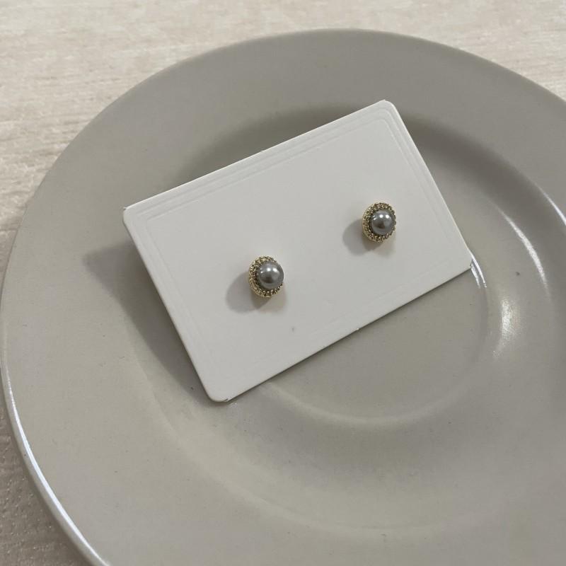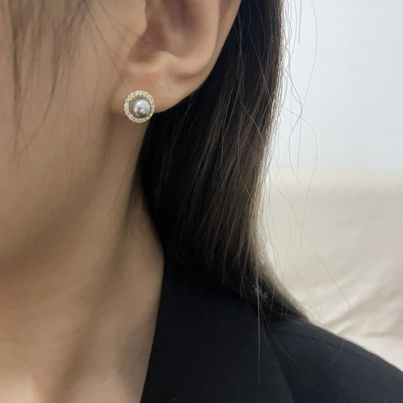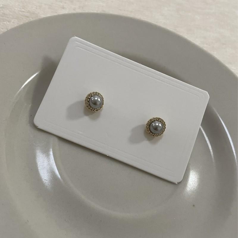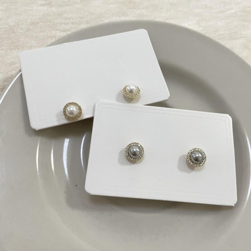 Rhinestone pearl stud earrings (white), Rhinestone pearl stud earrings (gray)