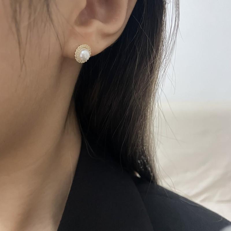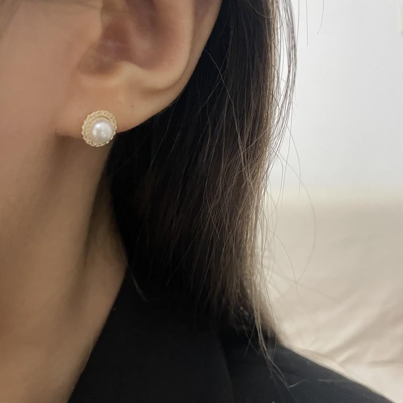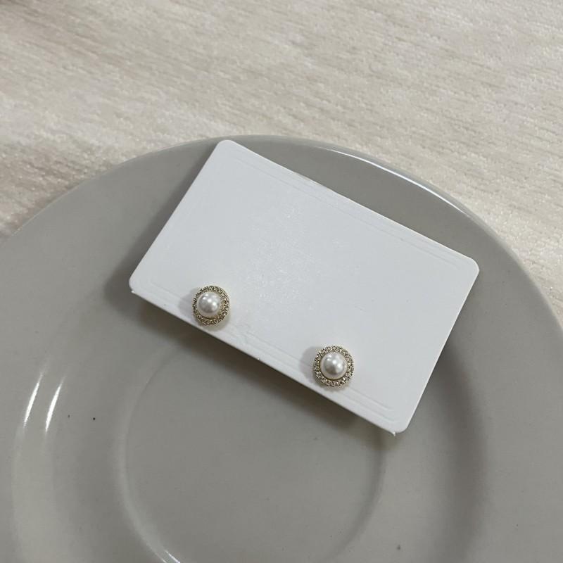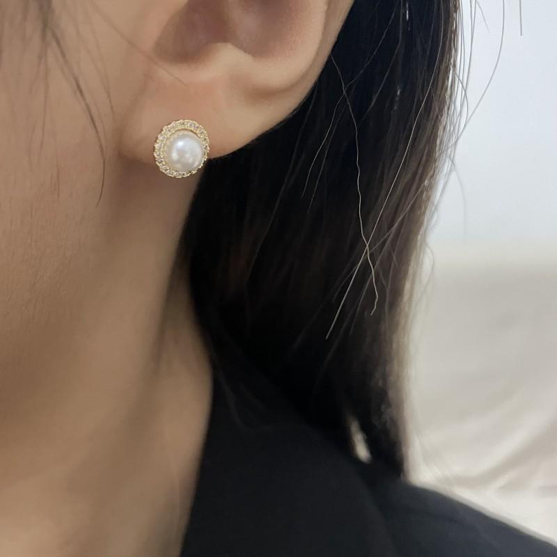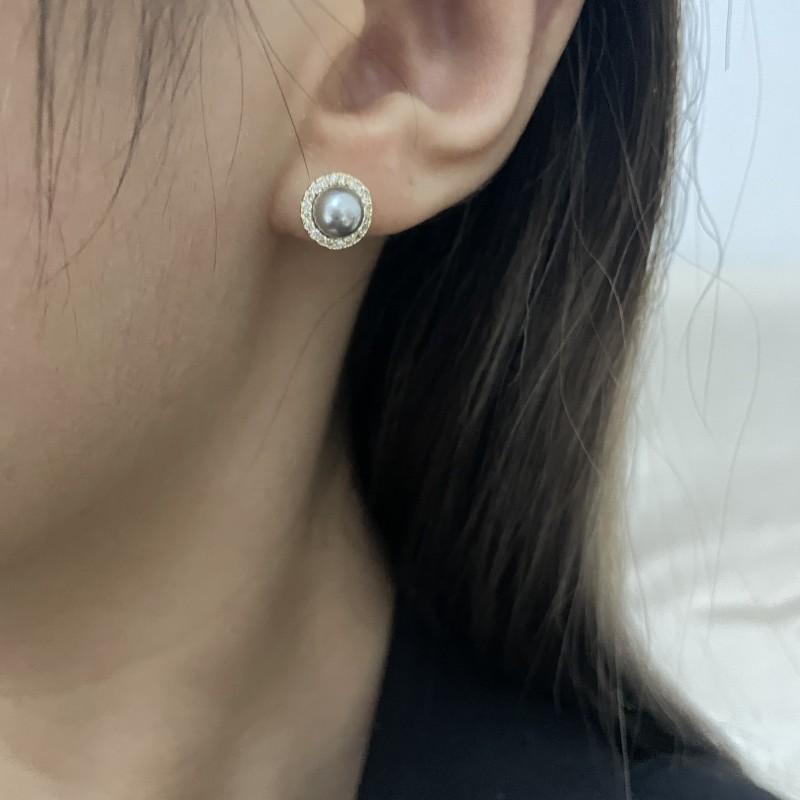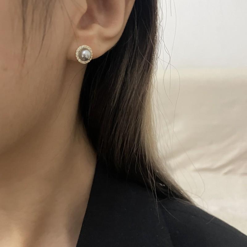 Rhinestone pearl stud earrings (white), Rhinestone pearl stud earrings (gray)