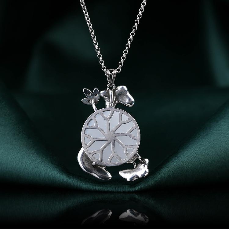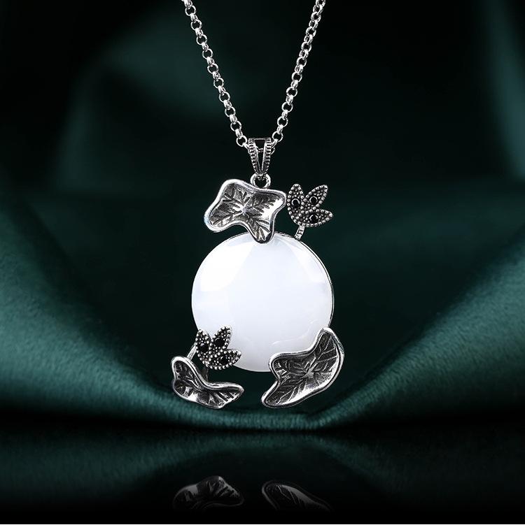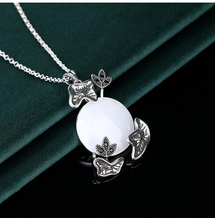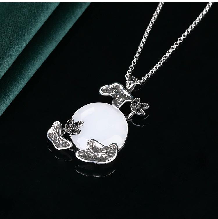 Collar Cheongsam con colgante de jade hetiano de imitación con incrustaciones de loto, chapado en plata, estilo chino, nuevo, estilo nacional, método antiguo