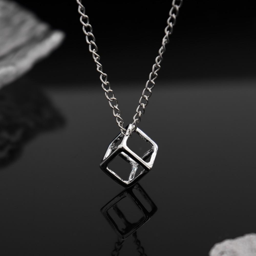 Venta caliente Temu, colgante hueco simple retro para hombres y mujeres, collar cuadrado de cubo, joyería Temu, entrega de una sola pieza
