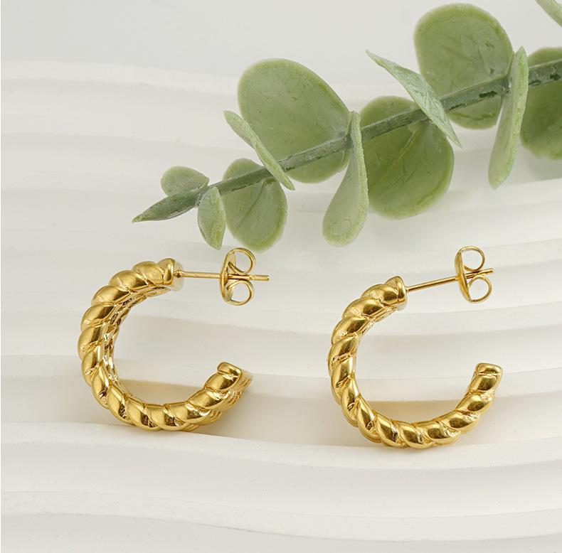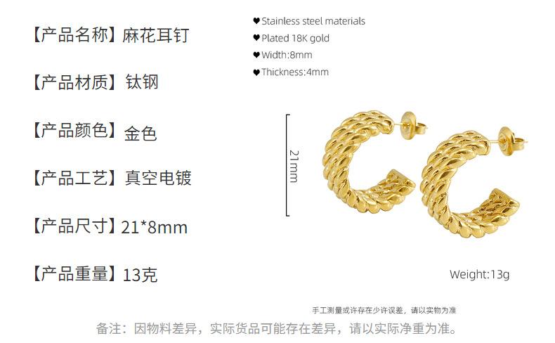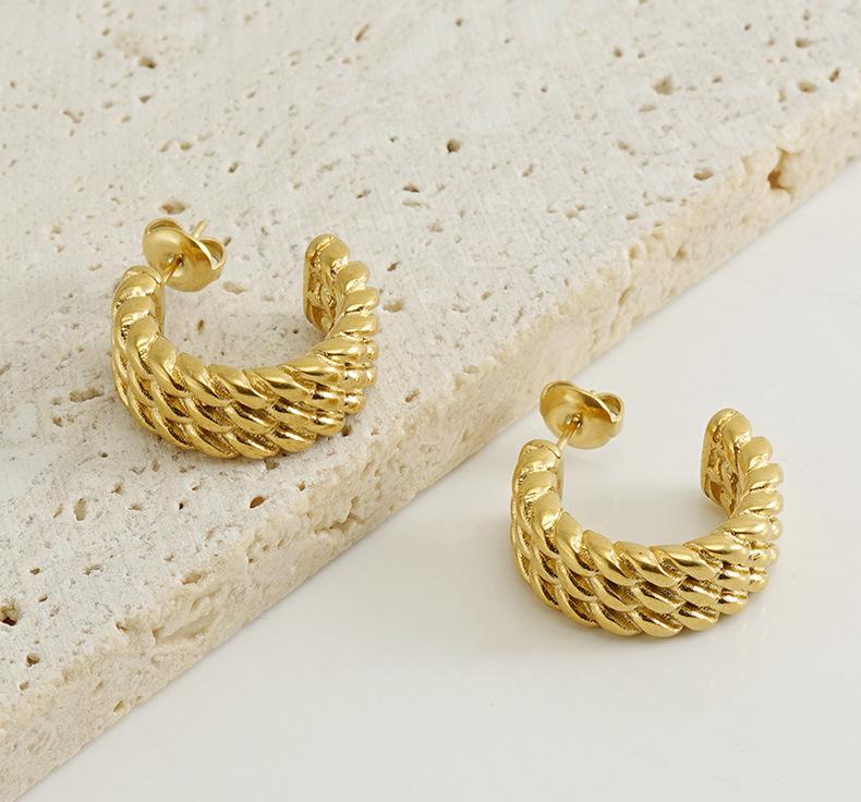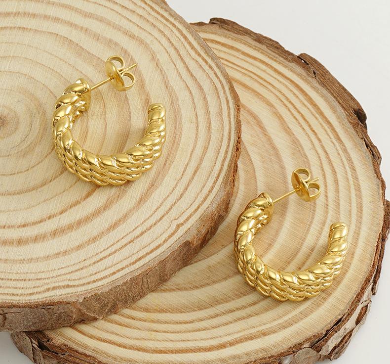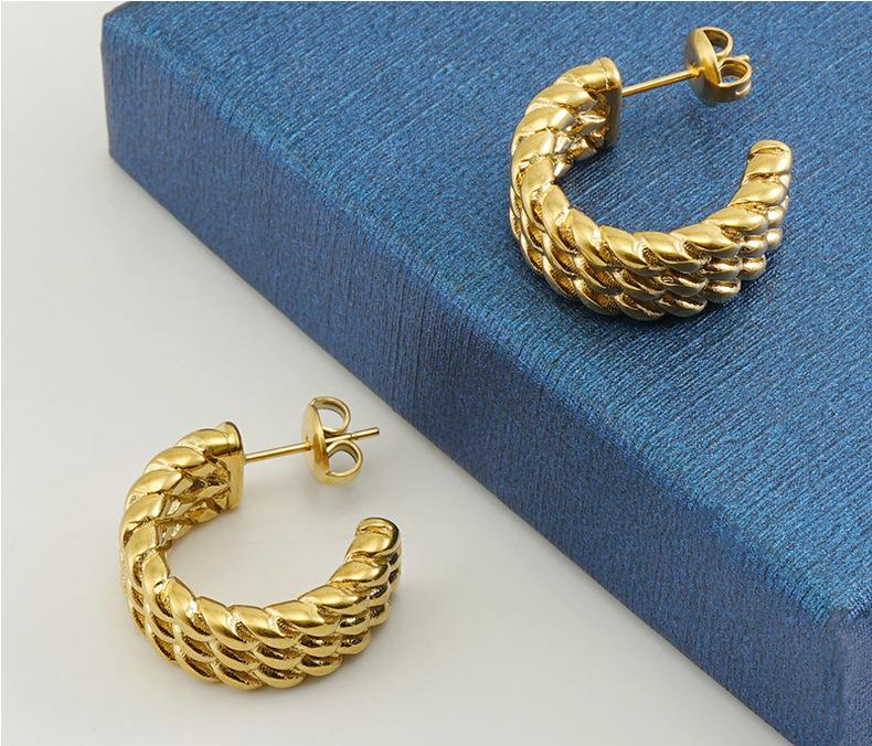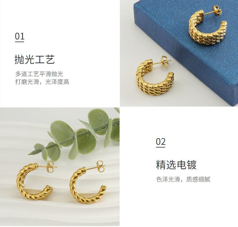 Pendientes de acero inoxidable transfronterizos con personalidad de moda europea y americana en forma de C, pendientes de celebración de Internet de acero de titanio y oro de 18 quilates para mujer