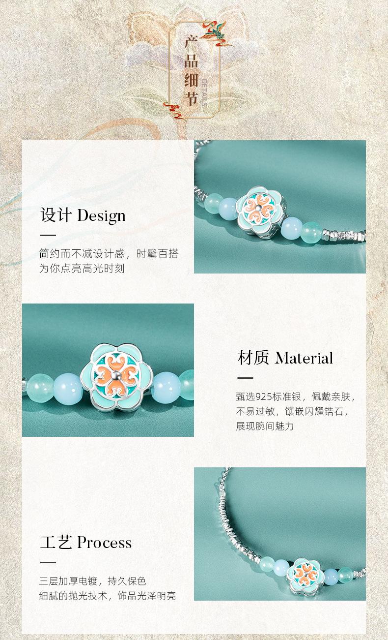 Pulsera de estilo chino, pulsera de ágata de plata esterlina S925 para niñas, joyería rota de plata de estilo antiguo Dunhuang de alta calidad para mujeres.