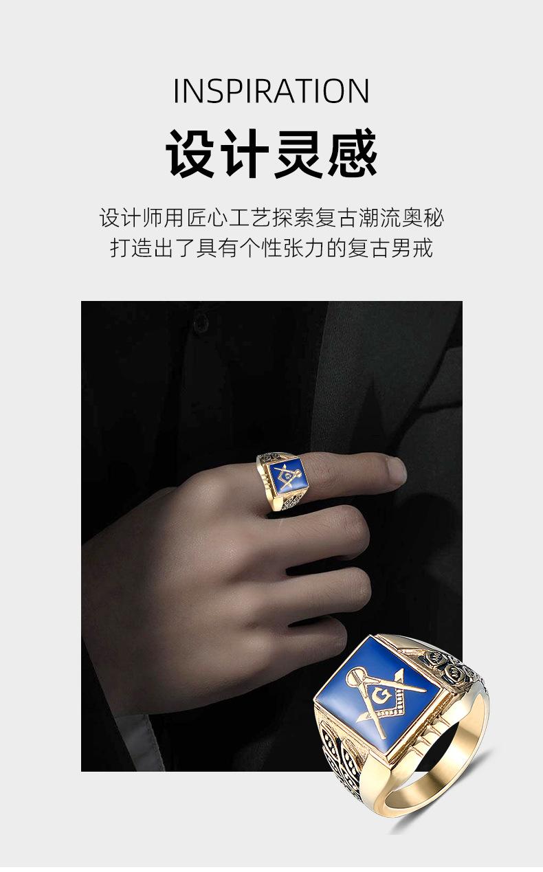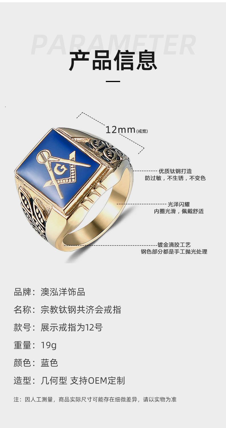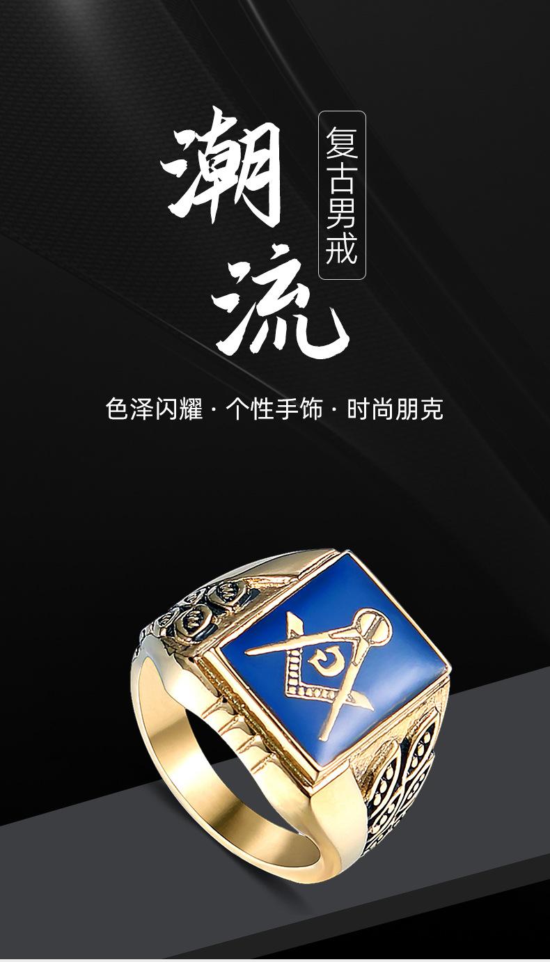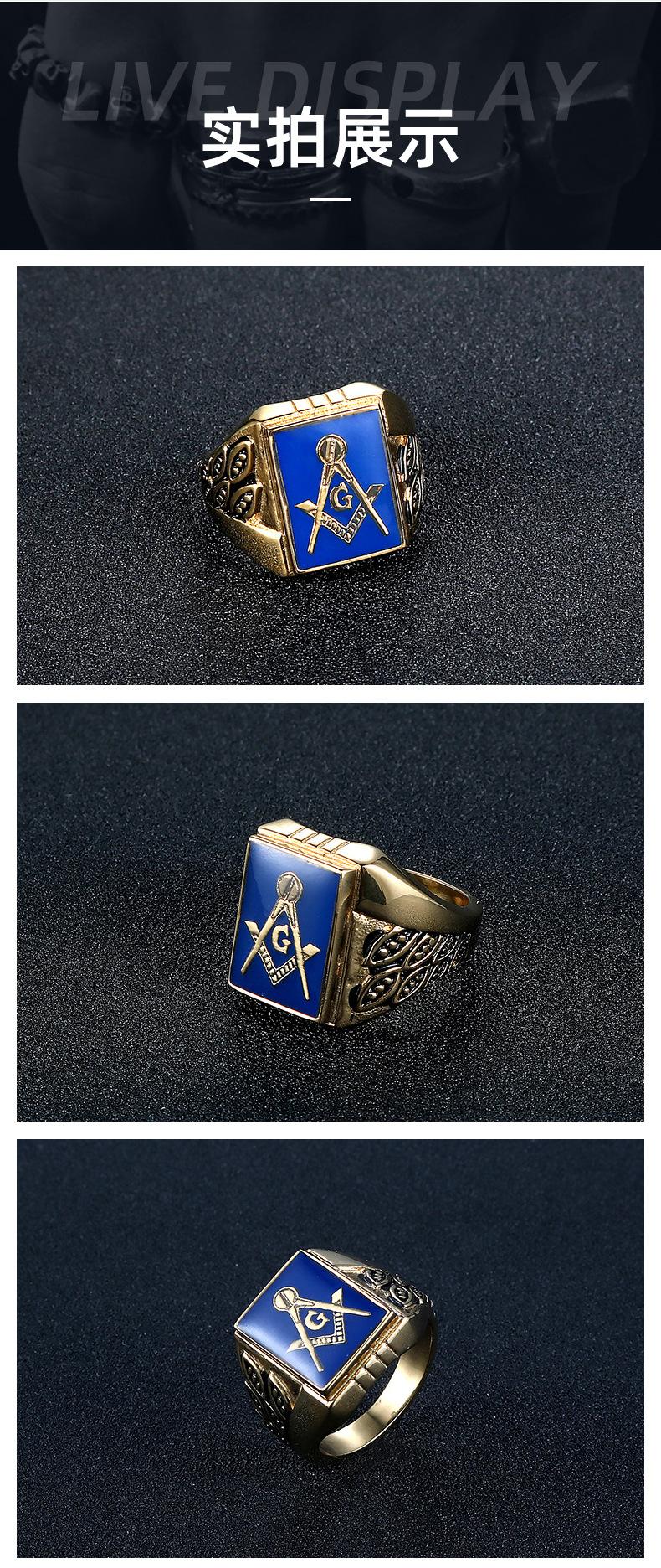 Moda europea y americana religiosa anillo masónico de acero de titanio punk vintage para hombre anillo de acero inoxidable epoxi HZ055