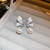 Pendientes de perlas de circonita de alta gama de moda, pendientes de lujo retro ligeros de nicho francés, nuevos pendientes 2023 al por mayor