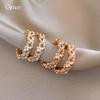 Pendientes geométricos de perlas retro francesas, pendientes de temperamento de moda exagerada, pendientes de lujo ligeros de nicho de alta gama, venta al por mayor para mujeres