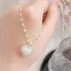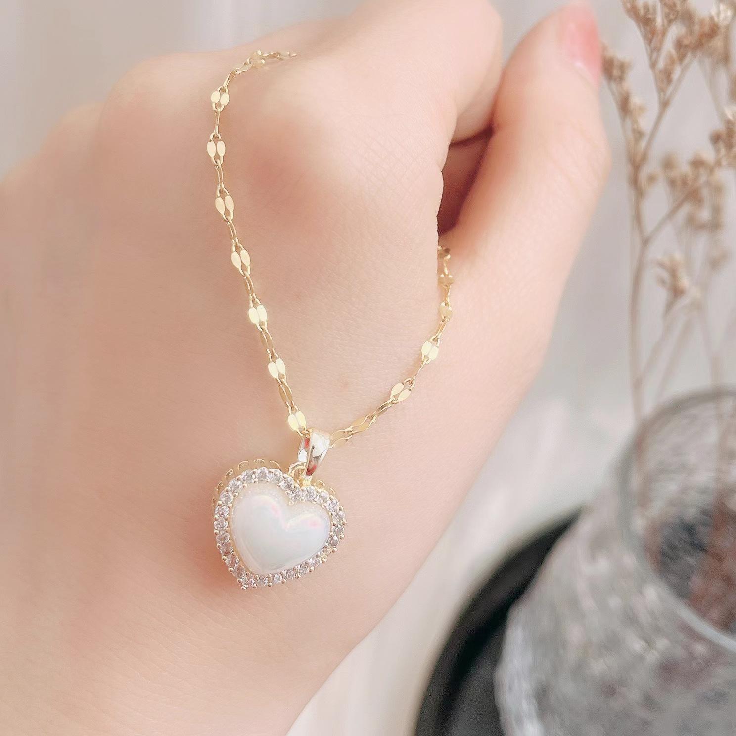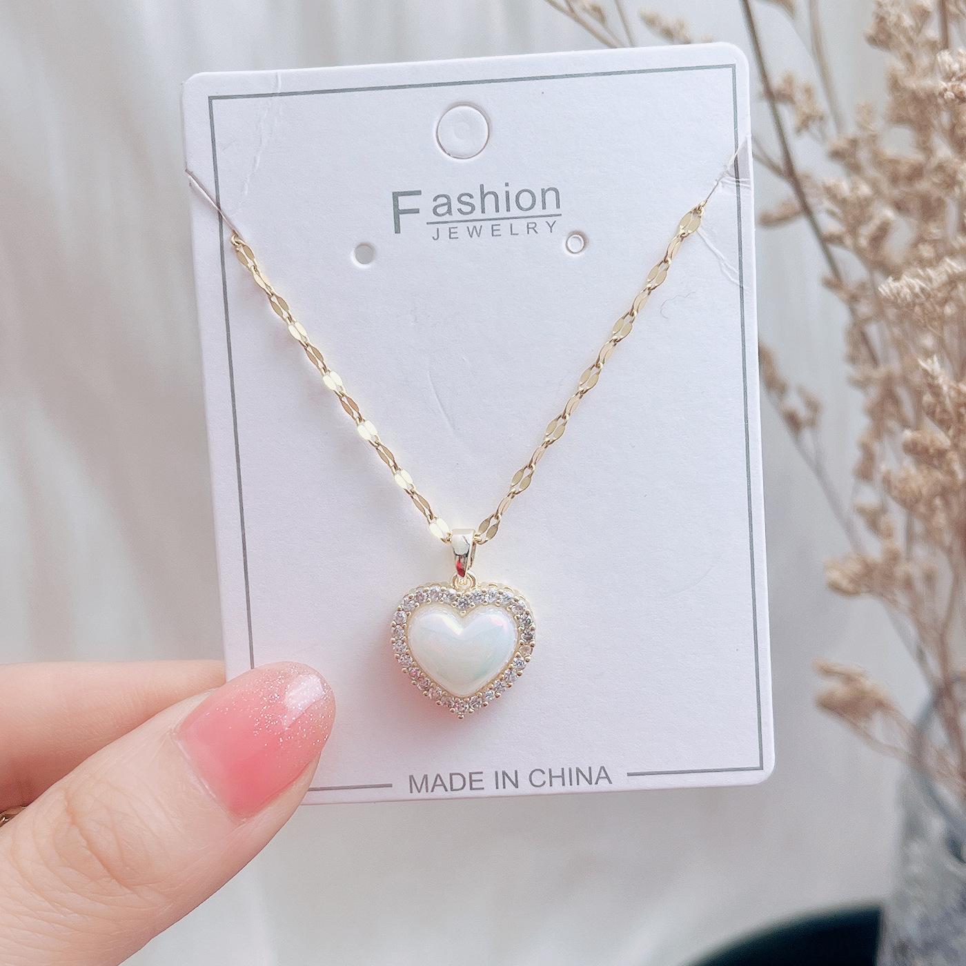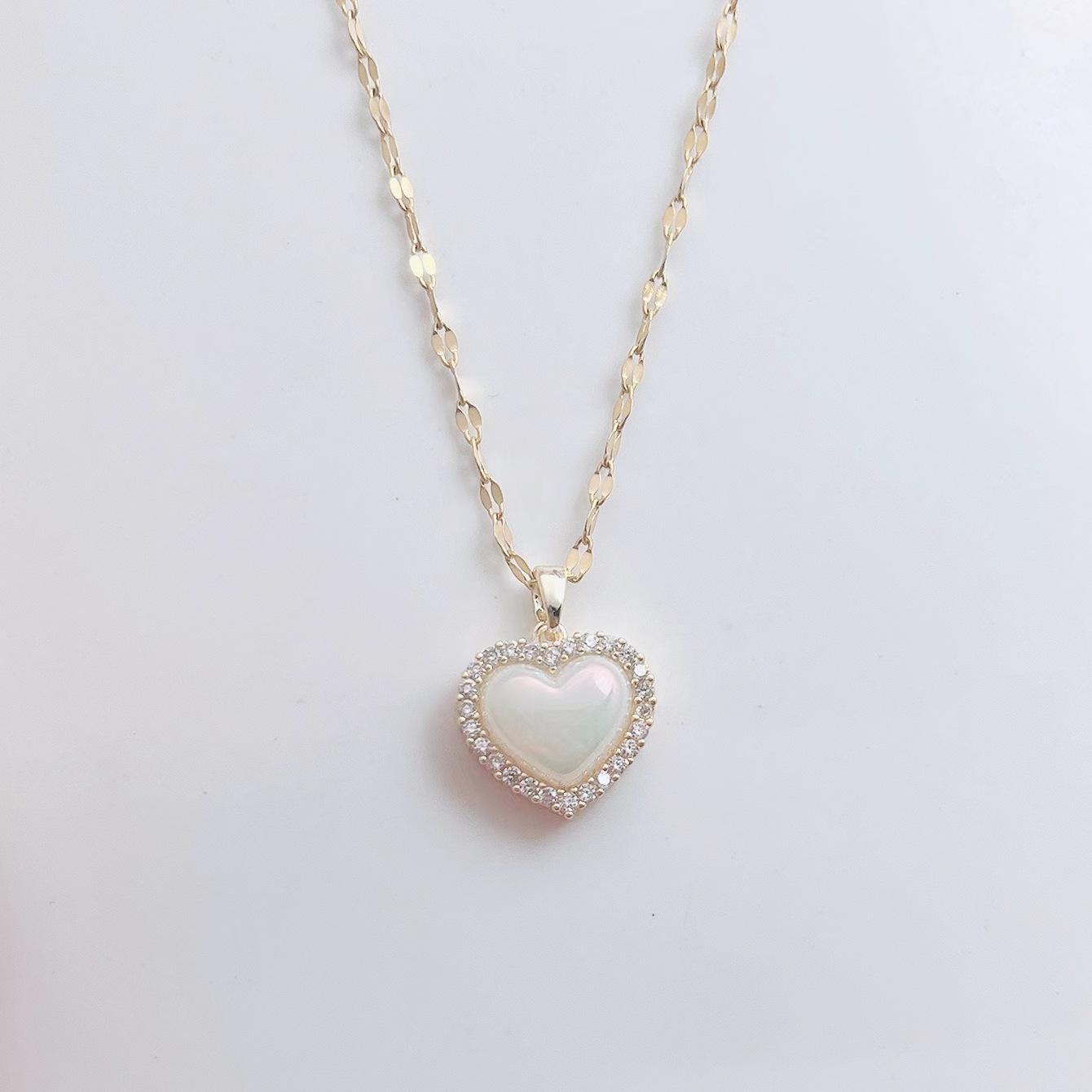[Acero de titanio chapado en oro real] micro-incrustaciones de circonita collar hueco tridimensional en forma de corazón cuentas de color simples cadena clavicular de amor
