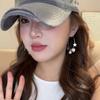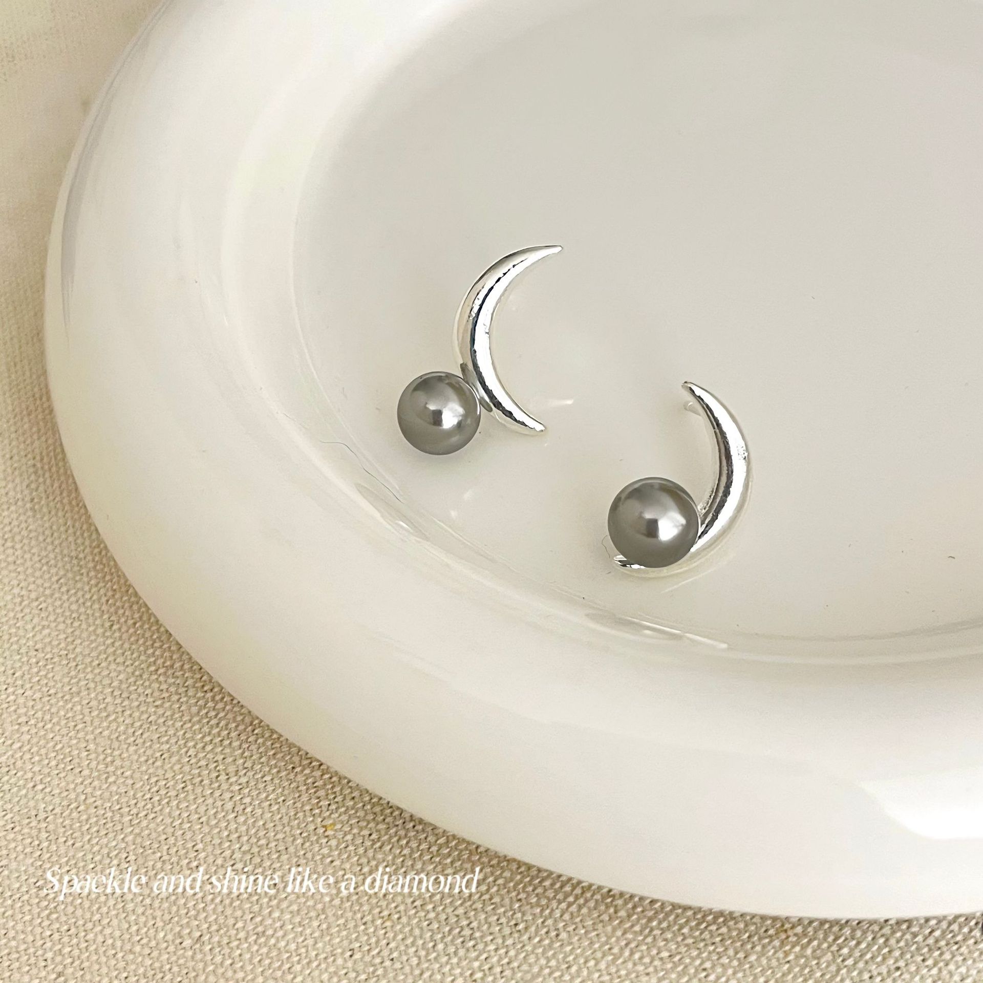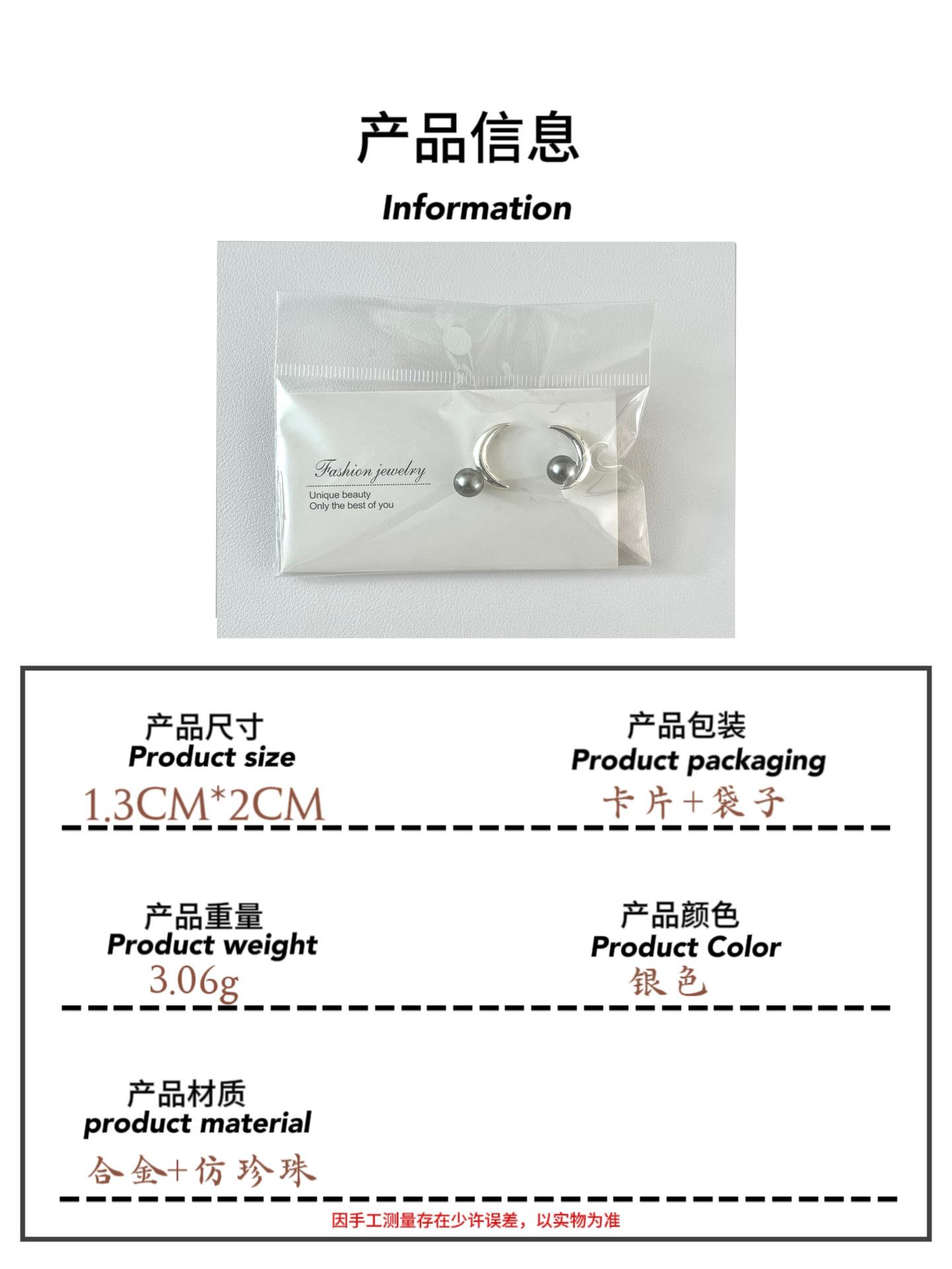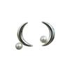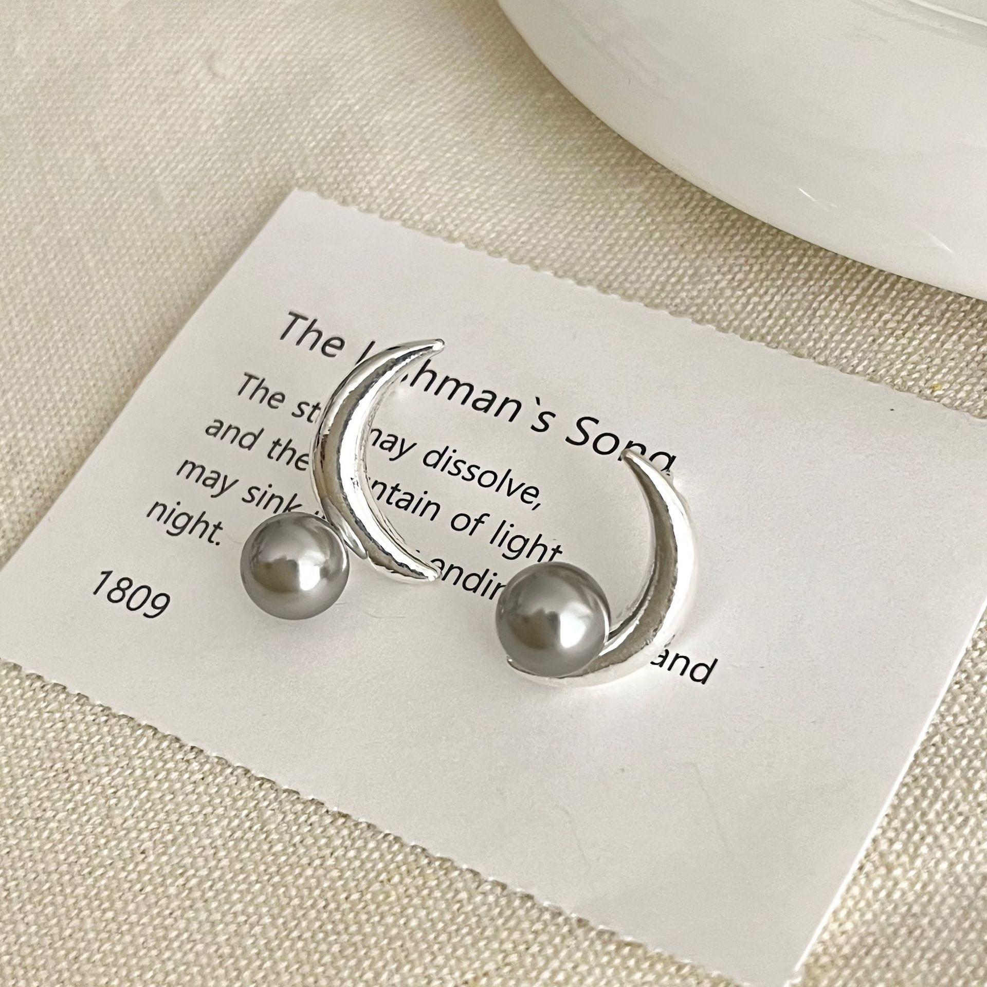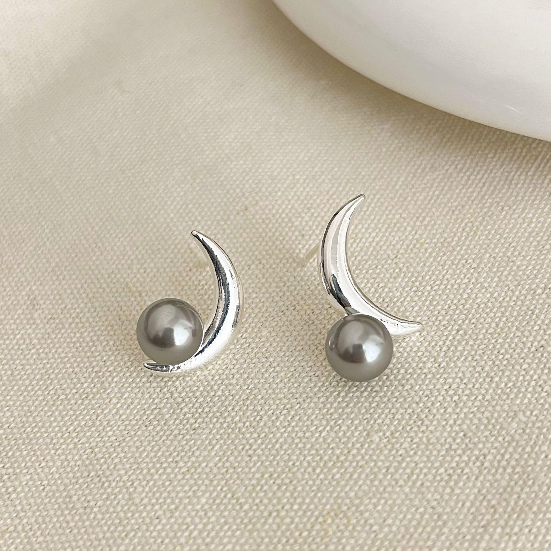 Pendientes de botón con forma de luna de perla gris, diseño de nicho, estilo dulce y moderno, nuevos y populares pendientes 2023 para mujer.