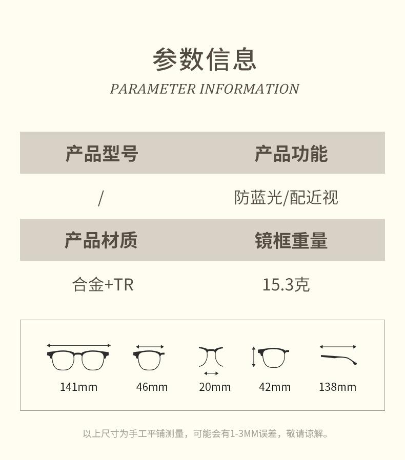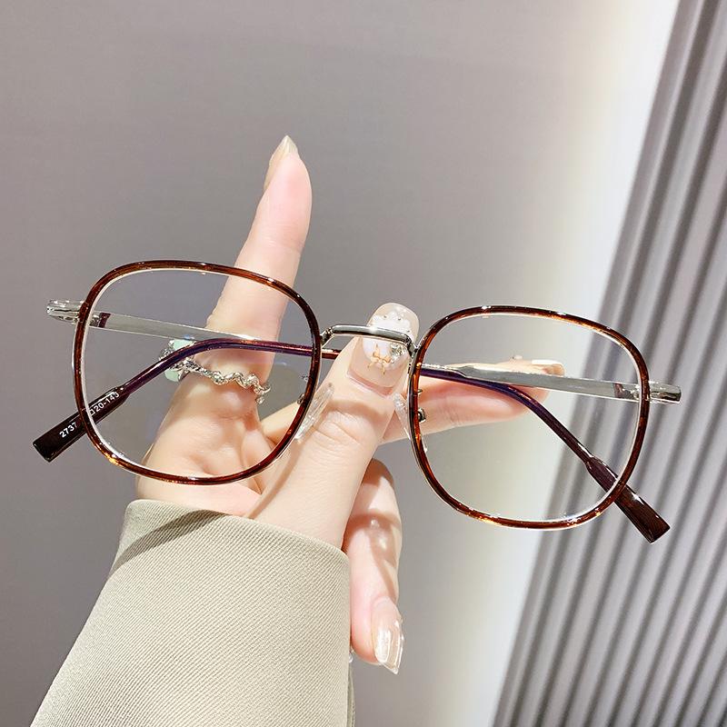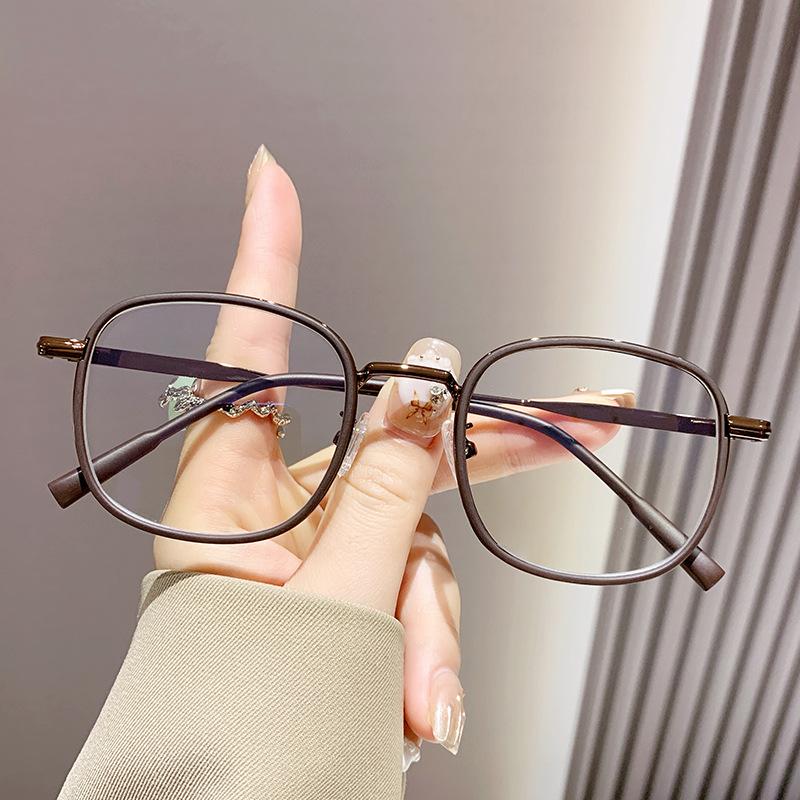 Montura de Gafas Marrón Liso de Alto Valor Luz Anti-azul Redonda Adelgazante para Rostro Plano Moda Tendencia Estudiante