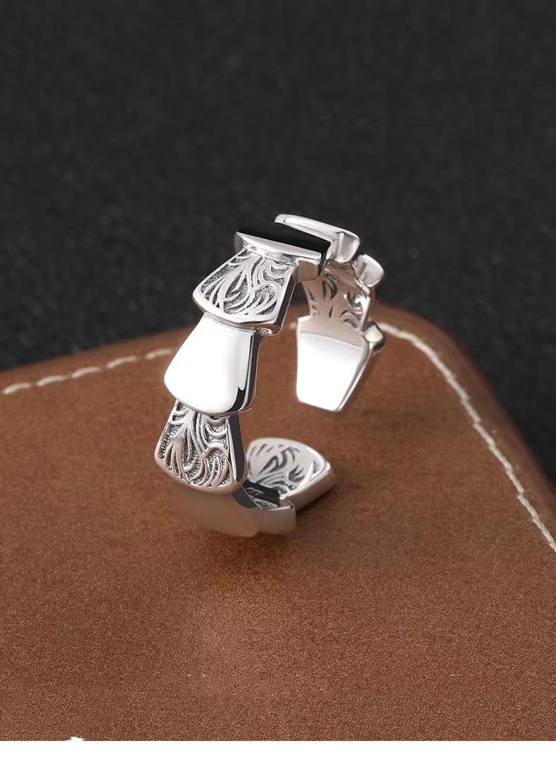 Anillo de escamas de dragón con diseño de nicho de hip-hop retro de Chiba Taiyin, anillo abierto con diseño de escamas de personalidad masculina y escamas de hierba Tang para mujer