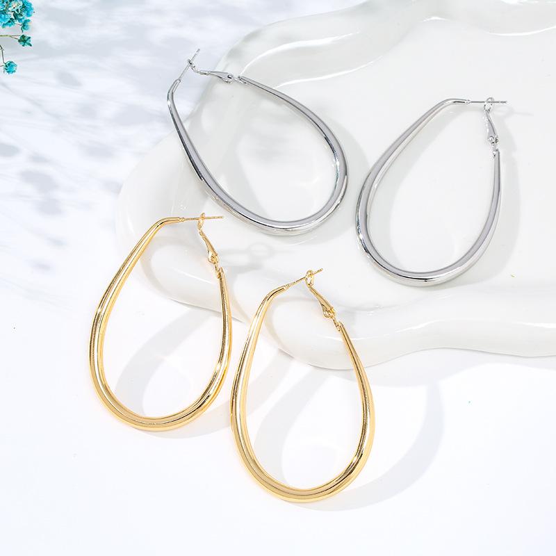Pendientes ovalados geométricos de estilo metálico exagerado europeo y americano, diseño de nicho, pendientes de gota de agua de lujo ligeros y de moda simples, venta al por mayor