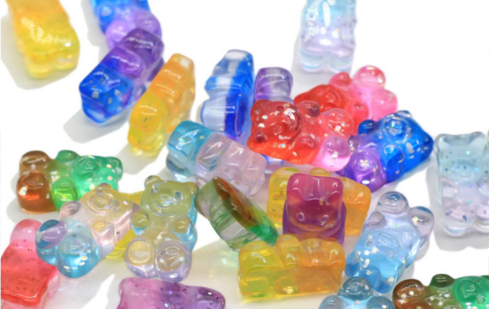 Carcasa de teléfono móvil de imitación de crema, accesorios decorativos de resina, purpurina, oso transparente, accesorios hechos a mano, material de bricolaje