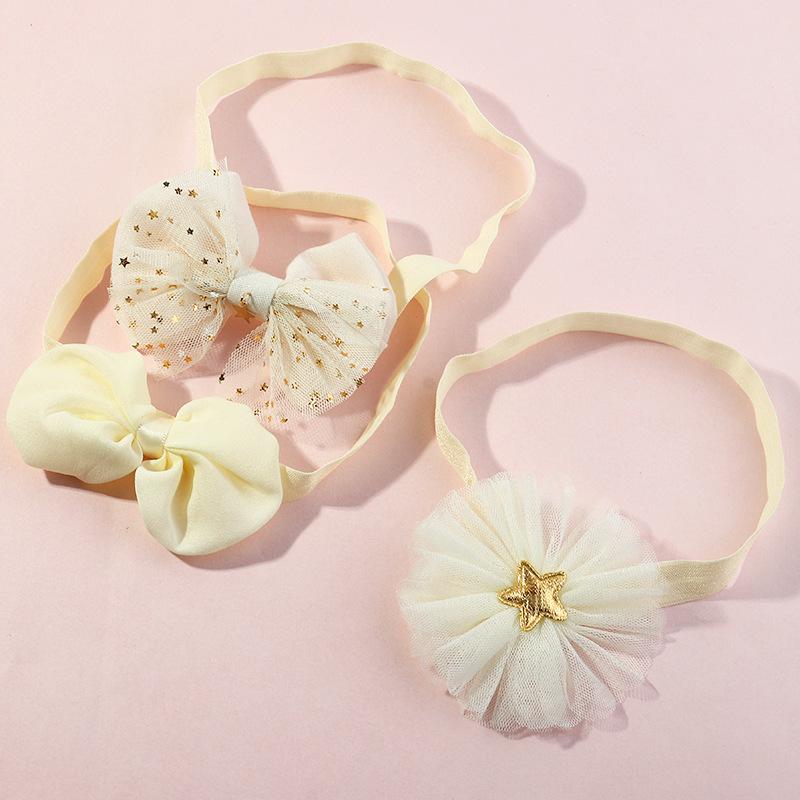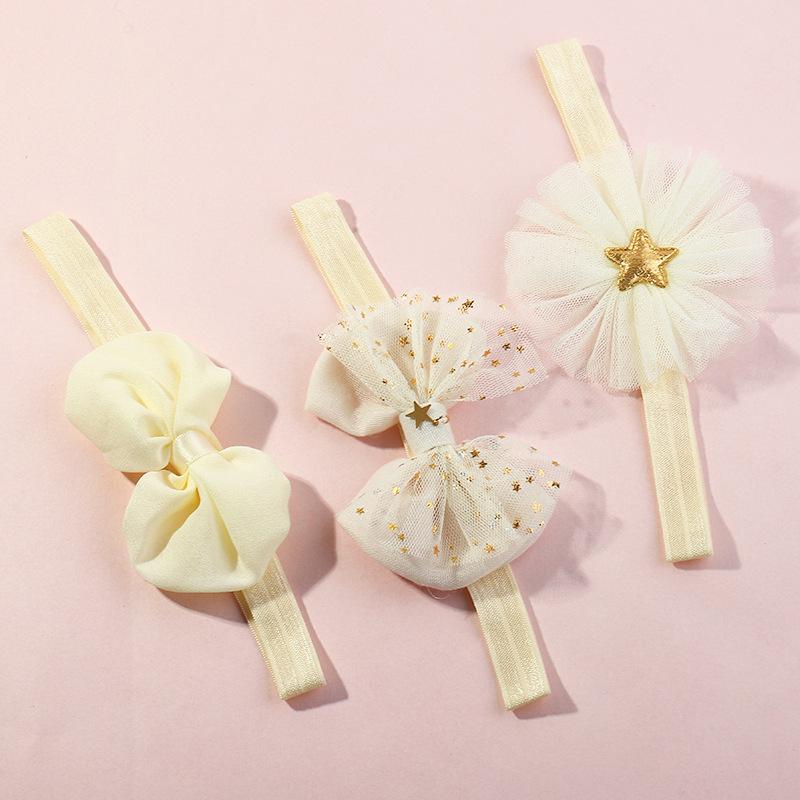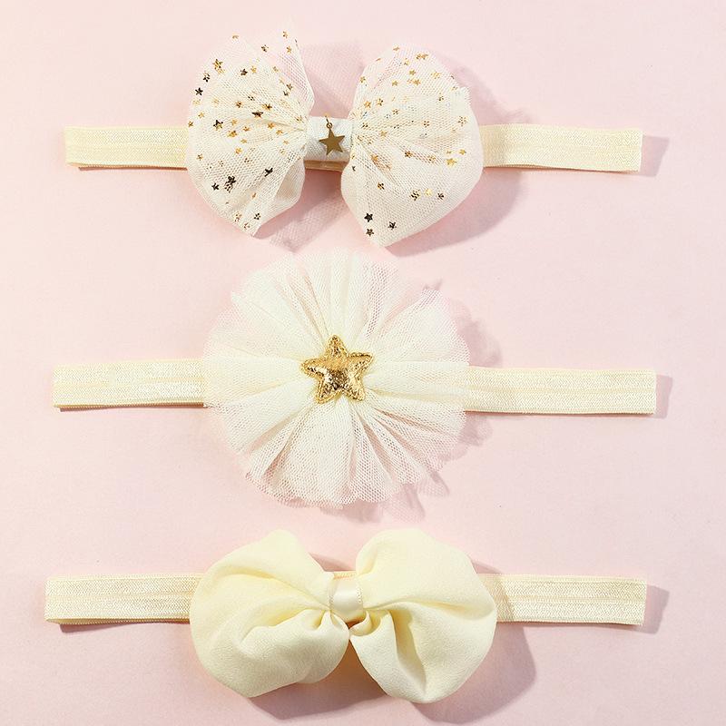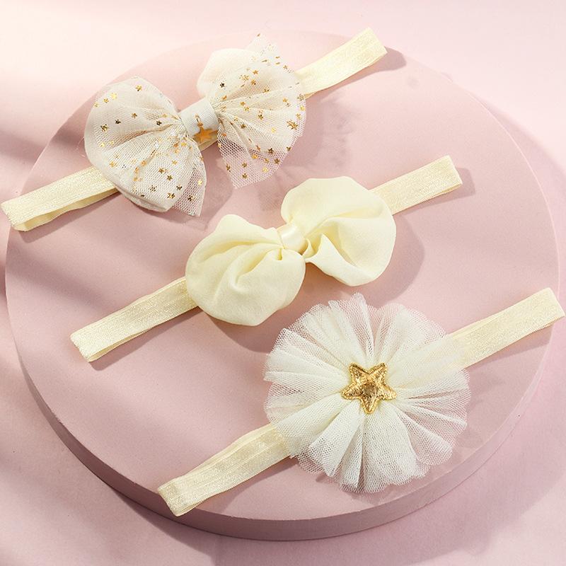 Diadema para Bebé de Estilo Nuevo Europeo y Americano Transfronterizo para Cumpleaños, Sesión de Fotos de 100 Días, Accesorio para el Cabello con Lazo, Diadema de Malla, Doble Cola de Caballo