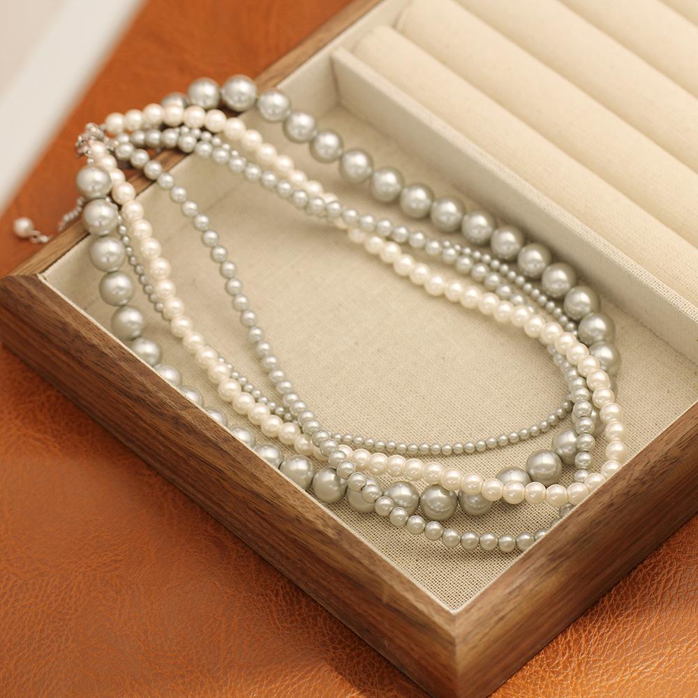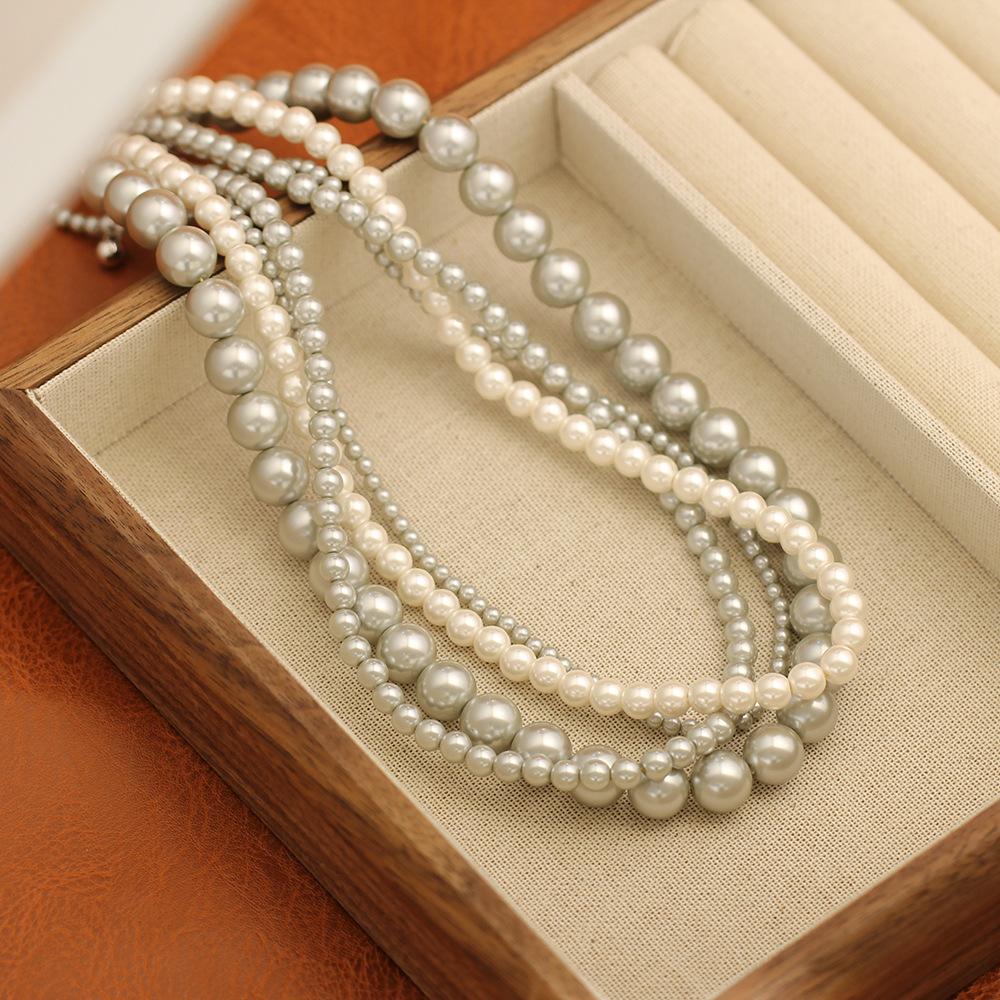 Collar Clásico Combinable Bicolor de Círculo Completo de Perlas de Imitación Elegante Elegante Moda Collar para Mujer Cadena para Clavícula Joyería para Mujer