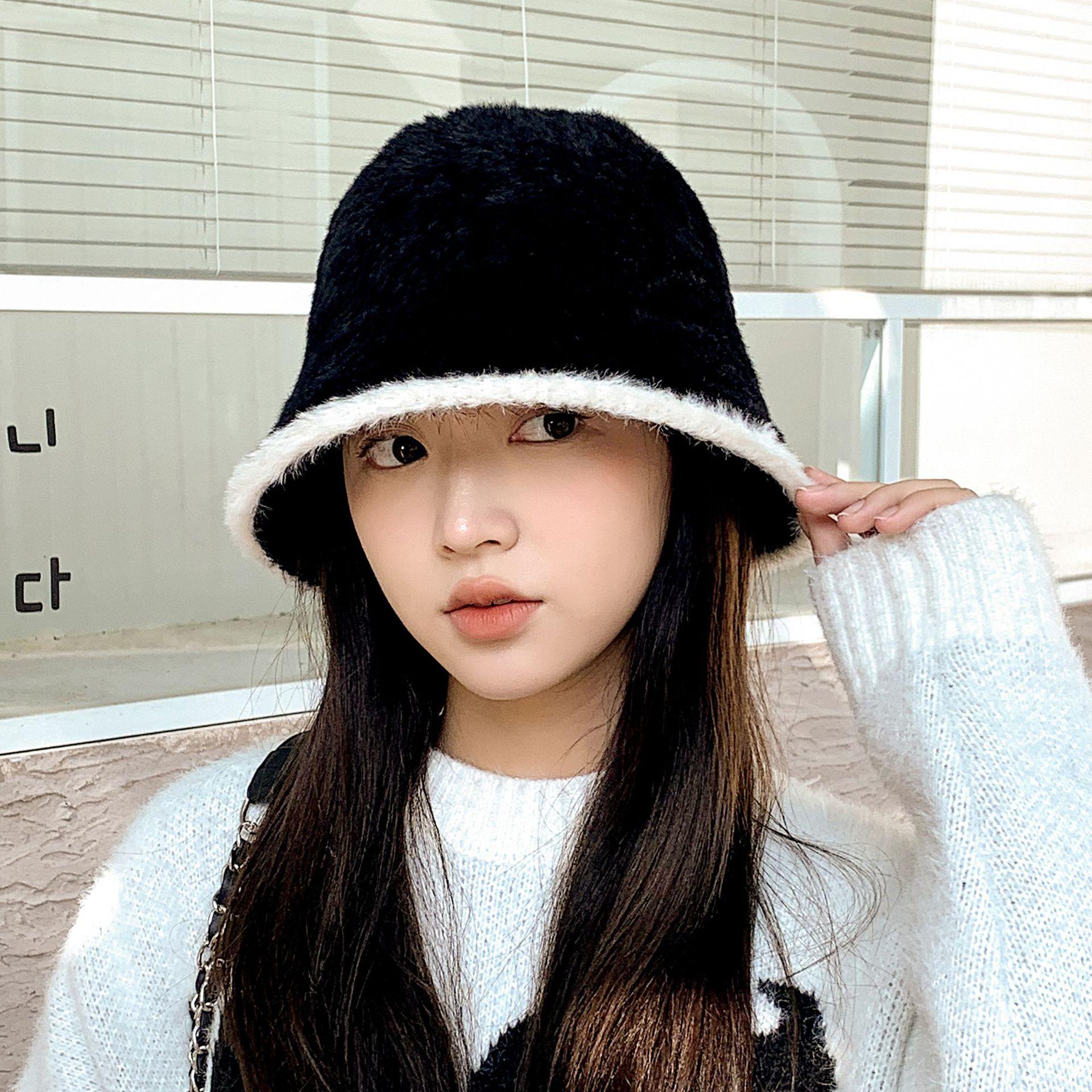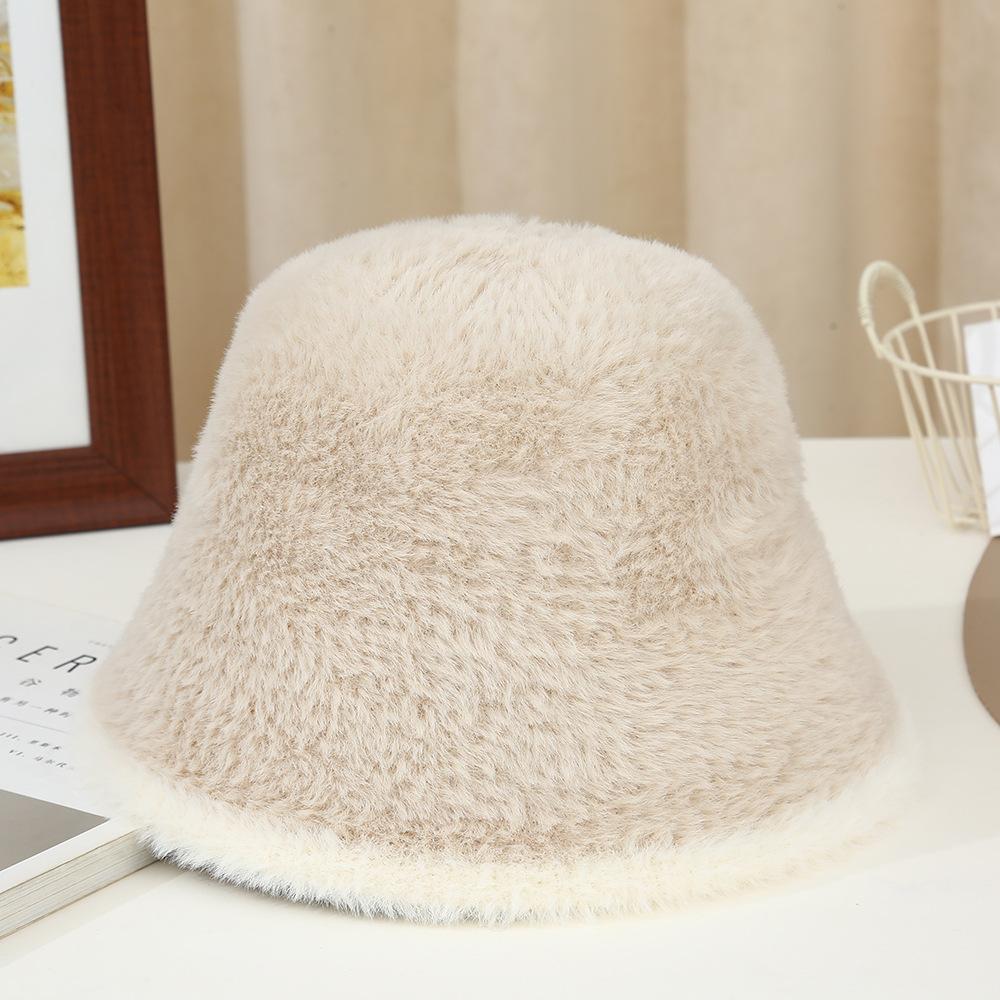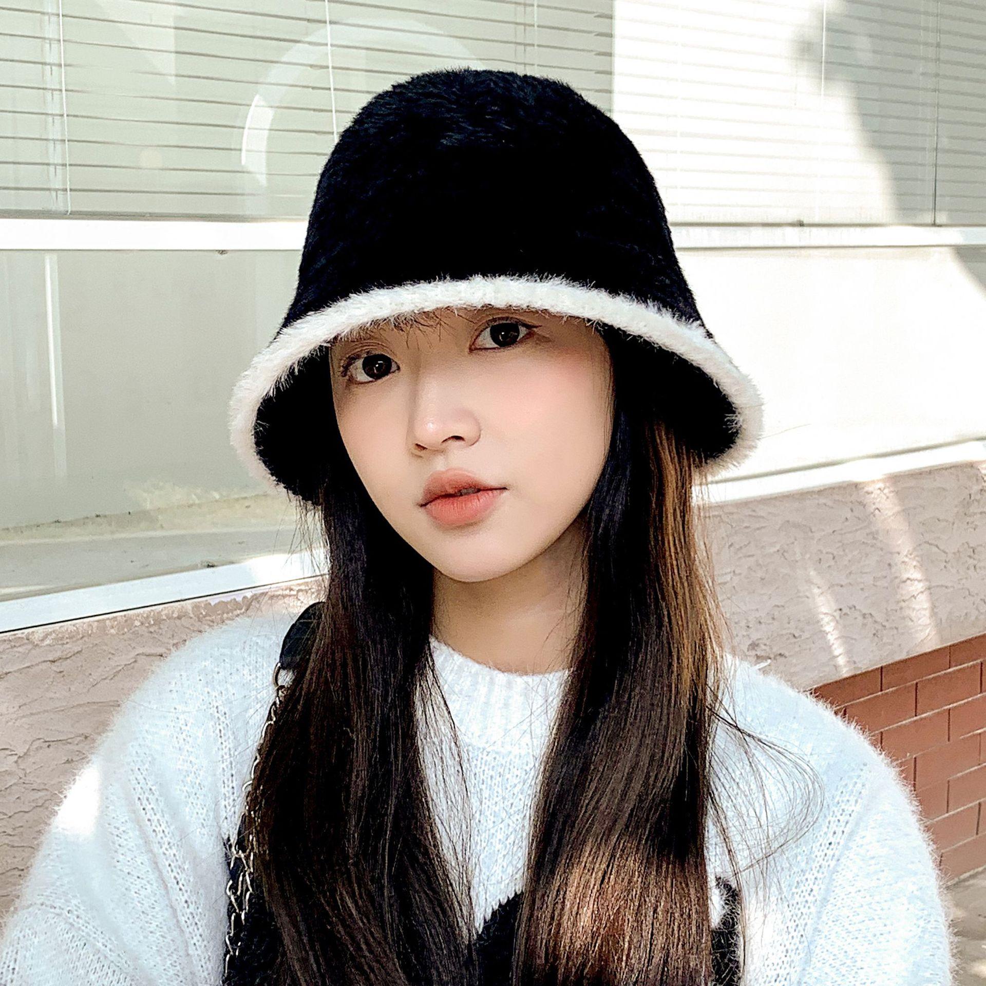 Nuevo gorro cálido de felpa de estilo coreano para otoño e invierno, gorro de pescador grueso para mujer, gorro de cubo con protección para las orejas, gorro de lavabo pequeño con aspecto de cara
