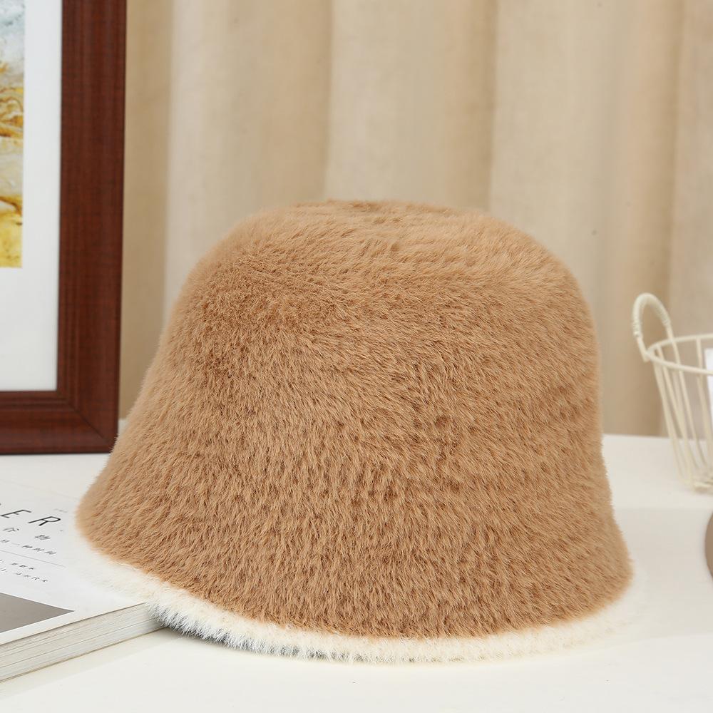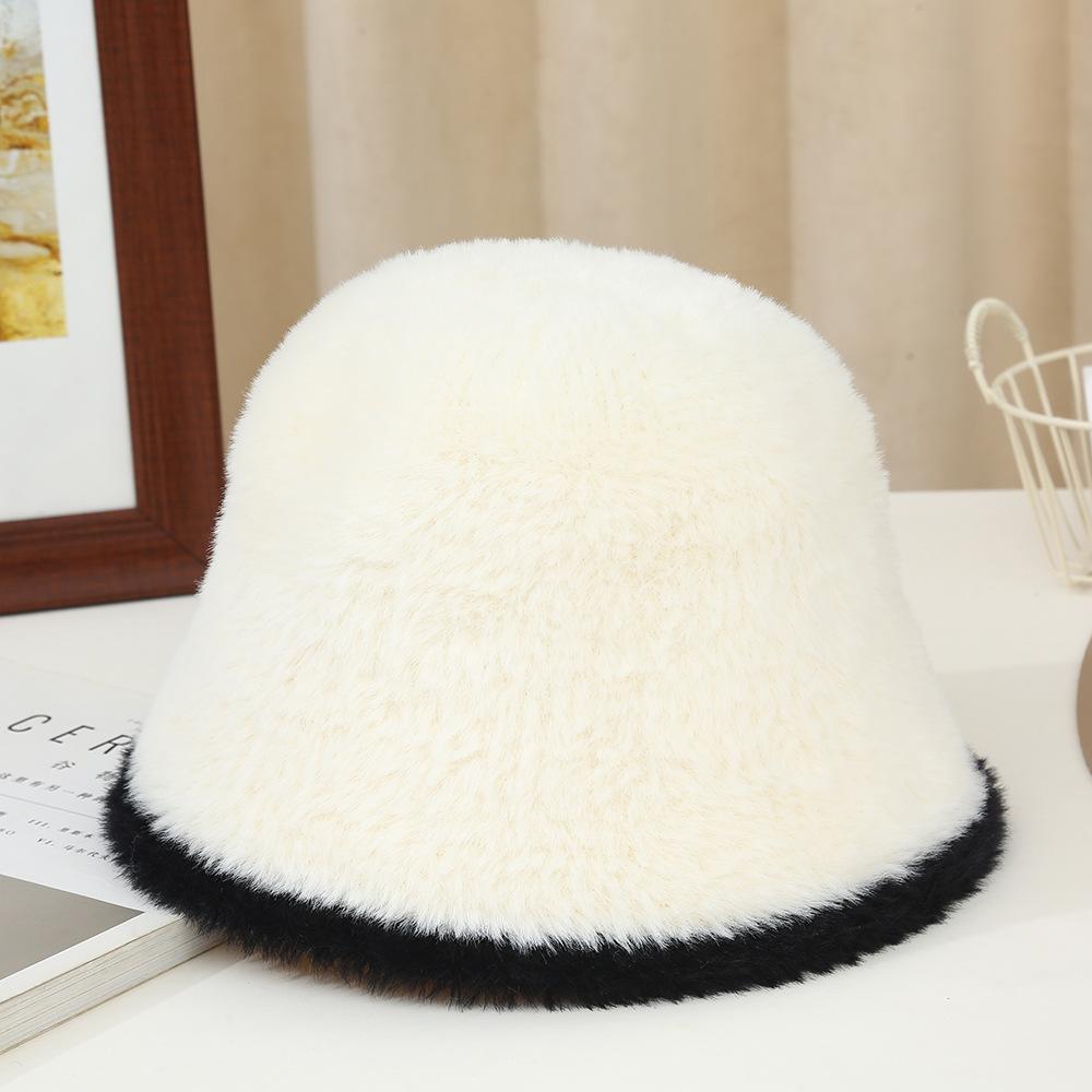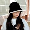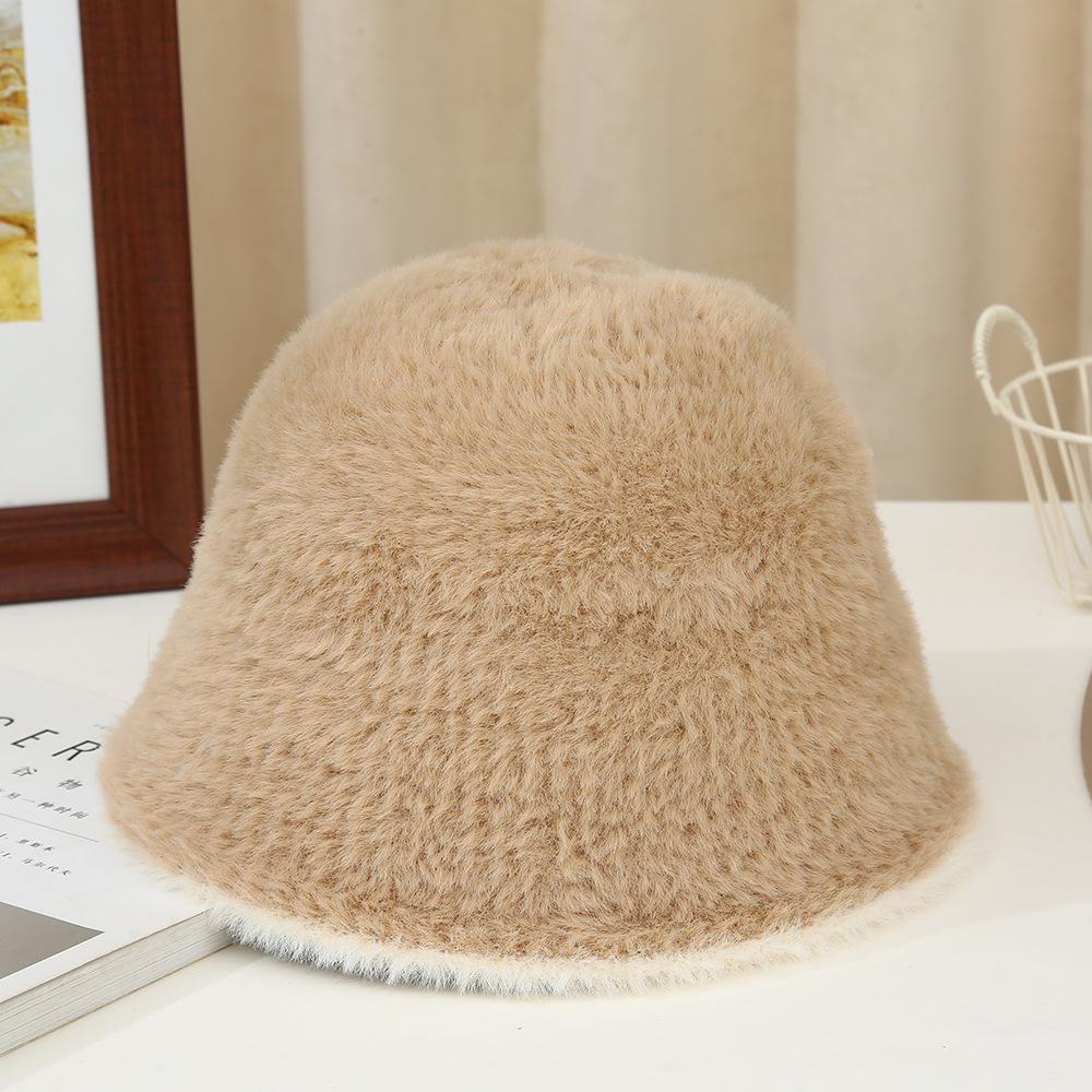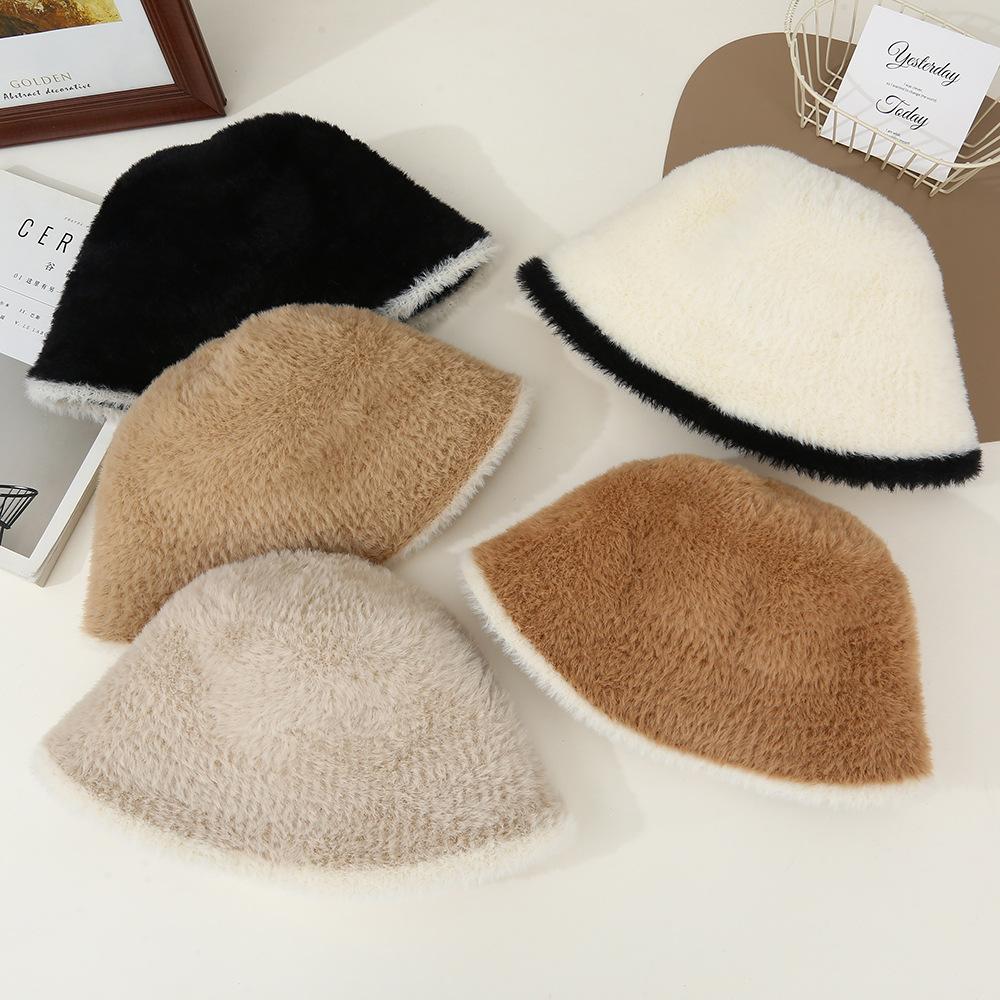 Nuevo gorro cálido de felpa de estilo coreano para otoño e invierno, gorro de pescador grueso para mujer, gorro de cubo con protección para las orejas, gorro de lavabo pequeño con aspecto de cara