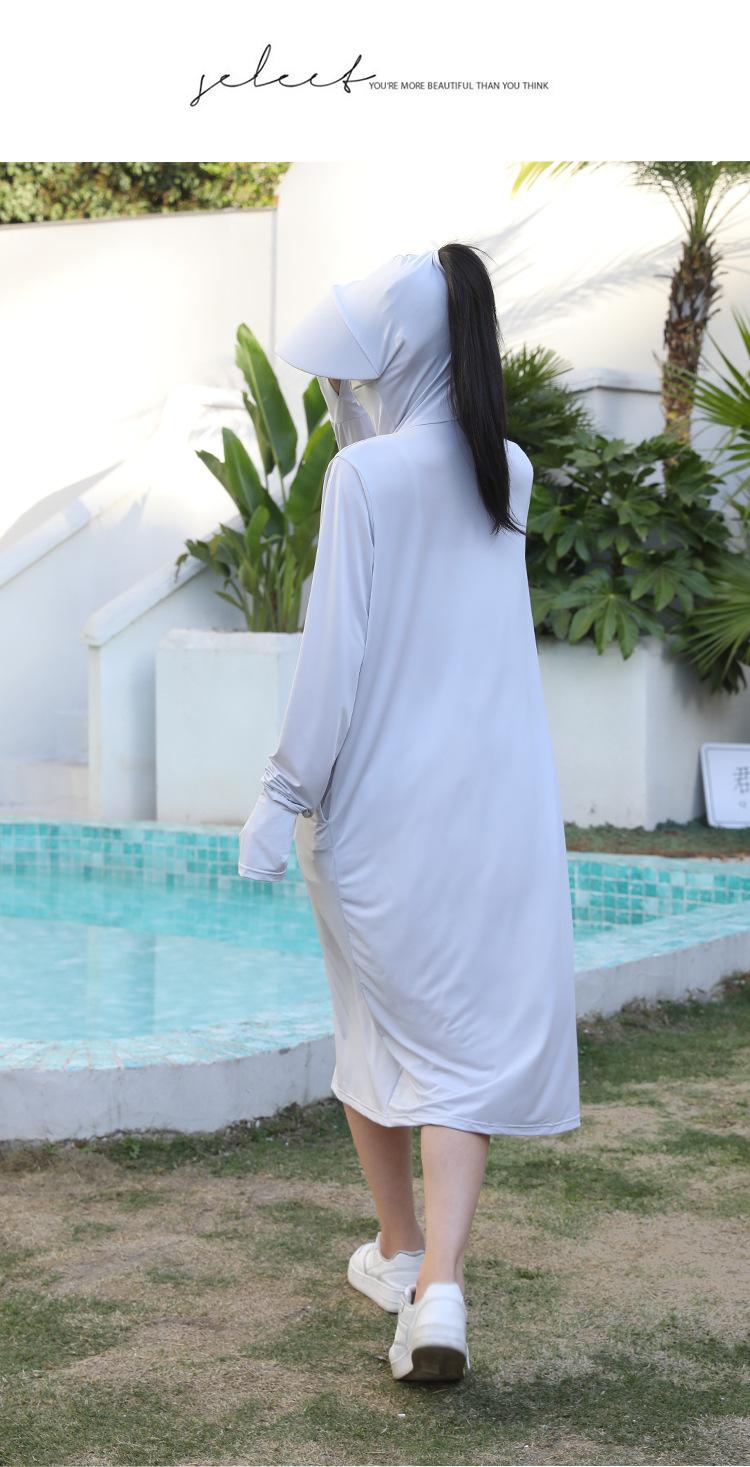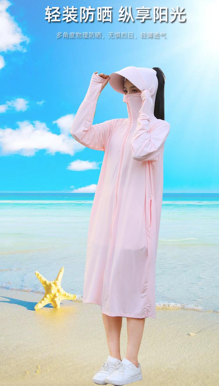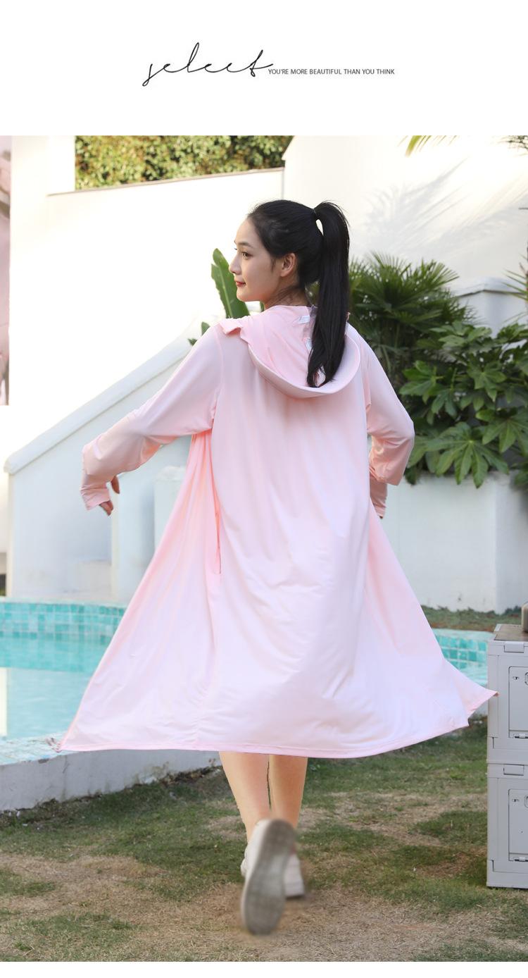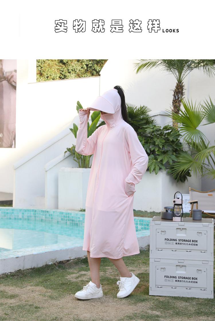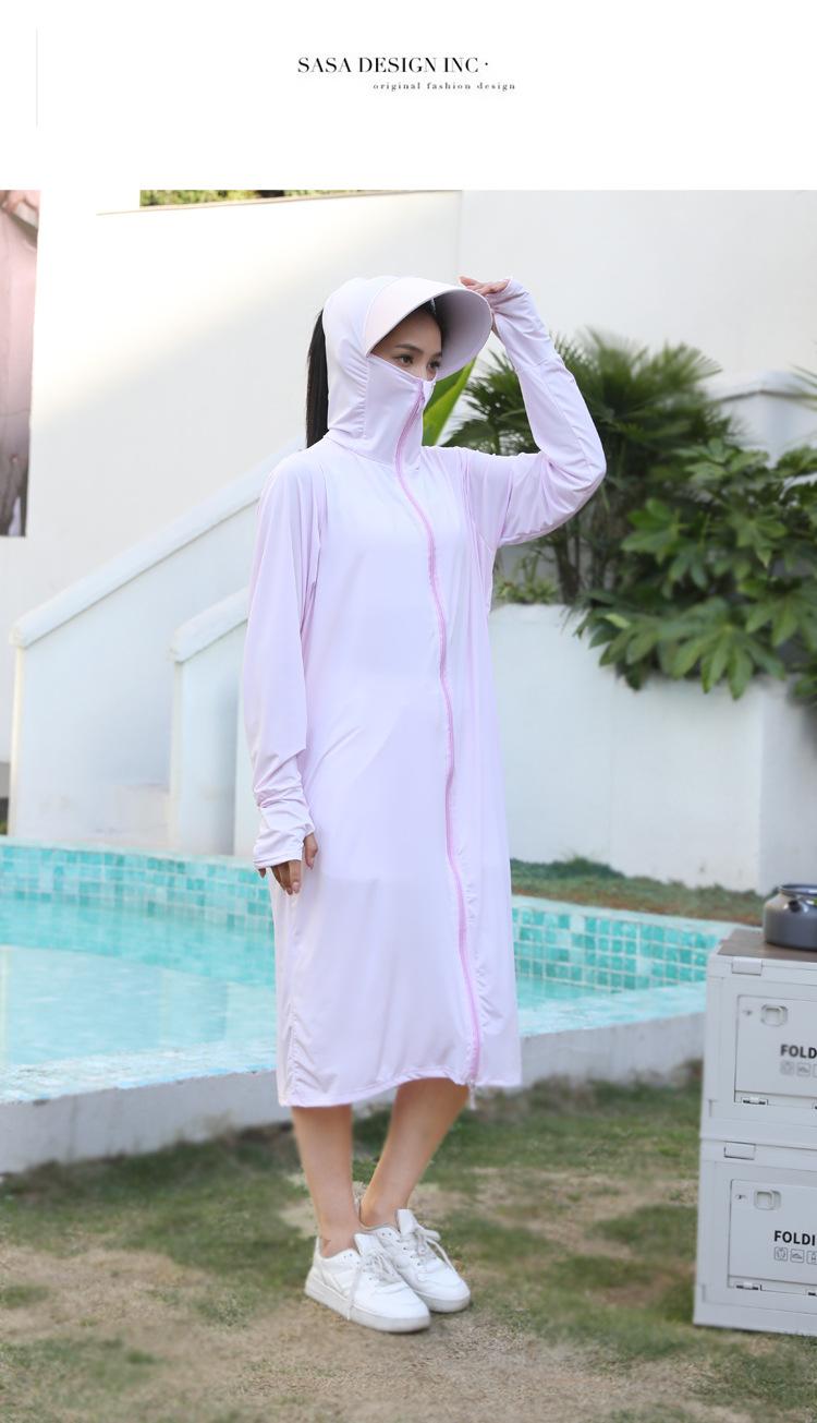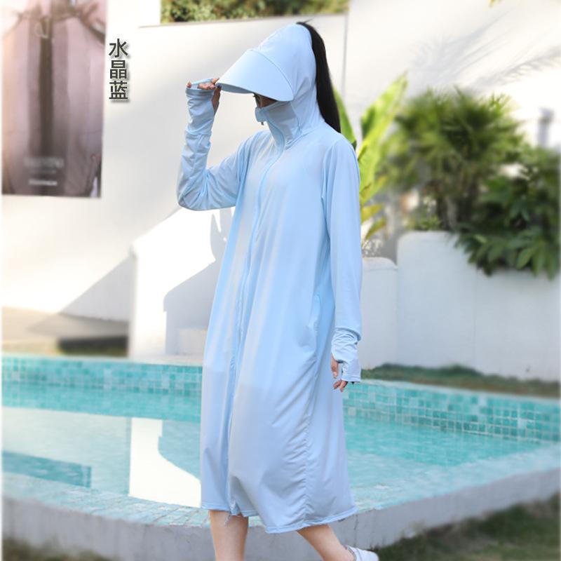 Ropa de verano con protección solar para mujer, chaqueta larga para ciclismo al aire libre, transpirable, de seda de hielo, con protección UV para todo el cuerpo, por encima de la rodilla