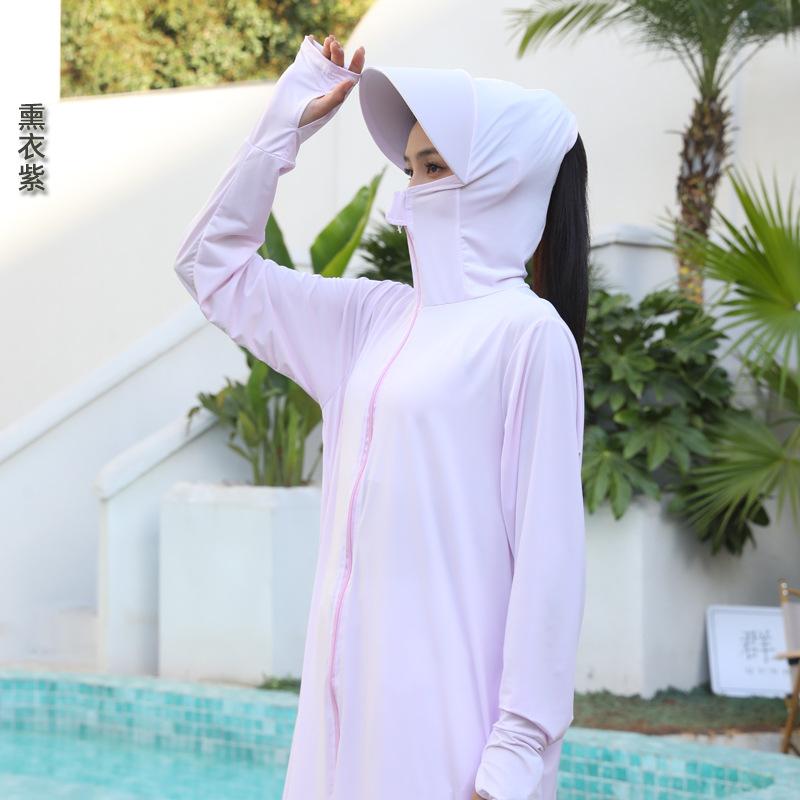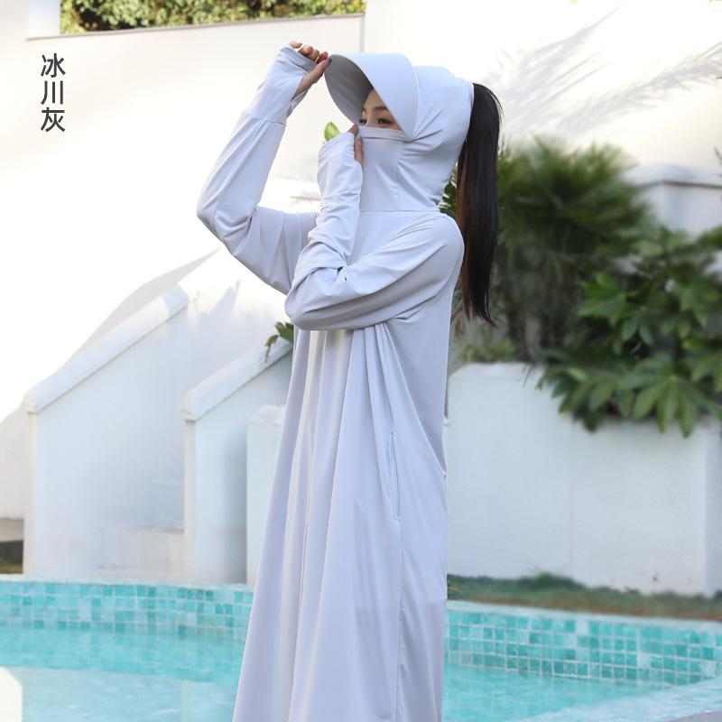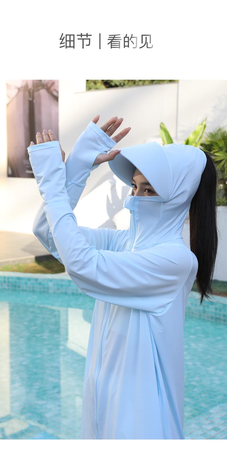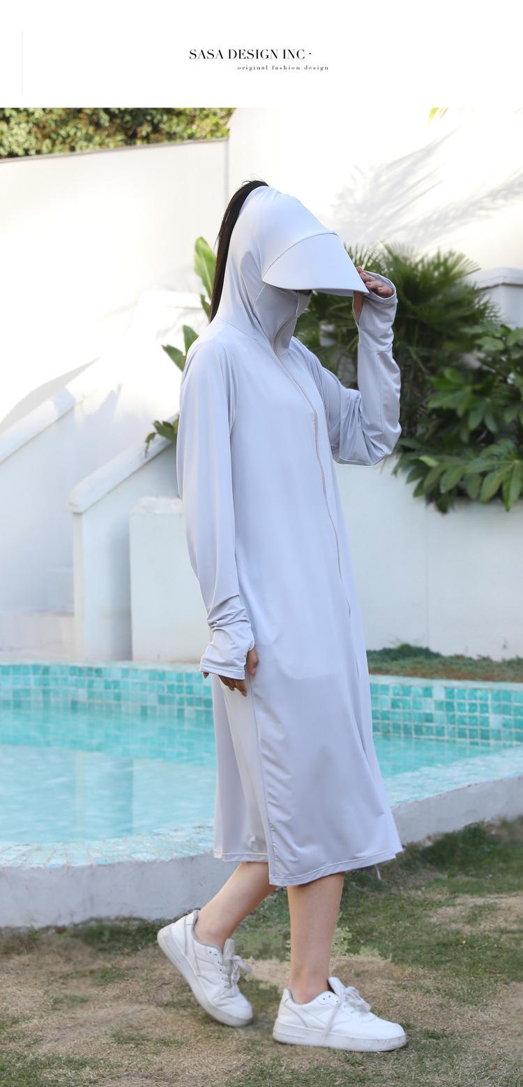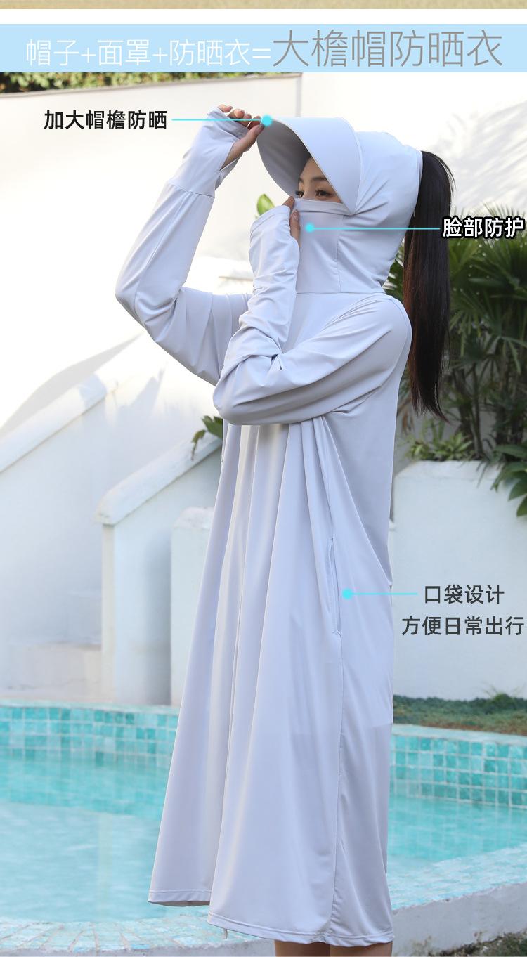 Ropa de verano con protección solar para mujer, chaqueta larga para ciclismo al aire libre, transpirable, de seda de hielo, con protección UV para todo el cuerpo, por encima de la rodilla