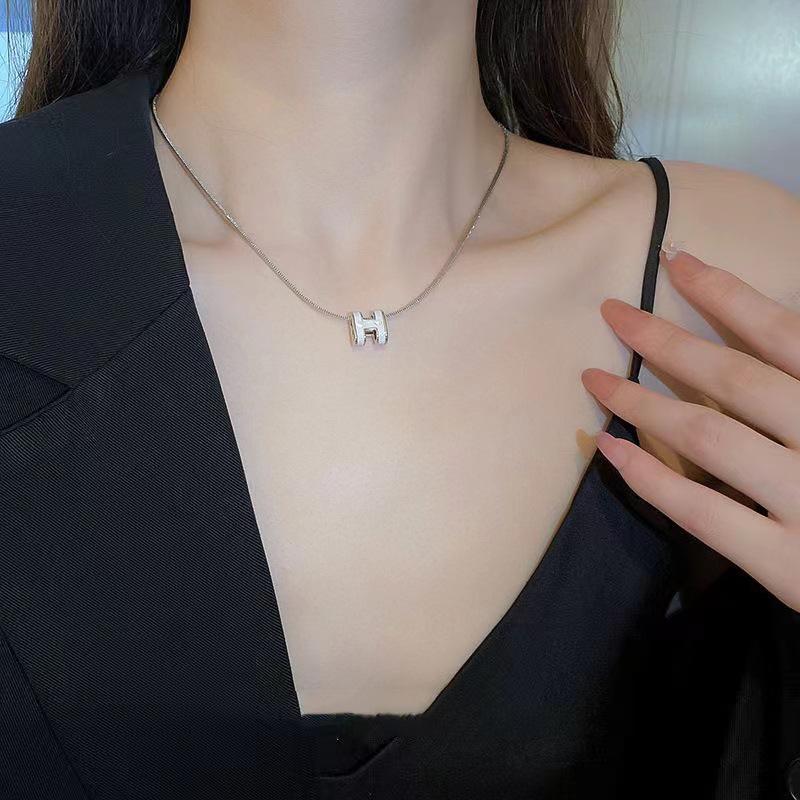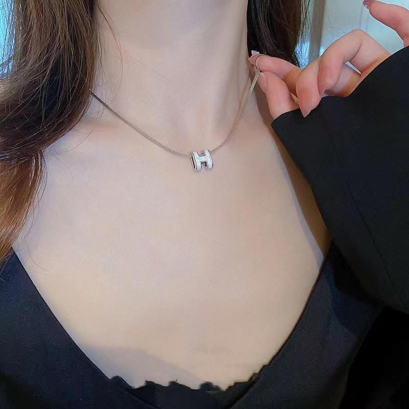 Collar elegante con letras de nicho coreano, cadena de clavícula con letra H a la moda, collar de lujo ligero de alta gama, venta al por mayor para mujeres