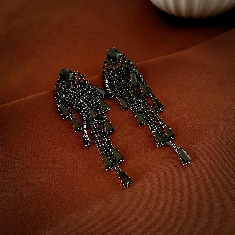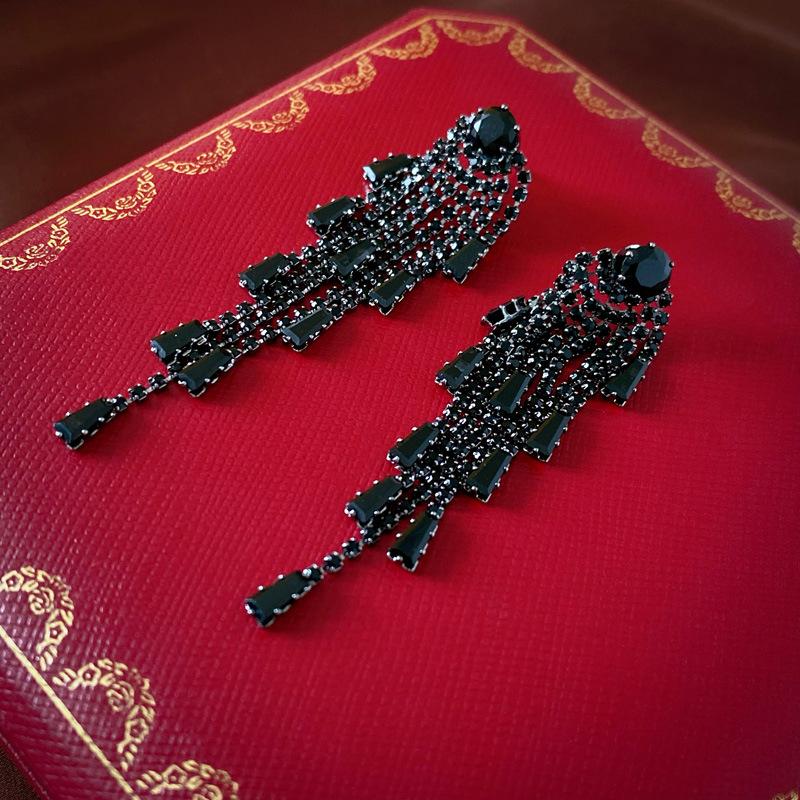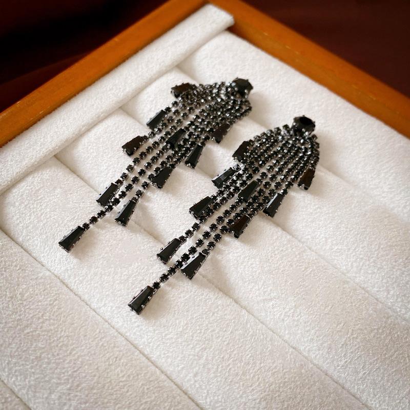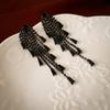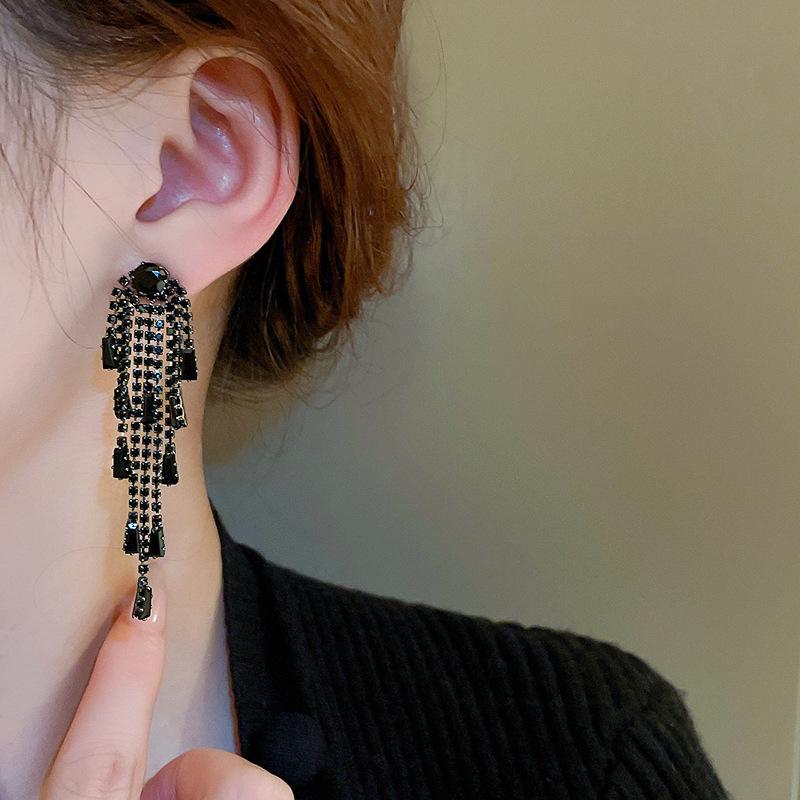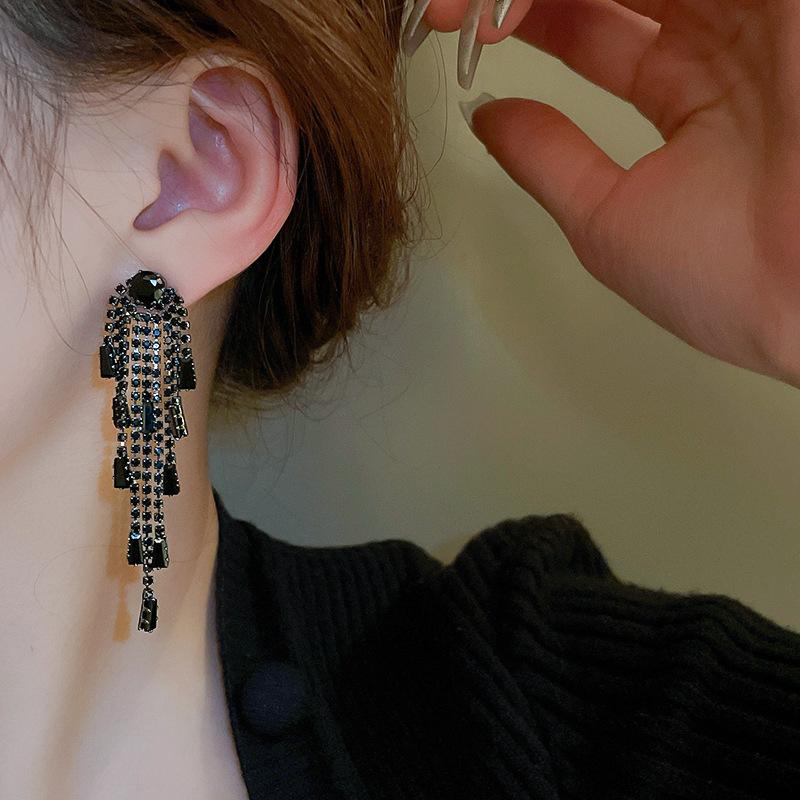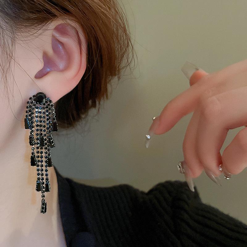 Aretes Vintage Estilo Oscuro Zircón Borla Larga Aguja de Plata Personalidad Nicho Elegantes de Alta Gama para Mujer