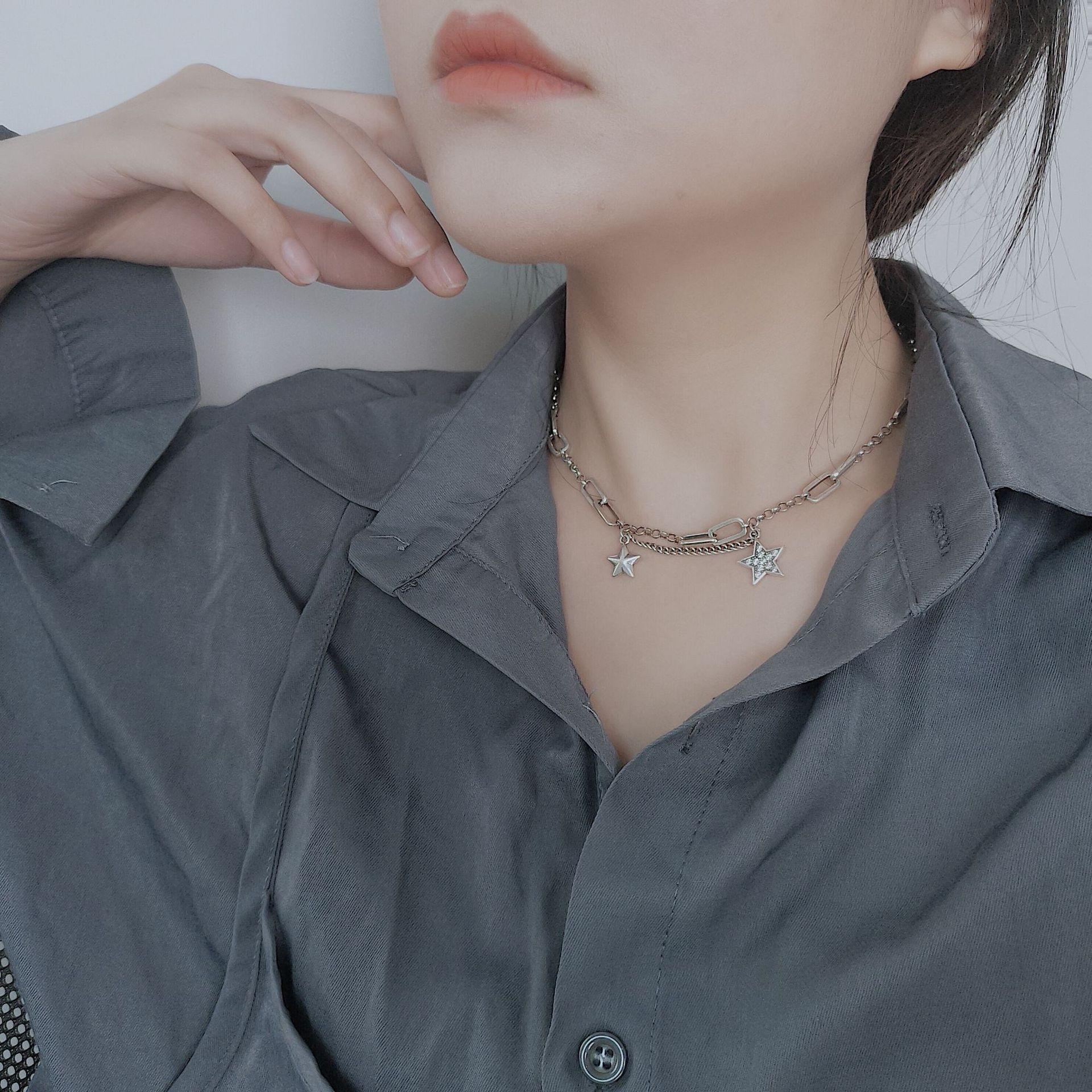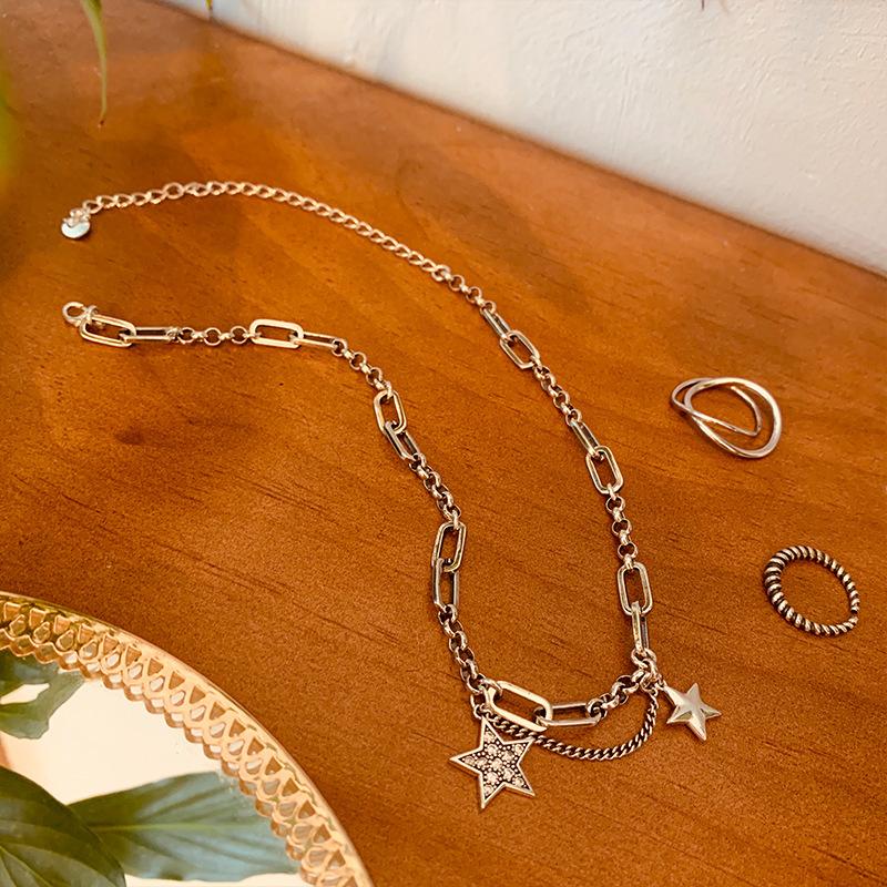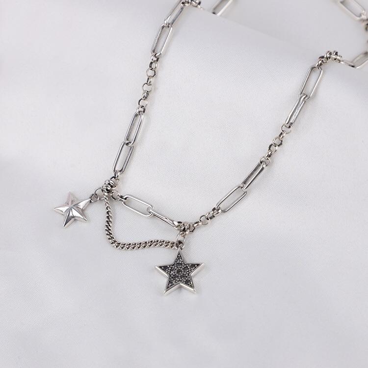 Collar de Estrella de Cinco Puntas de Plata Esterlina S925 Coreano Dongdaemun para Mujer Vintage Anticuado Versátil Estilo Hip-hop ins Cadena de Lana Trendy