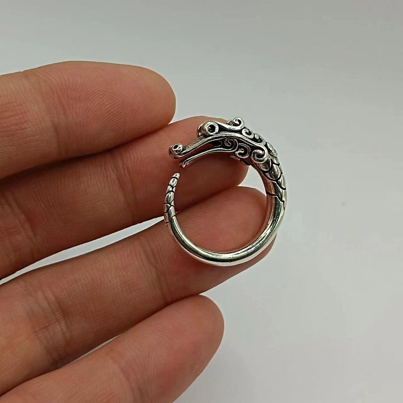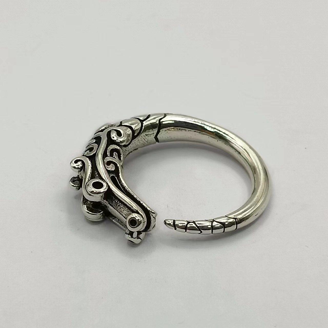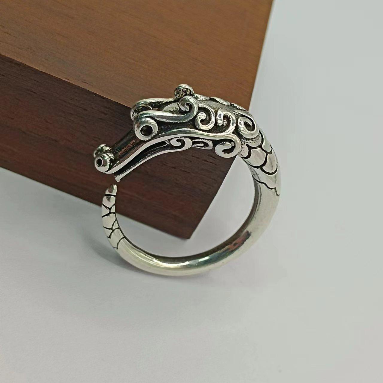 Compra Anillo de hombre de moda nacional Qianye plata tailandesa anillo de dragón vintage nicho accesorios de moda para hombres y mujeres talla ajustable al por mayor en Joom.pro
