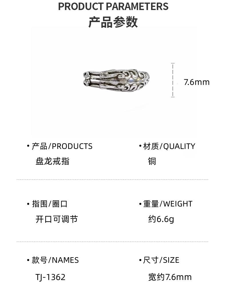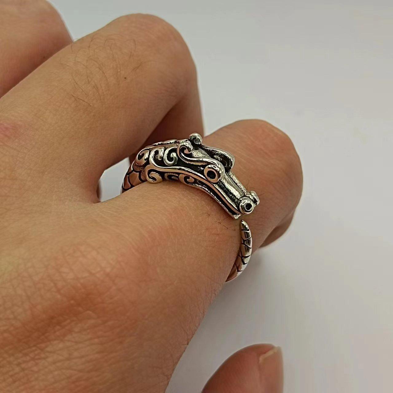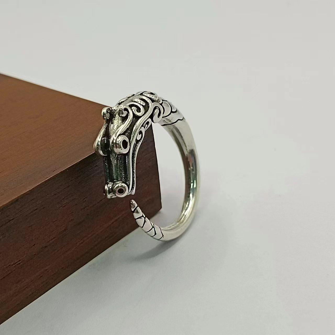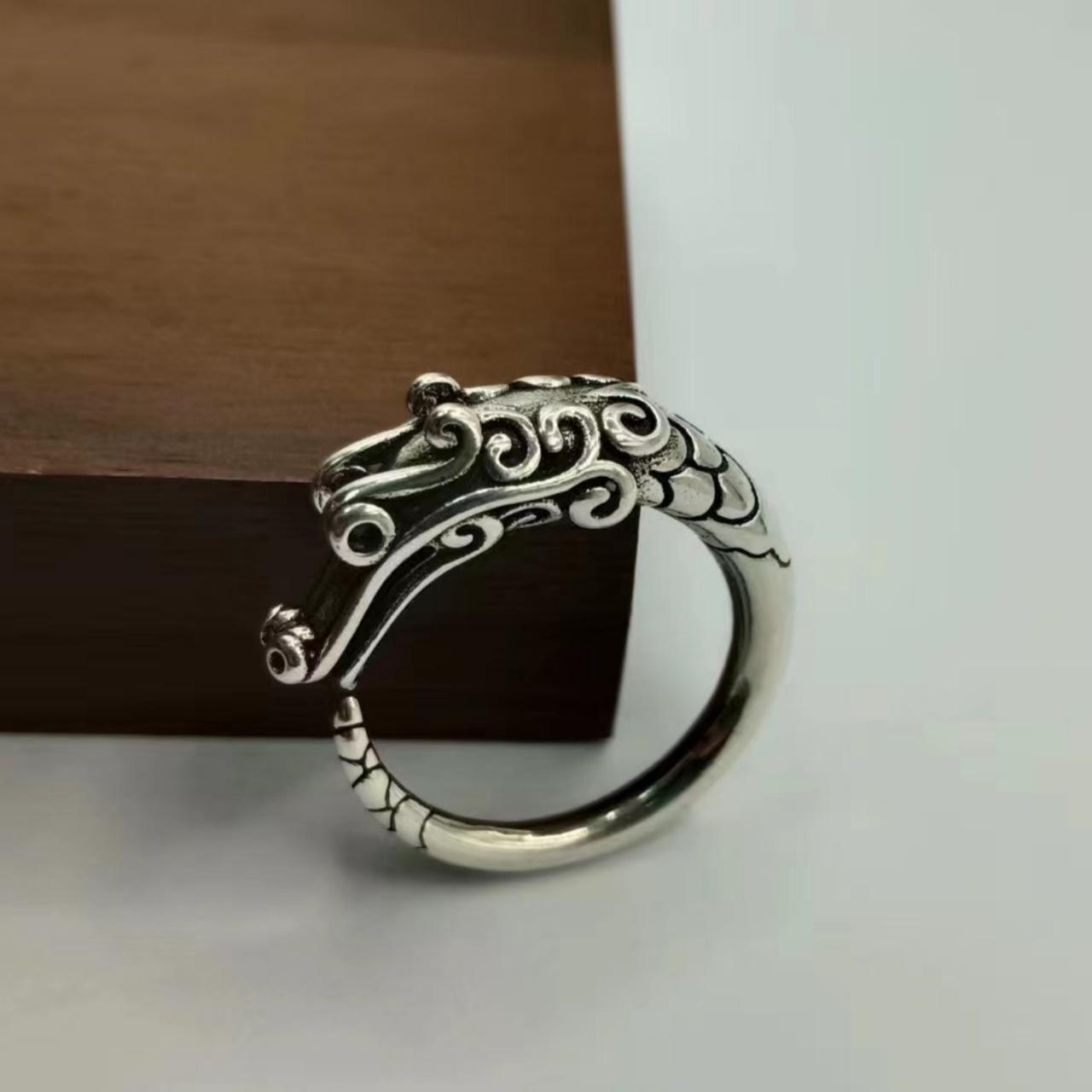 Compra Anillo de hombre de moda nacional Qianye plata tailandesa anillo de dragón vintage nicho accesorios de moda para hombres y mujeres talla ajustable al por mayor en Joom.pro