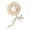 Broche de Flor de Rosa Hueca de Perlas de Lujo Ligero, Pin de Lujo de Alta Gama con Pedrería, Accesorio de Broche Coreano para Abrigo y Cárdigan
