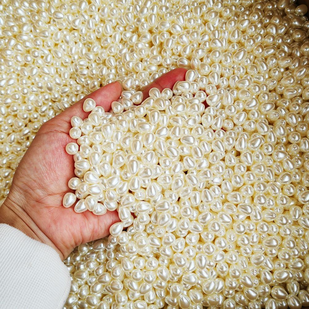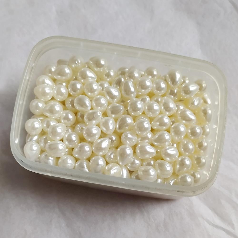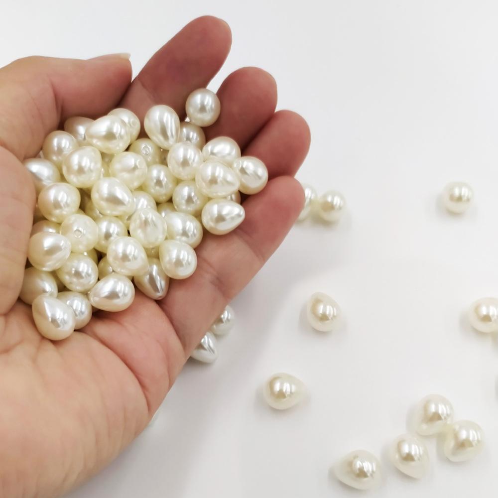 En stock, perlas sueltas de imitación de gota de agua, accesorios de joyería para bricolaje, cuentas de gota de agua de plástico ABS con medio agujero y resaltado beige.
