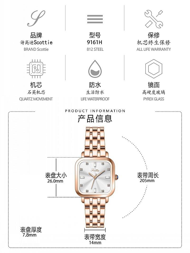 Reloj de pulsera Shigaodi con correa de acero cuadrada, sencillo y de moda, de cuarzo, resistente al agua, de alta calidad, para estudiantes de negocios, venta al por mayor
