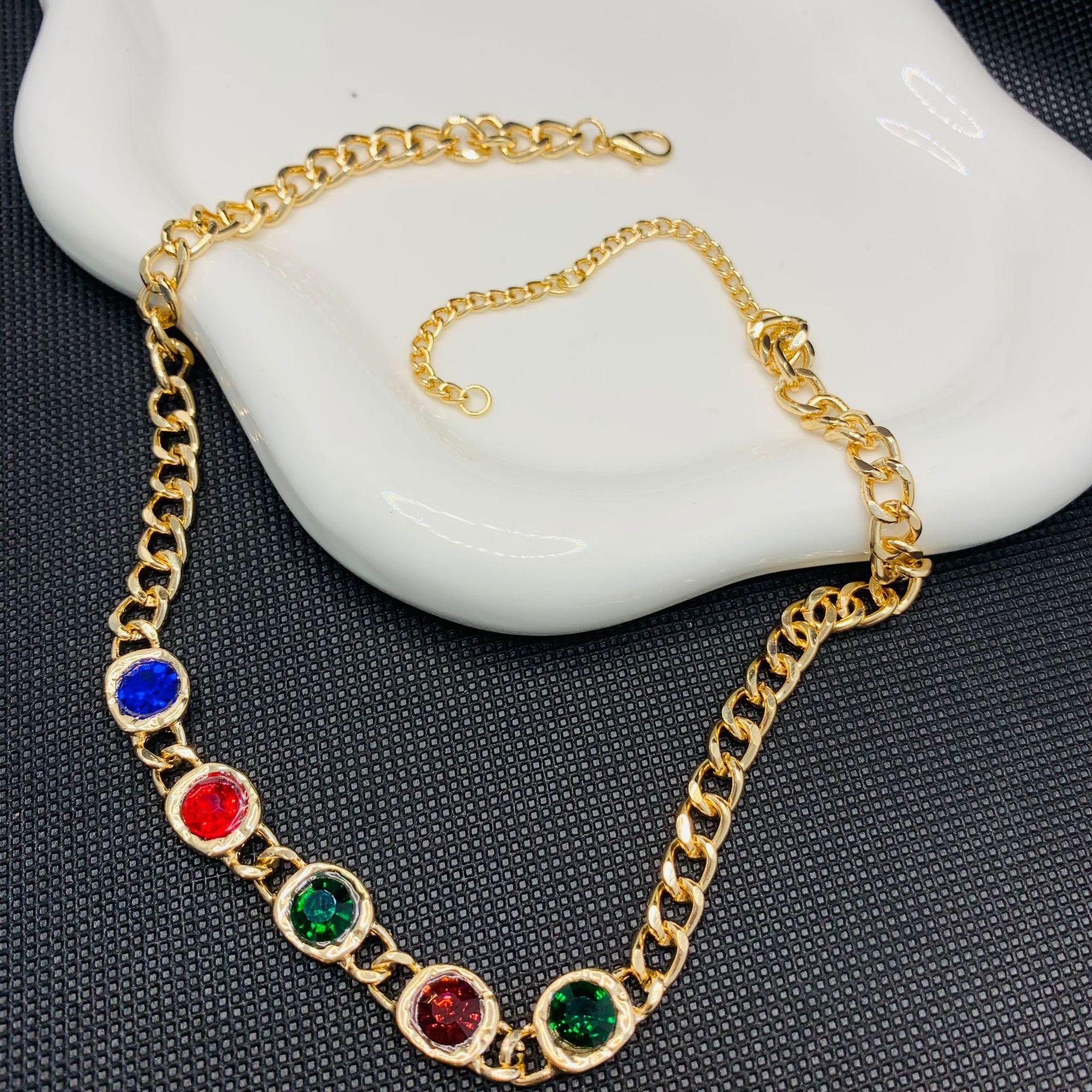 Collar vintage de circonita de color medio antiguo para mujer, diseño de alta calidad, cadena de clavícula con nicho, cadena de cuello francesa retro