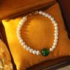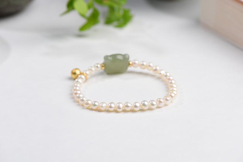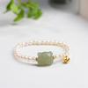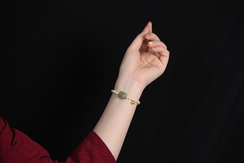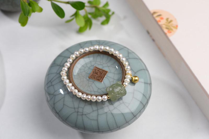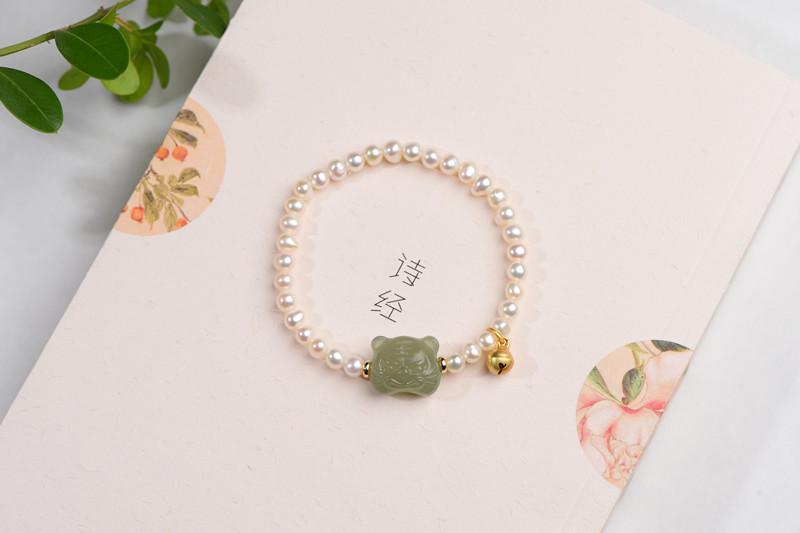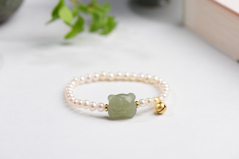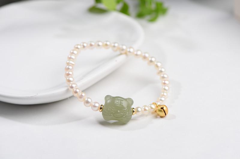 Pulsera de Perlas Naturales de Agua Dulce con Accesorios de Cabeza de Tigre de Jade Hetian Pulsera para Niña Joyería Simple para Combinar con Todo