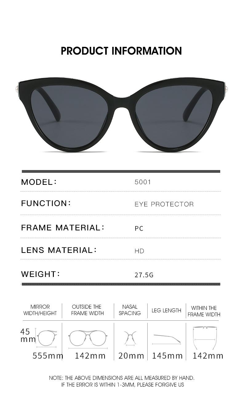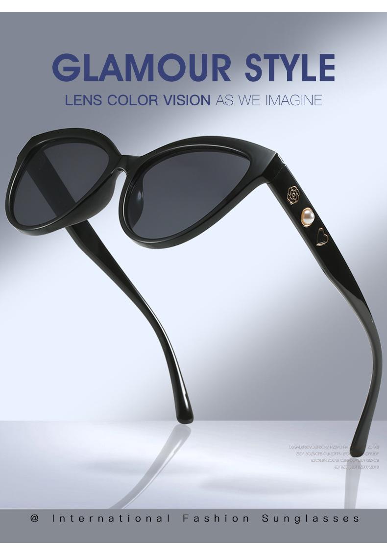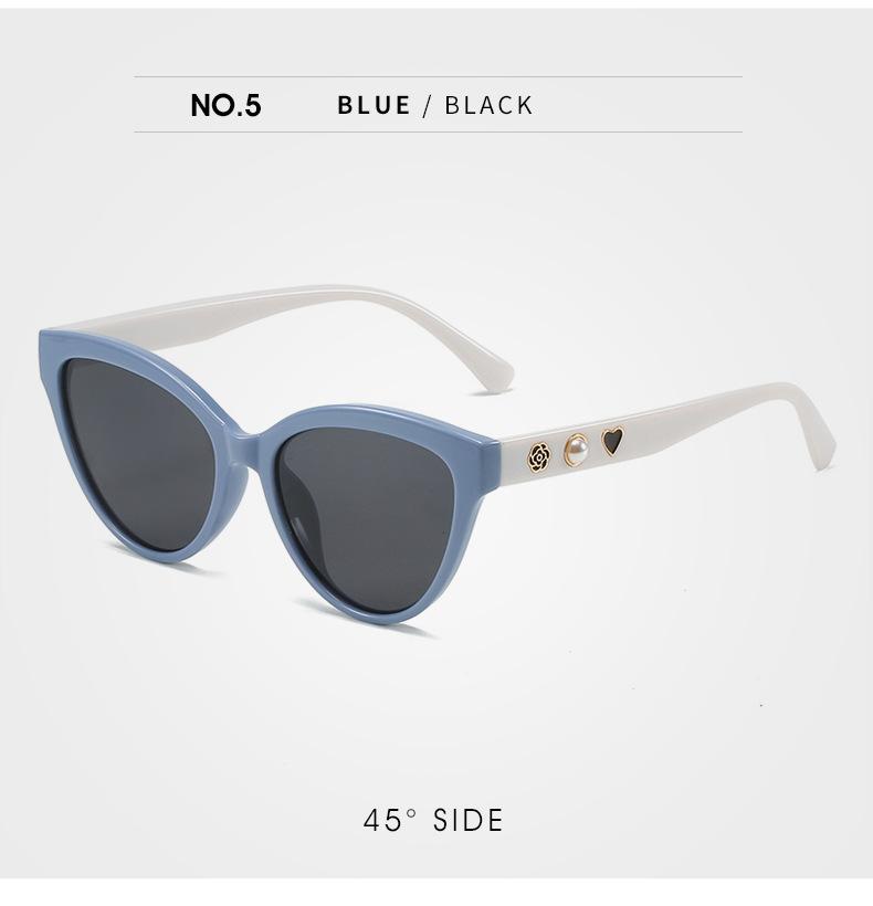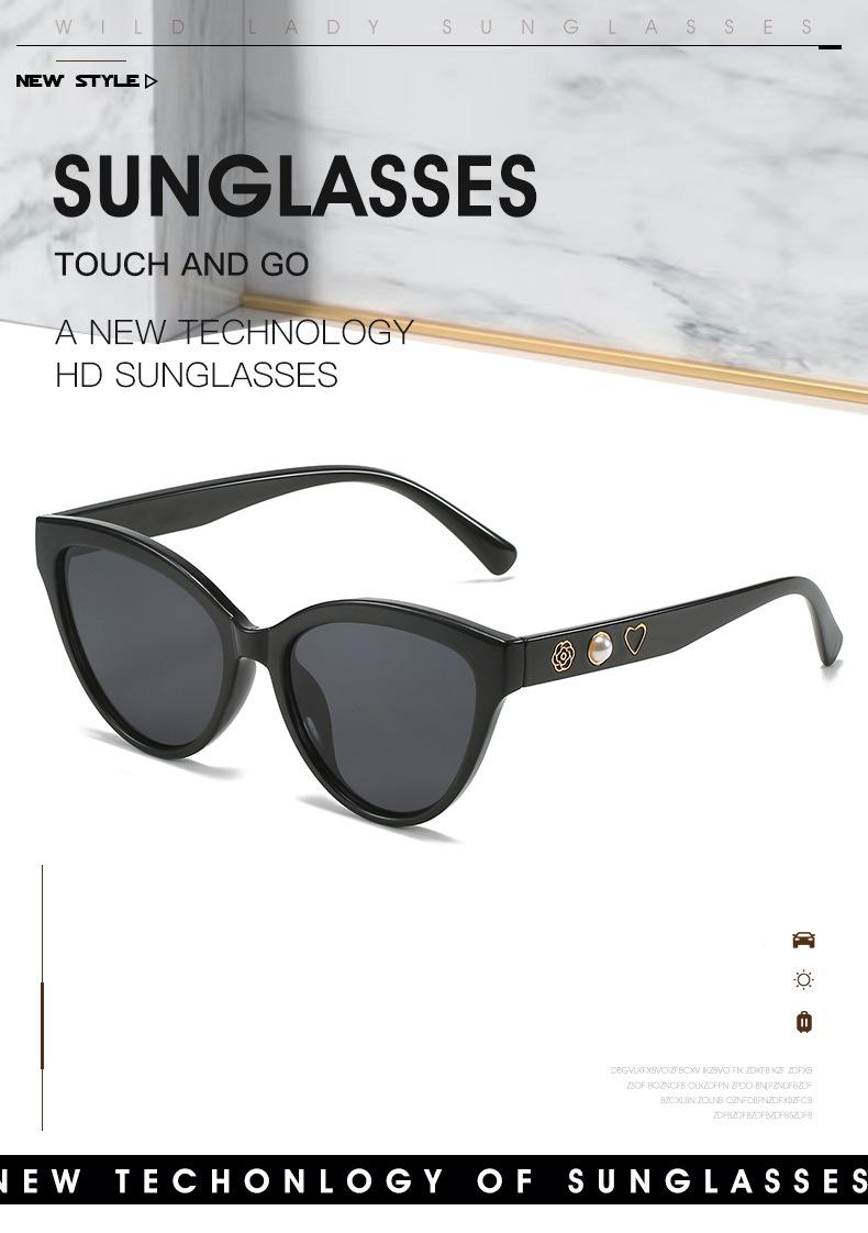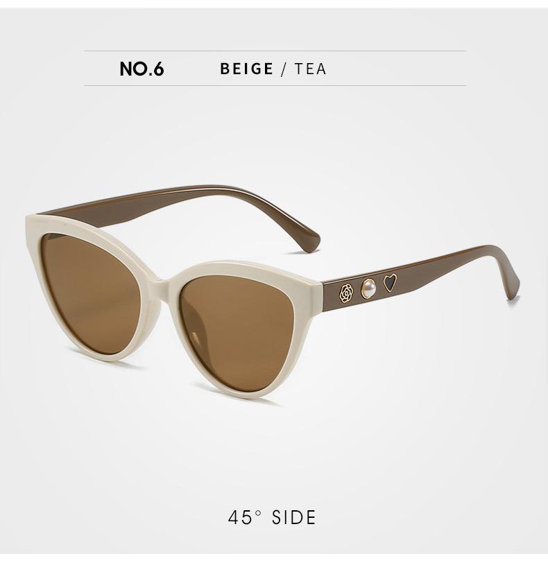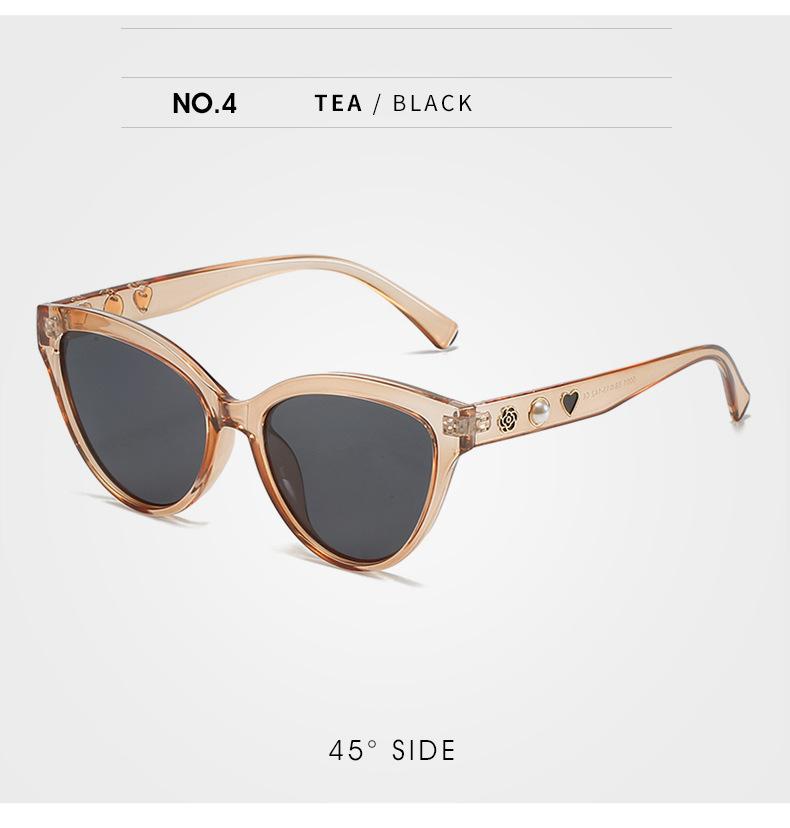 2023 Nueva fábrica de gafas de sol de ojo de gato de moda al por mayor, gafas de sol personalizadas para damas, gafas de sol Pearl Love