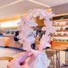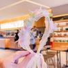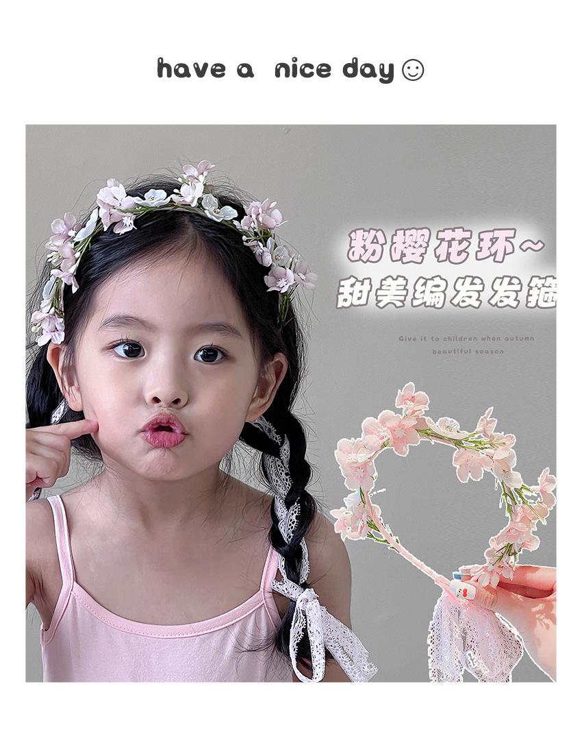 Begonia wreath, green leaf wreath, pink cherry blossom ring, pink lace, pink rose, Green Dreamland, powder bow, Pink Cat Ears