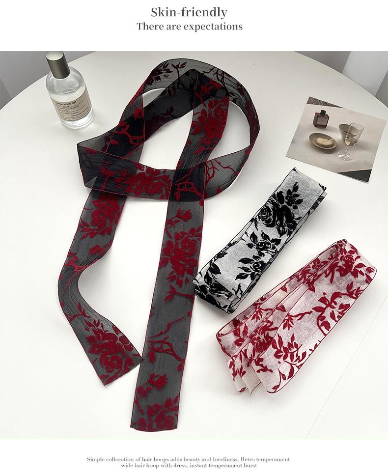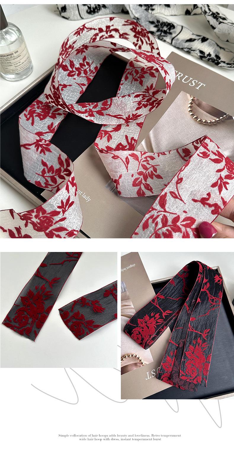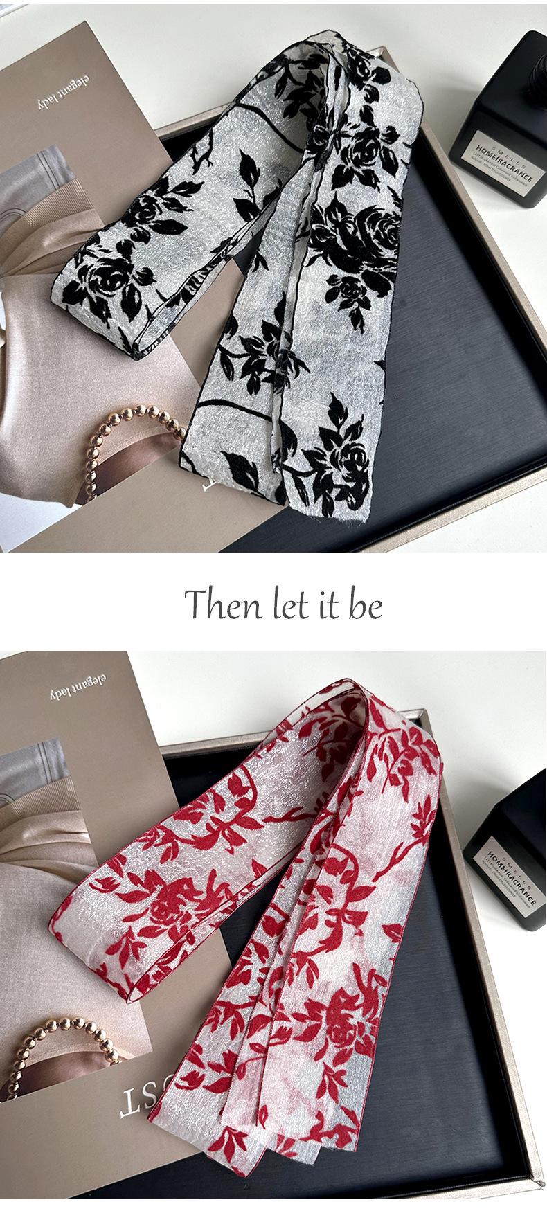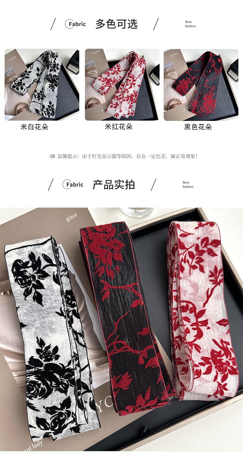 Bufanda de seda larga de encaje estilo francés vintage para mujer, multifuncional, para primavera y verano, decorativa, elegante, con cinta de organza.