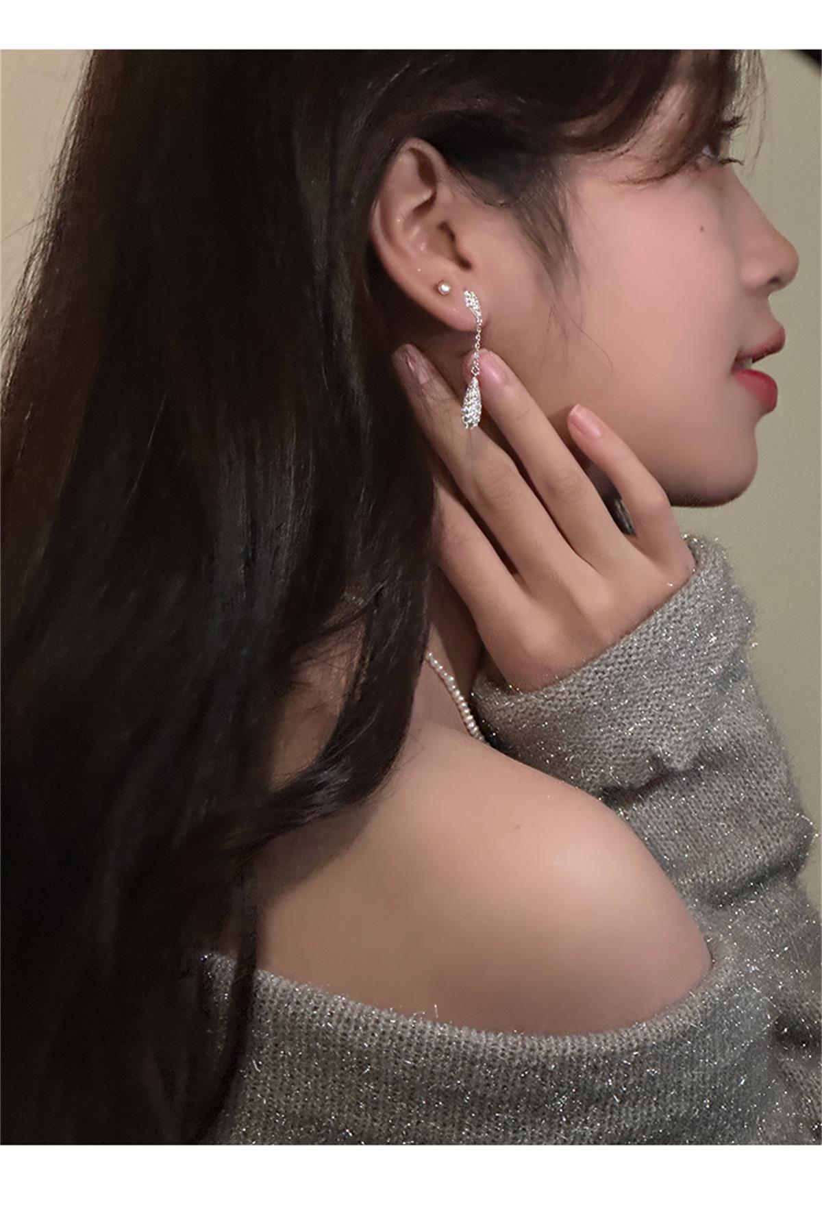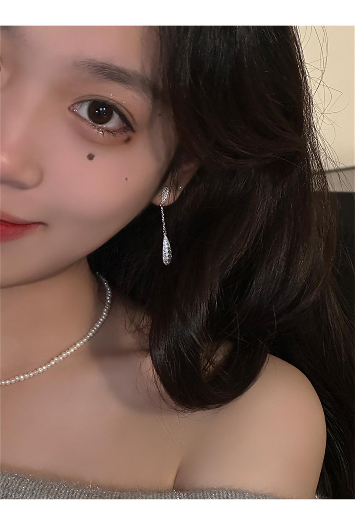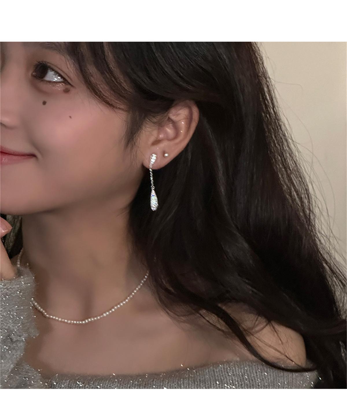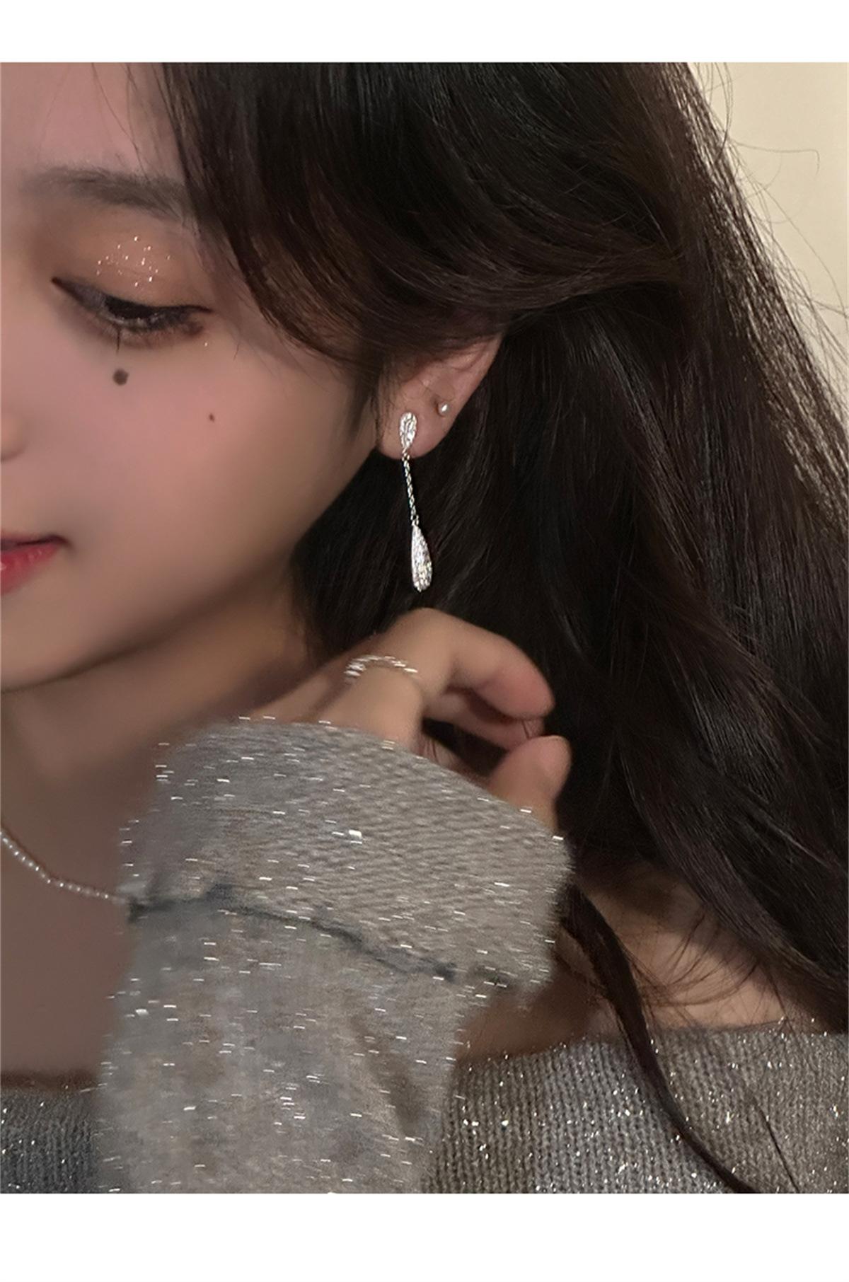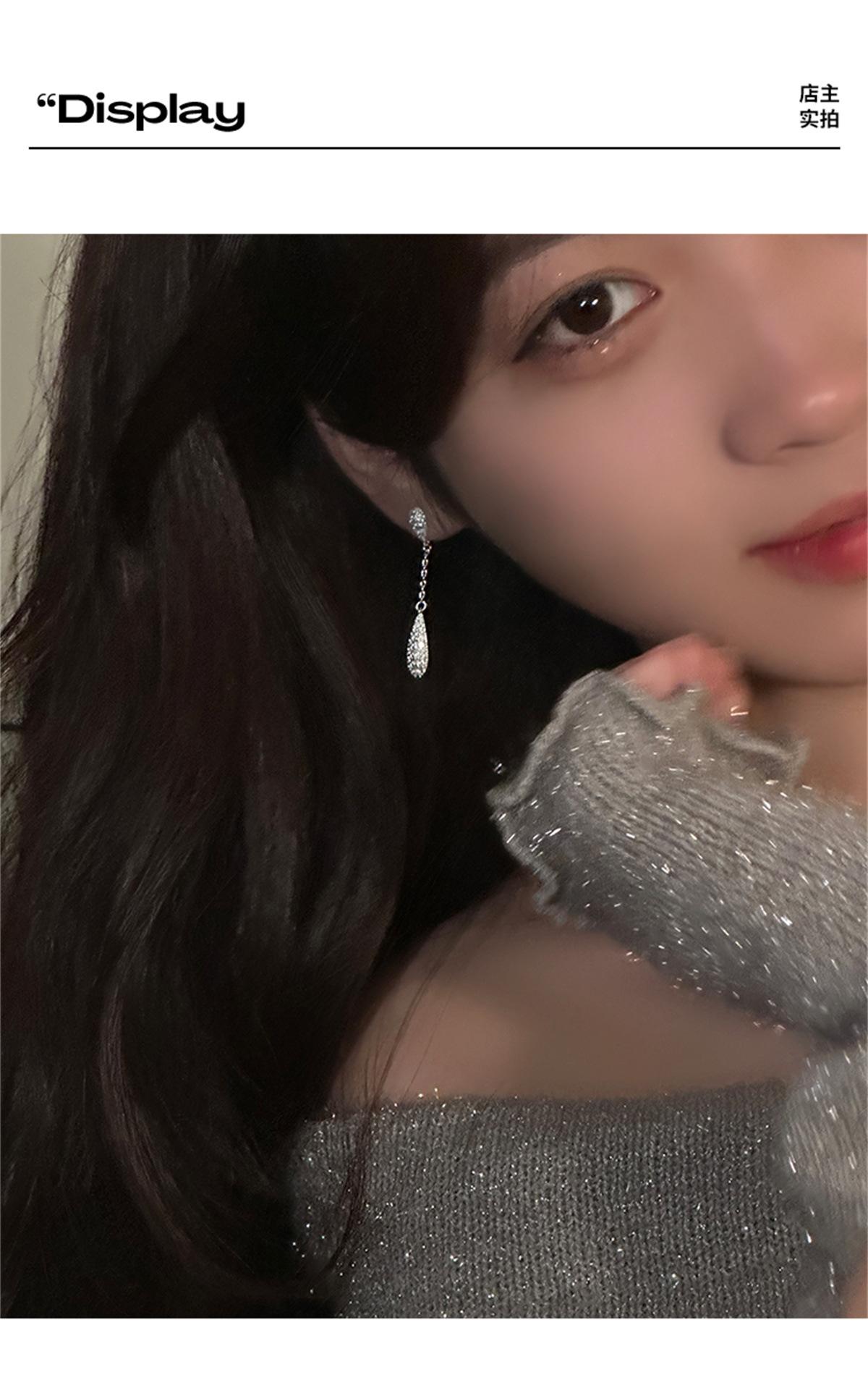 Pendientes de estilo coreano Super Flash con forma de gota de agua y circón, pendientes femeninos de nicho con sensación de frío, pendientes de aguja de plata, ligeros, de lujo, de gran sentido, nuevos pendientes