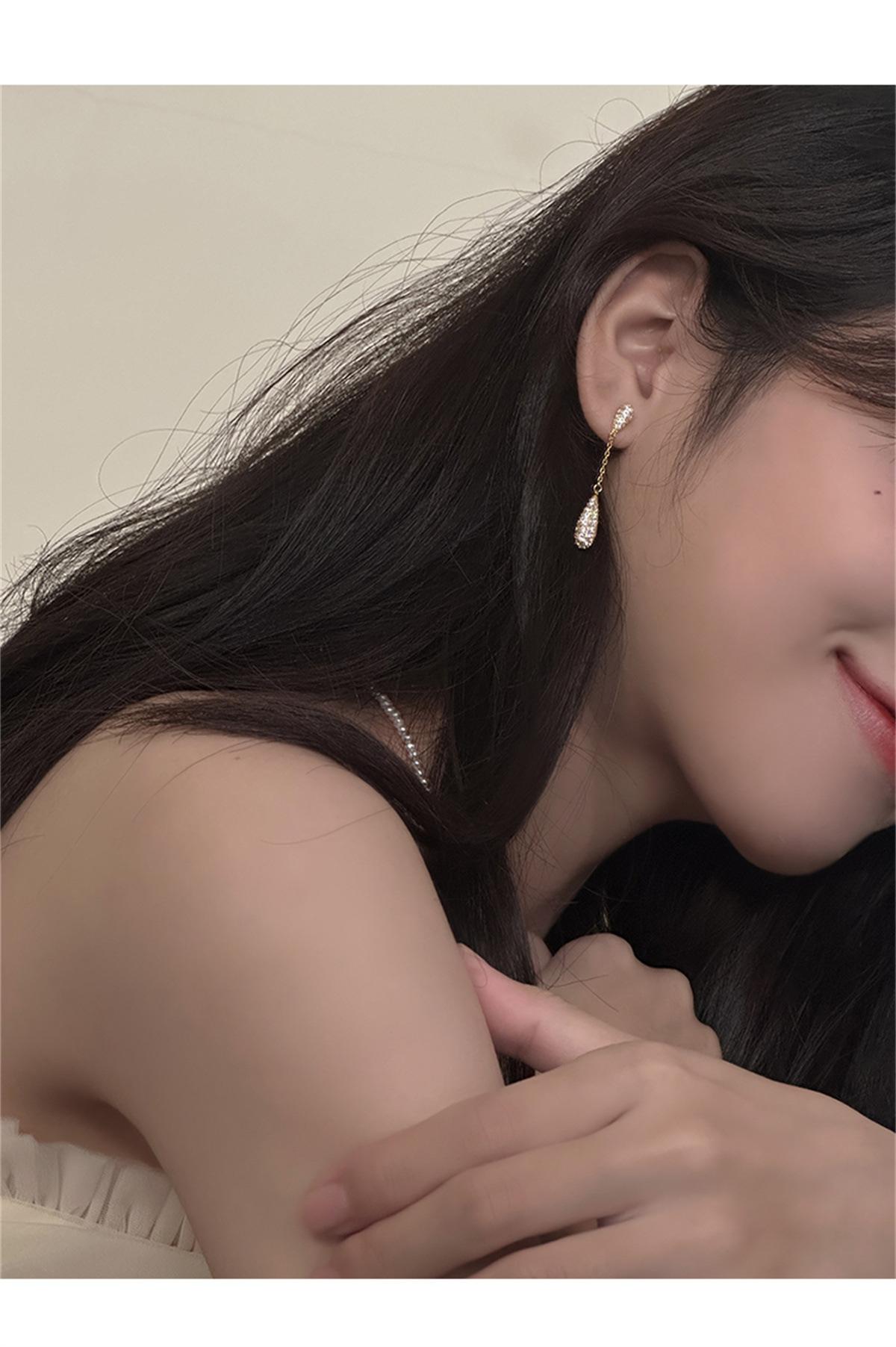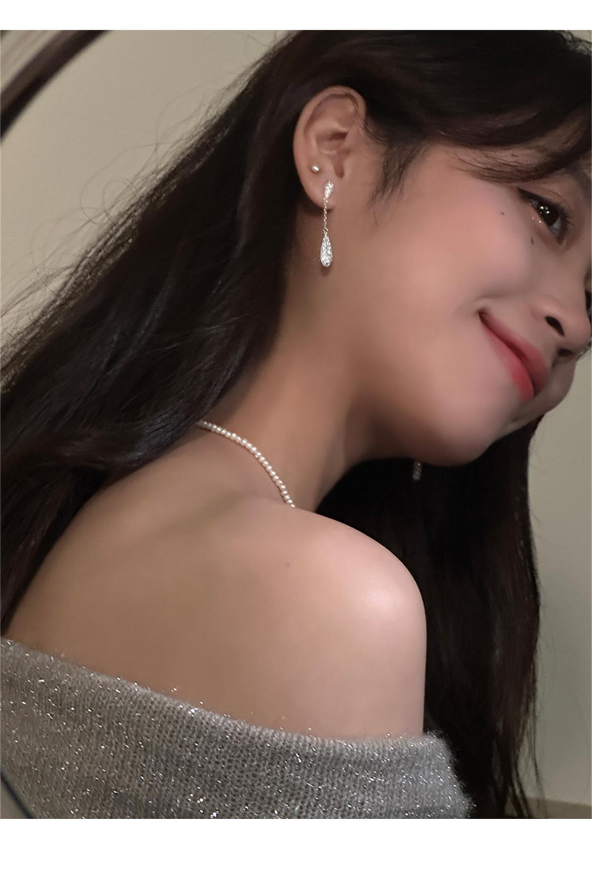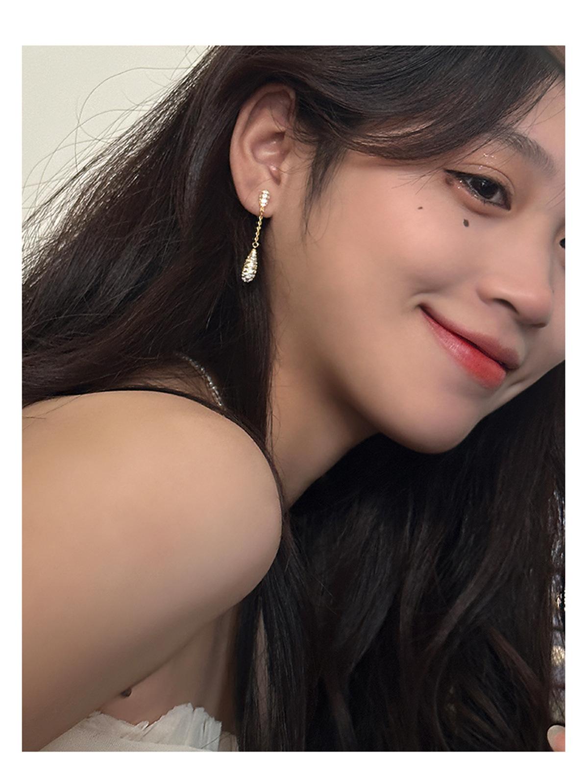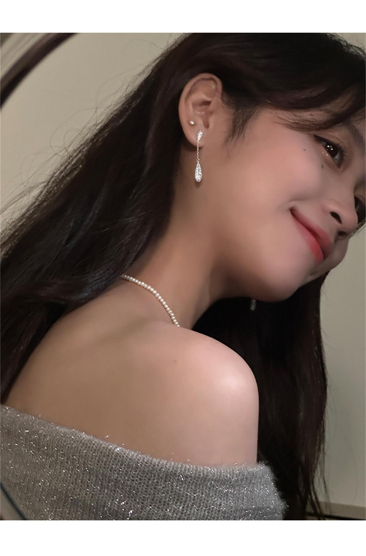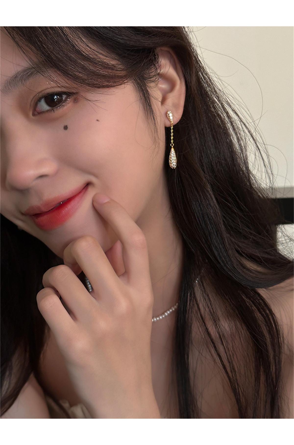 Pendientes de estilo coreano Super Flash con forma de gota de agua y circón, pendientes femeninos de nicho con sensación de frío, pendientes de aguja de plata, ligeros, de lujo, de gran sentido, nuevos pendientes