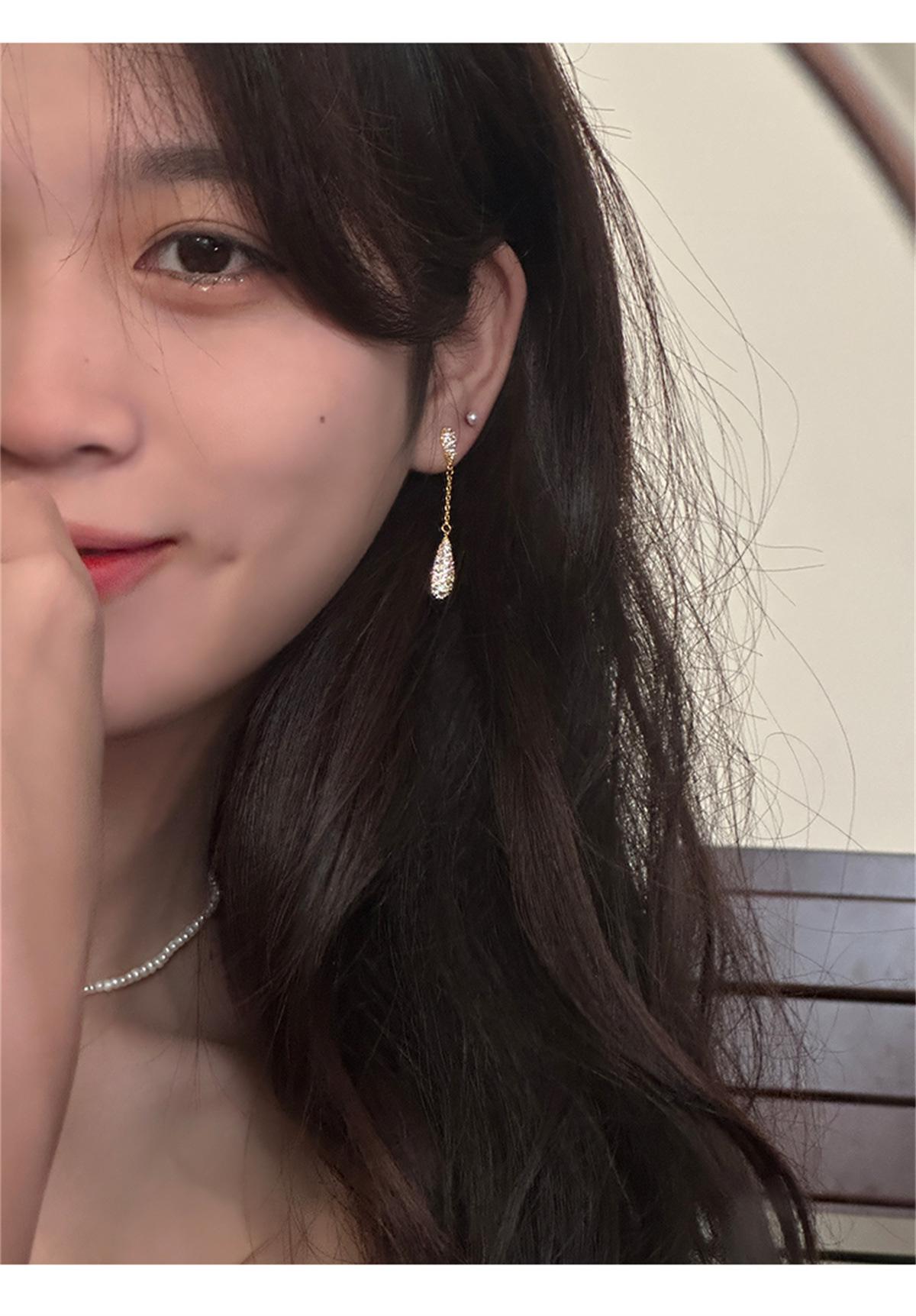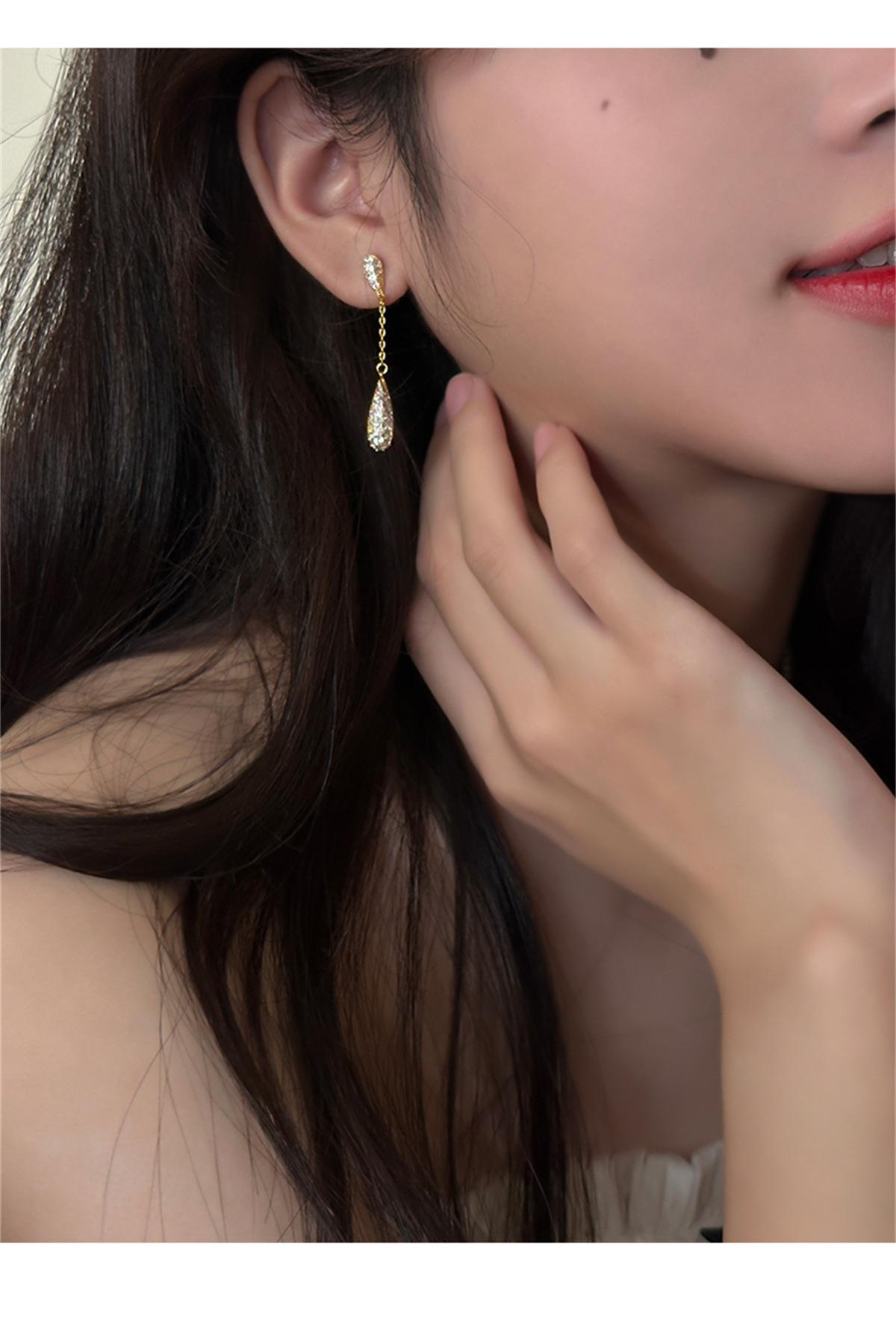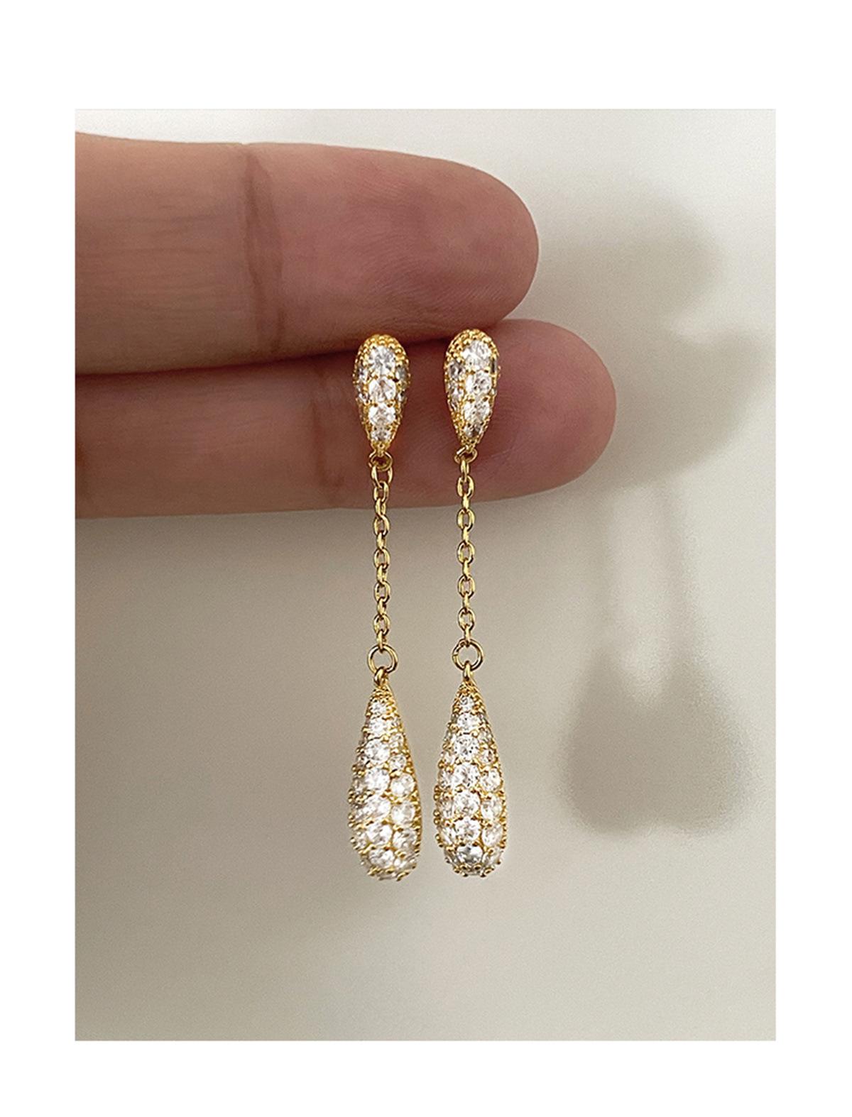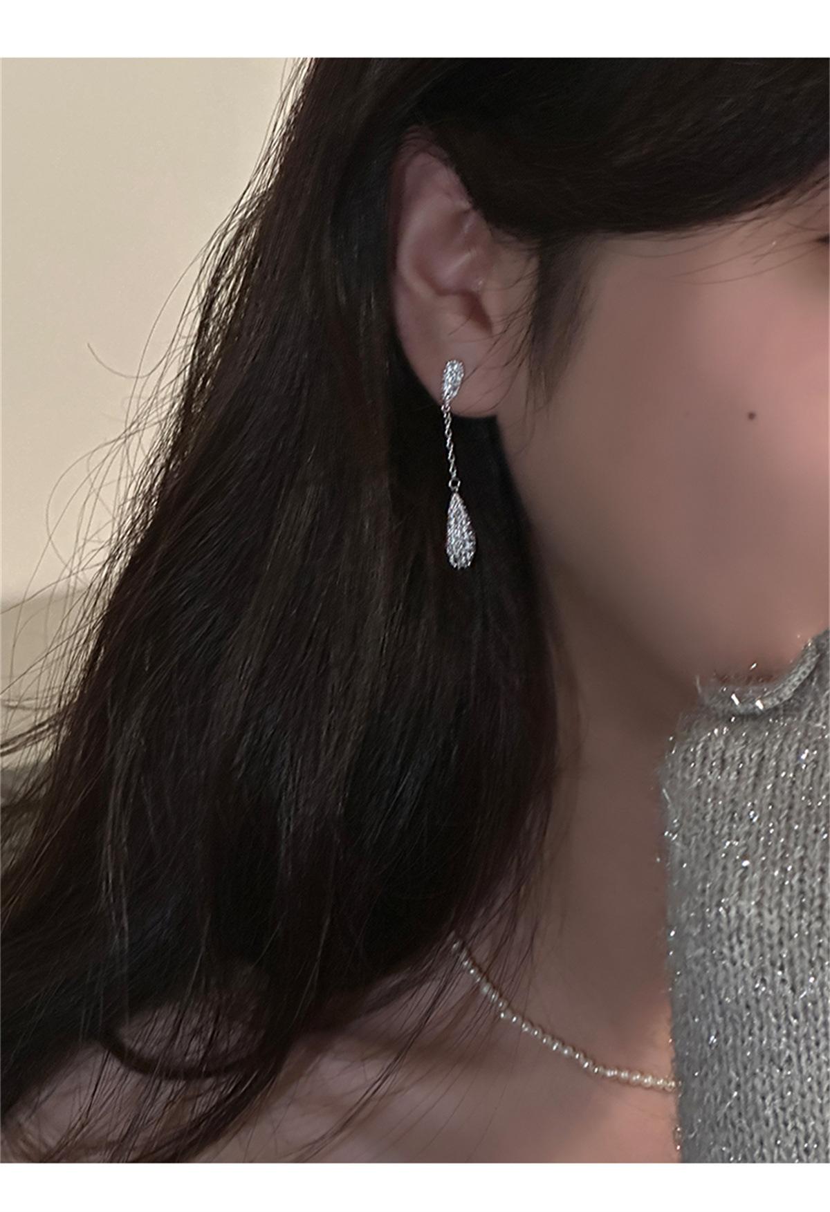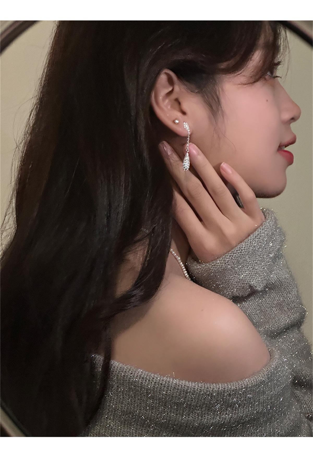 Pendientes de estilo coreano Super Flash con forma de gota de agua y circón, pendientes femeninos de nicho con sensación de frío, pendientes de aguja de plata, ligeros, de lujo, de gran sentido, nuevos pendientes