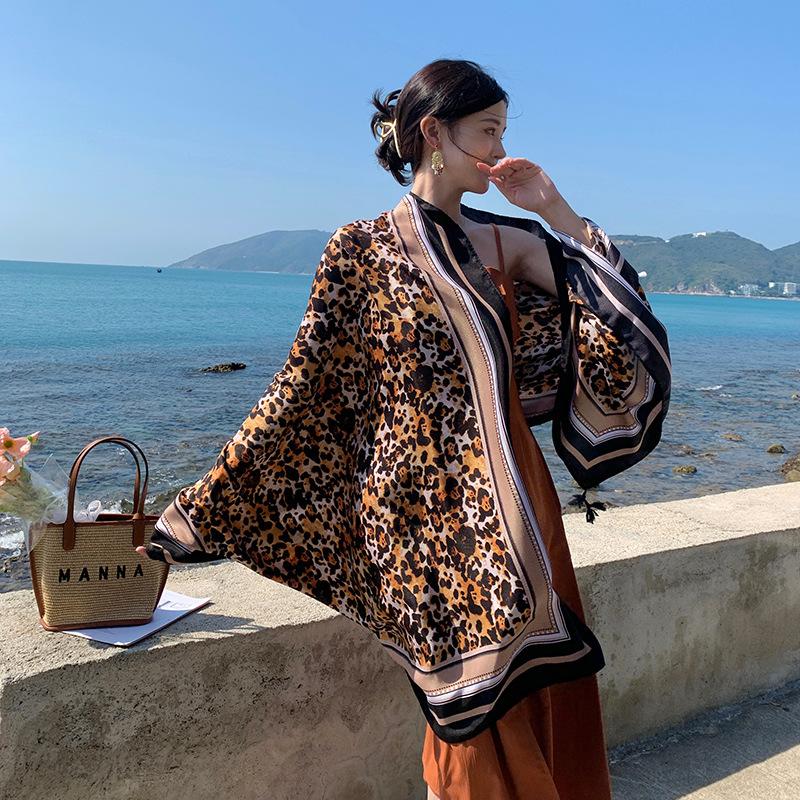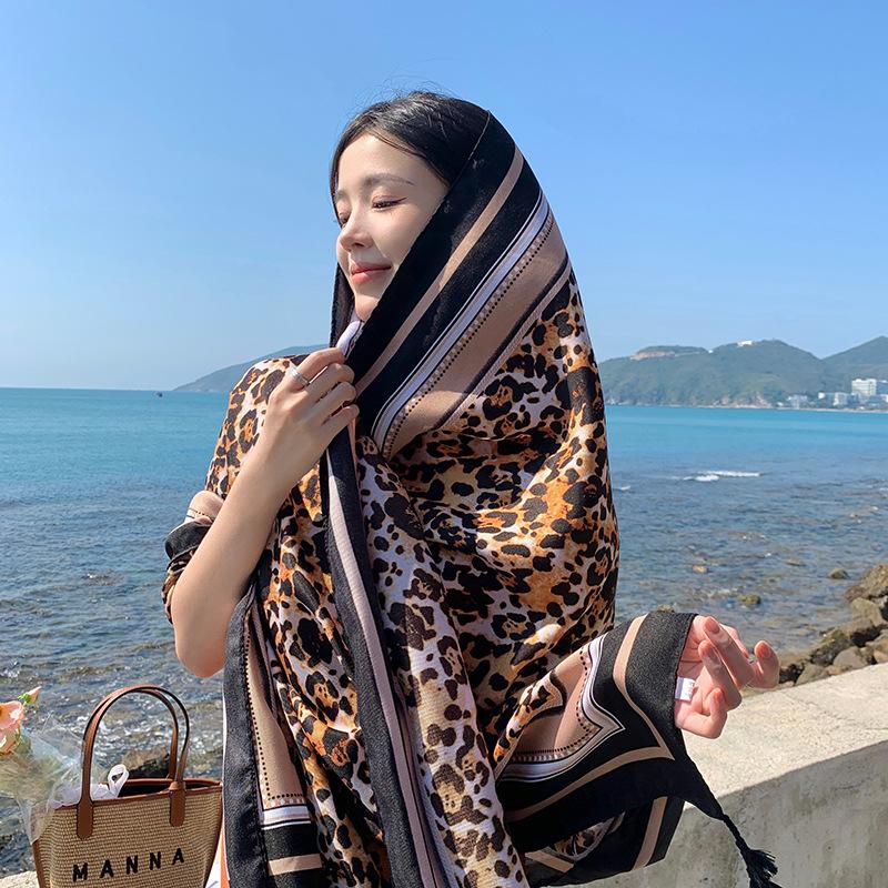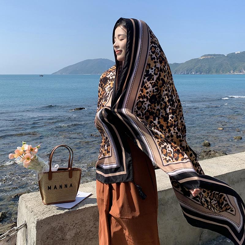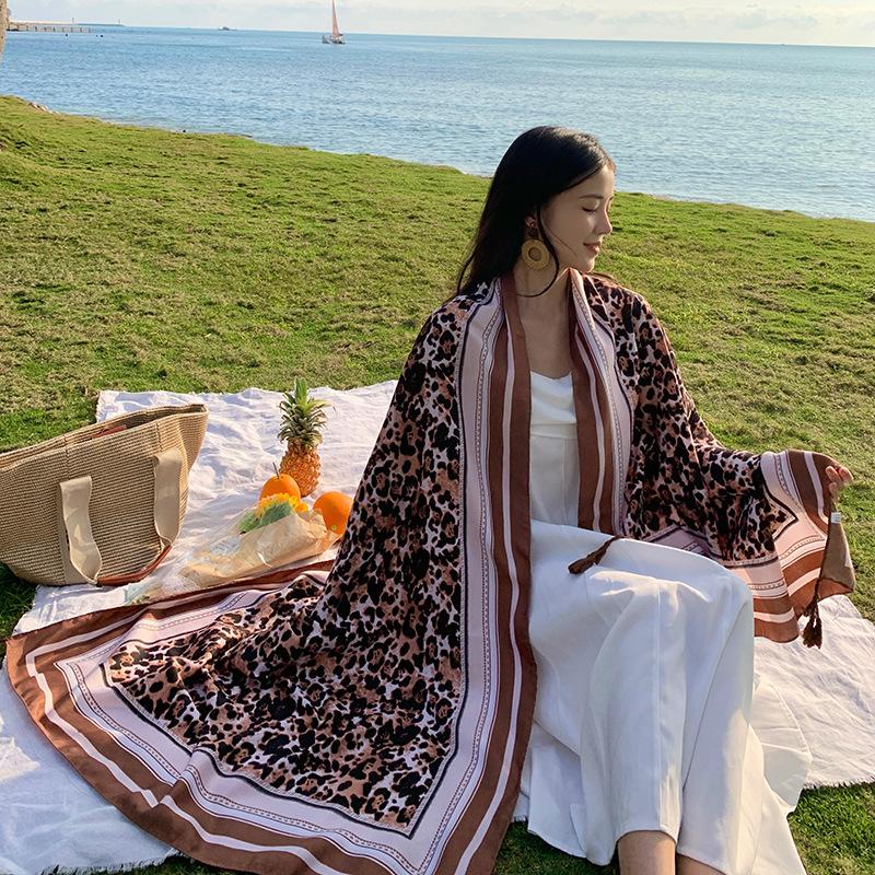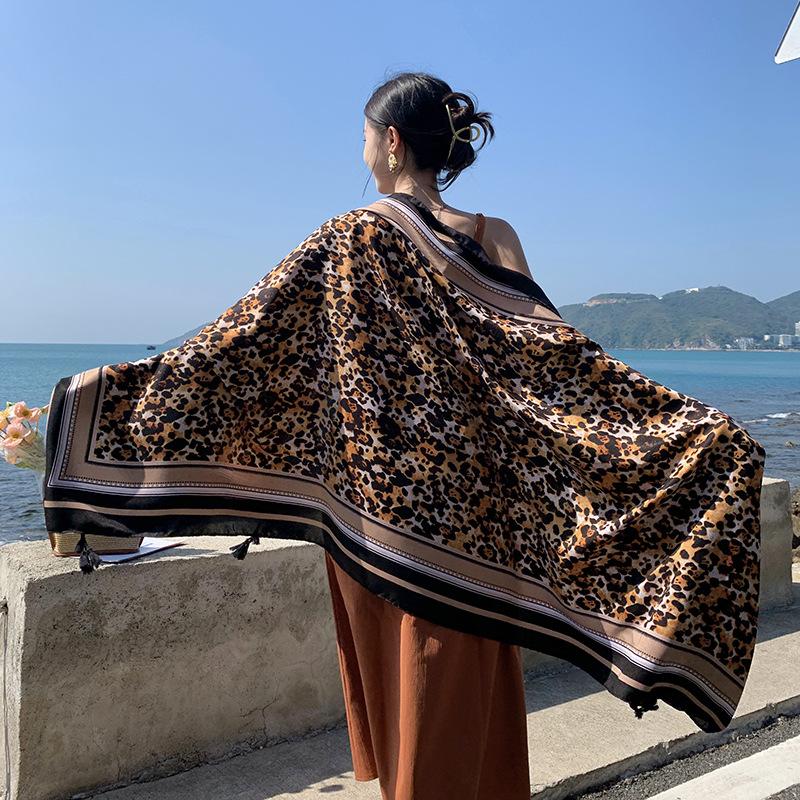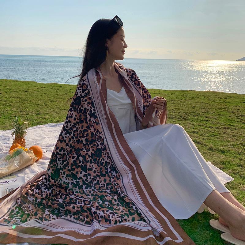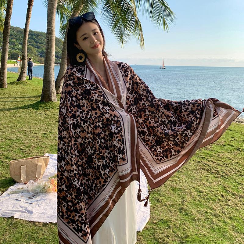Bufanda de playa para mujer, chal grande con estampado de leopardo, para viajes, primavera y verano, con protección solar, ideal para exteriores y vacaciones.