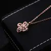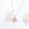 Collar de oro rosa de 18 quilates con cuatro hojas y flor de circonita para mujer, cadena de clavícula, venta al por mayor, directo de fábrica.