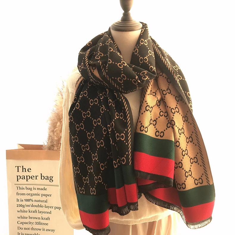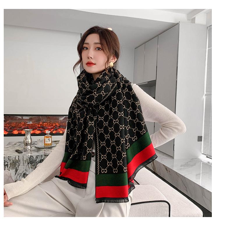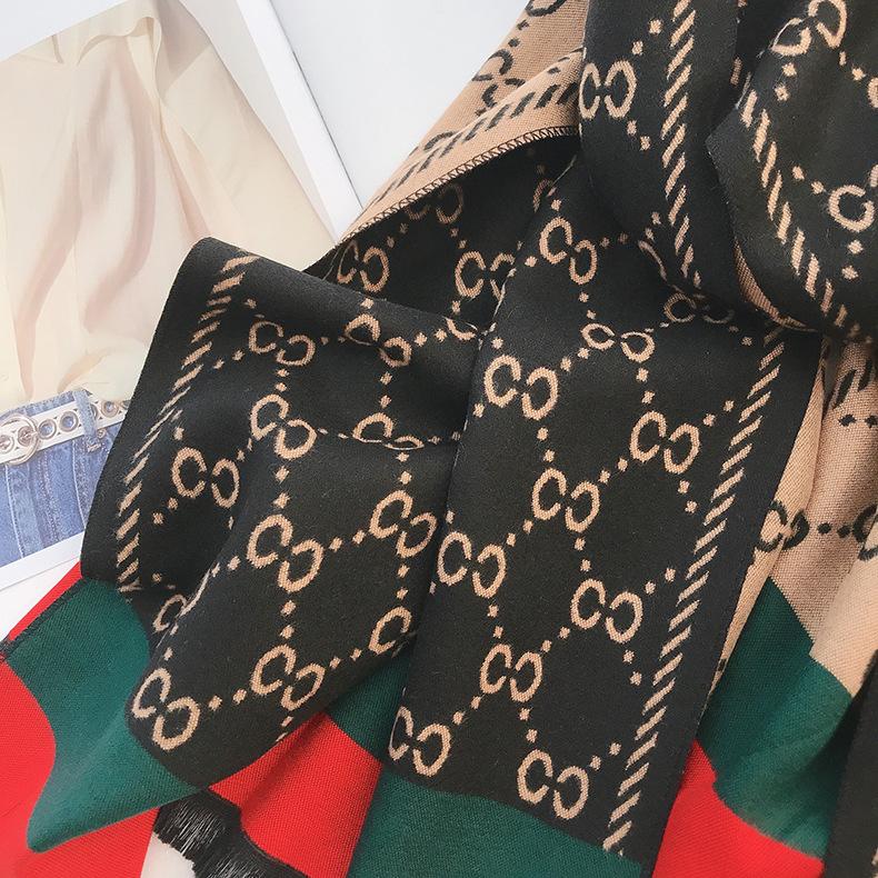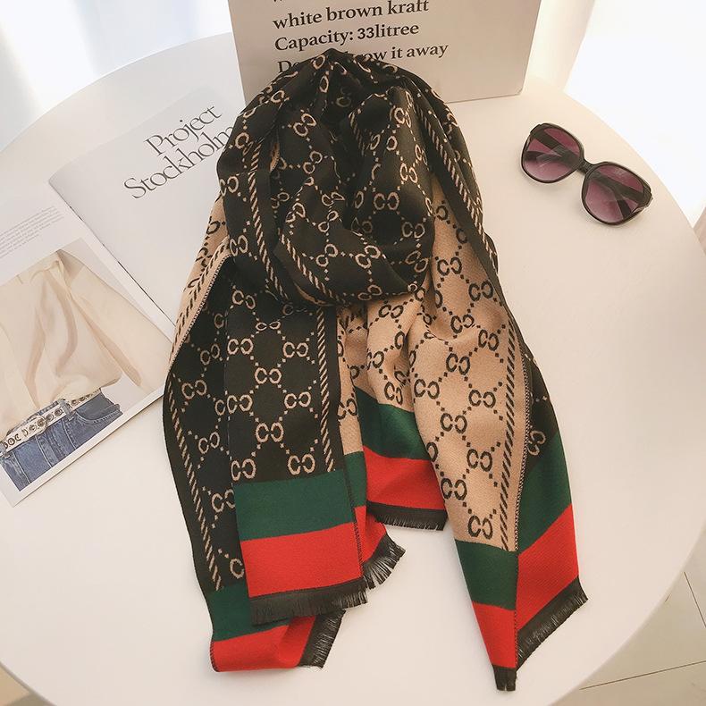 Chal para Aire Acondicionado de Oficina para Mujer, Bufanda de Doble Cara con Letra Cc de Cachemira Sintética, Bufanda Gruesa y Cálida para Cuello de Otoño e Invierno, Versátil y Lujo Ligero