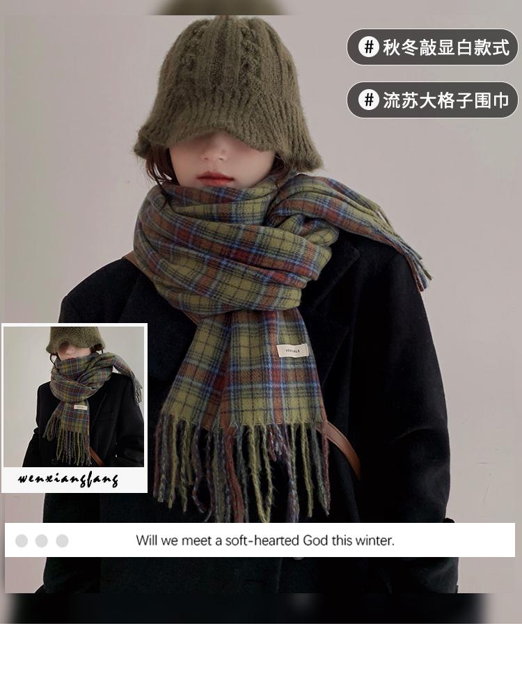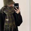 Bufanda a cuadros para mujer, otoño e invierno, estilo coreano, retro, de alta calidad, gruesa y cálida, chal verde que combina con todo, moda para mujer