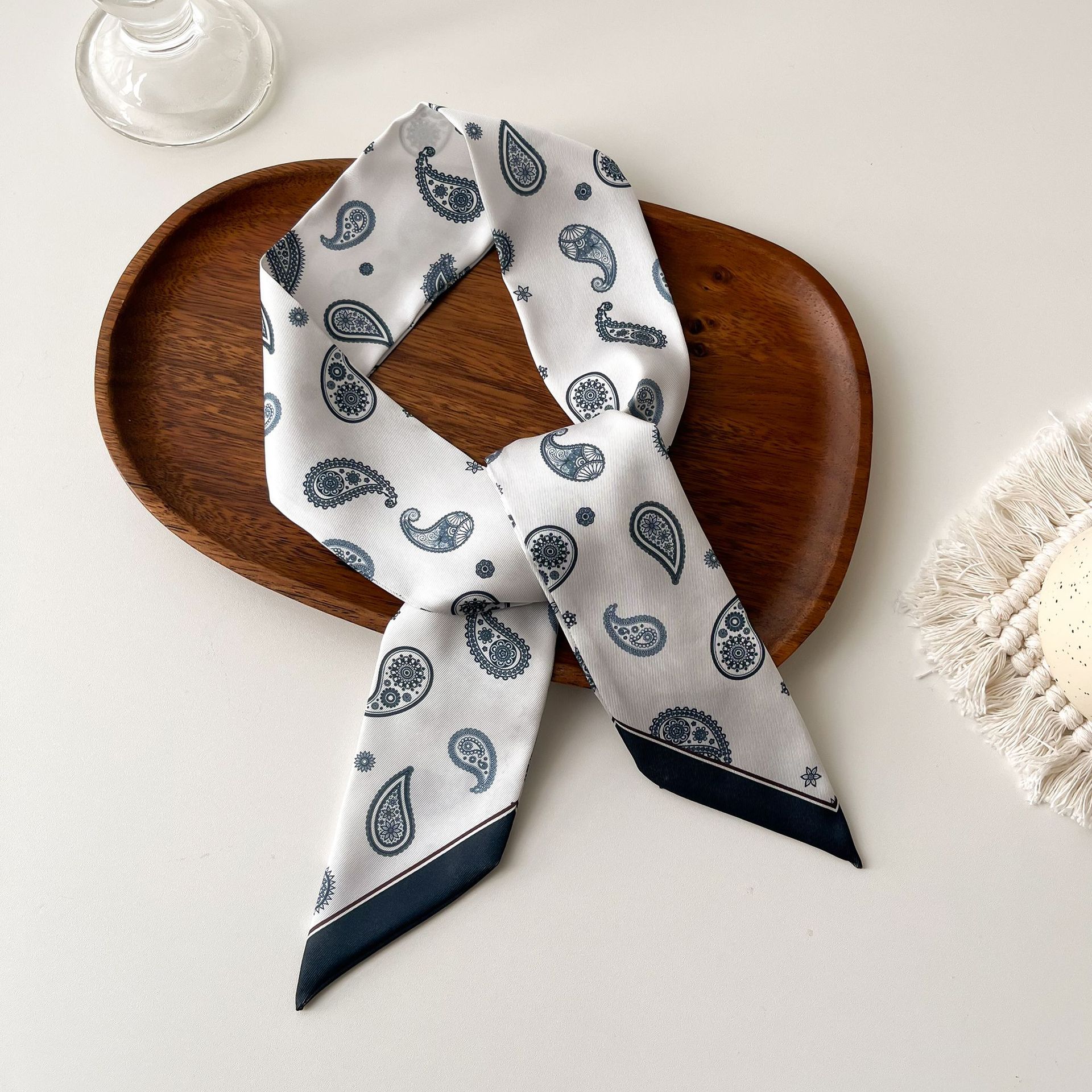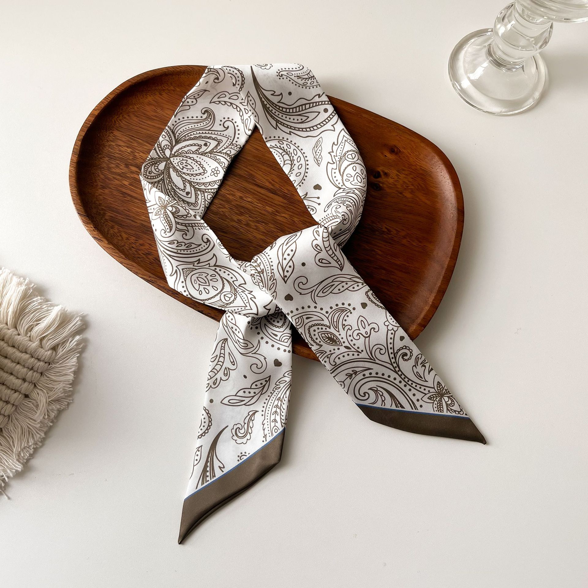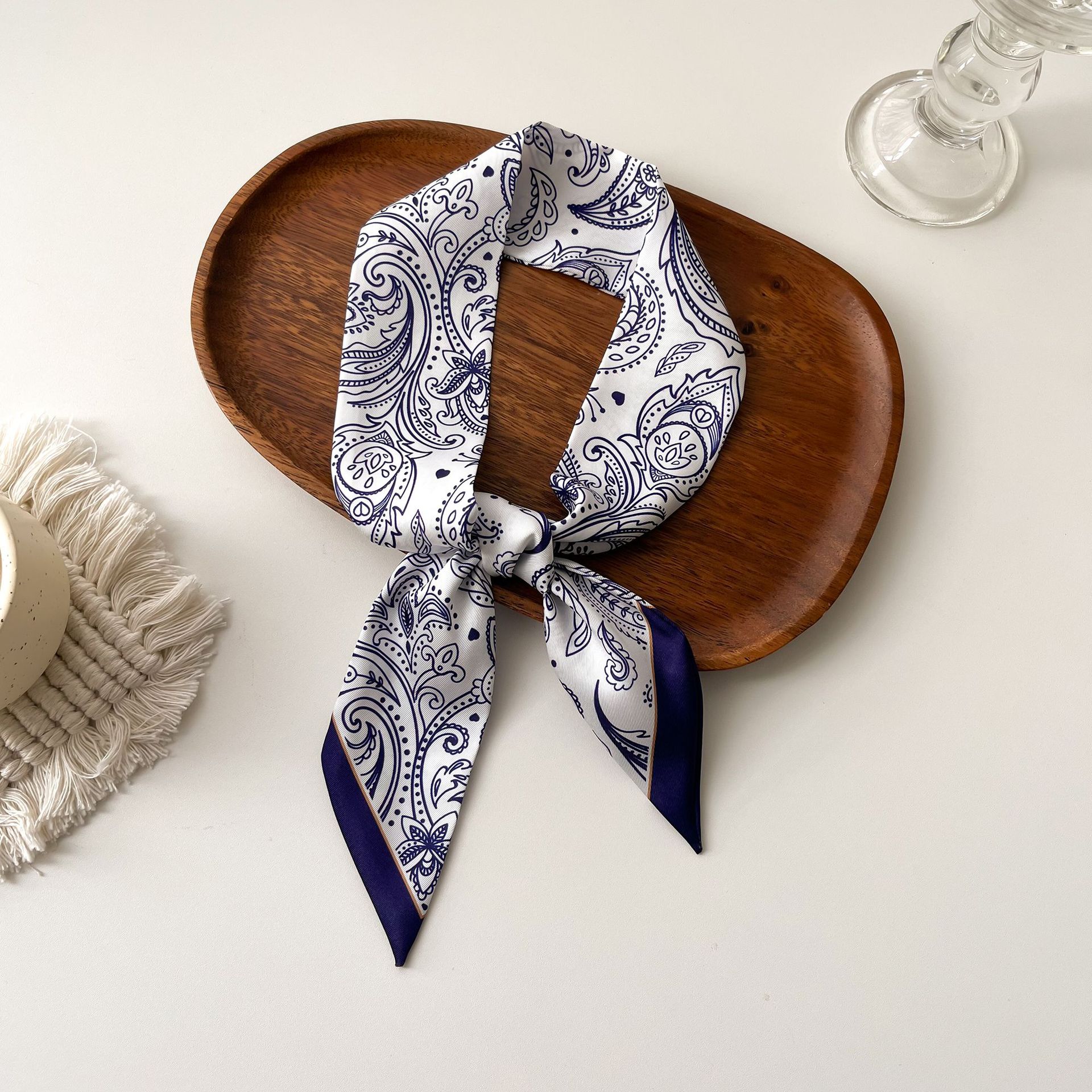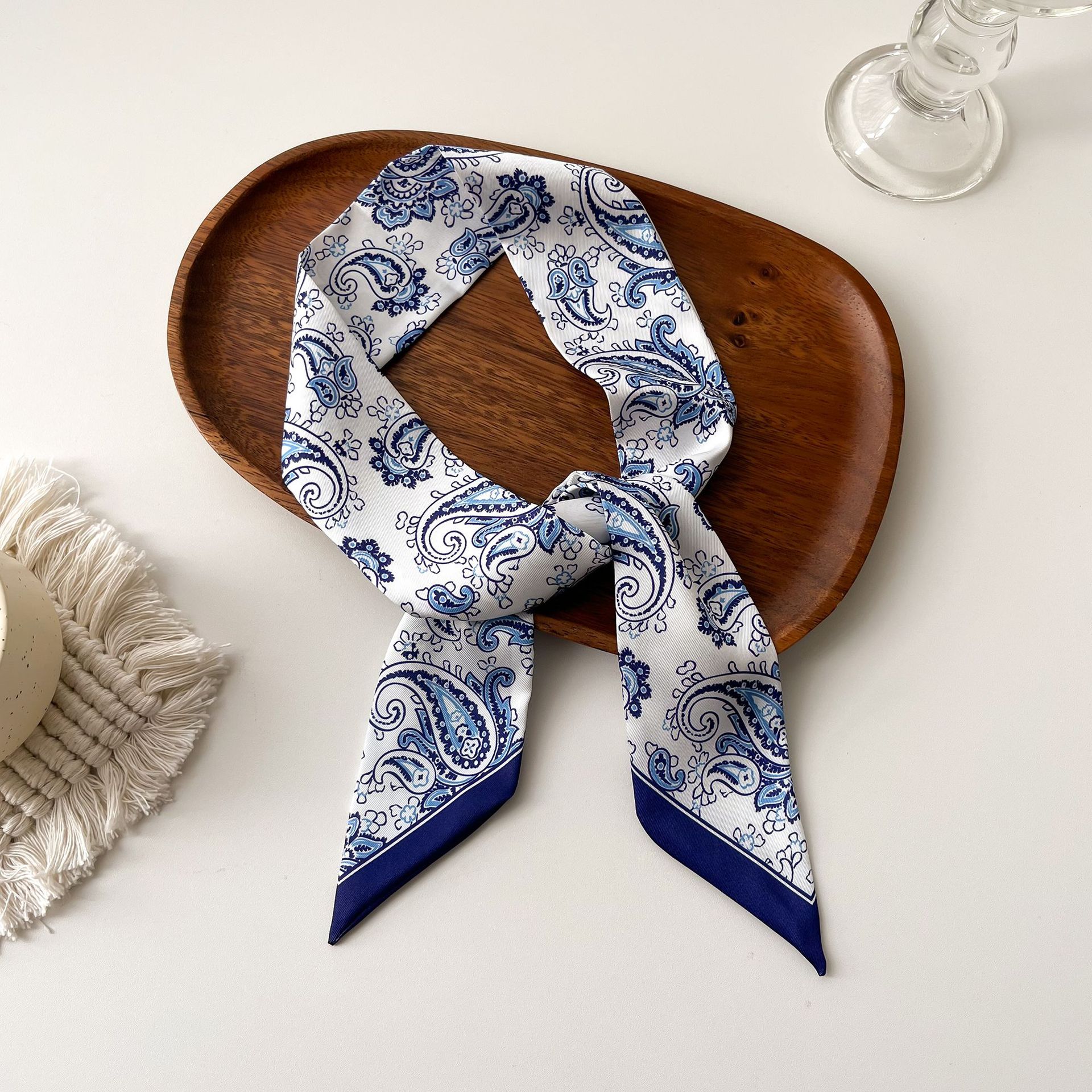 Pañuelo de seda pequeño estilo francés, banda para el pelo, lazo largo, estilo coreano, vintage, combinable, decorativo, para mujer.